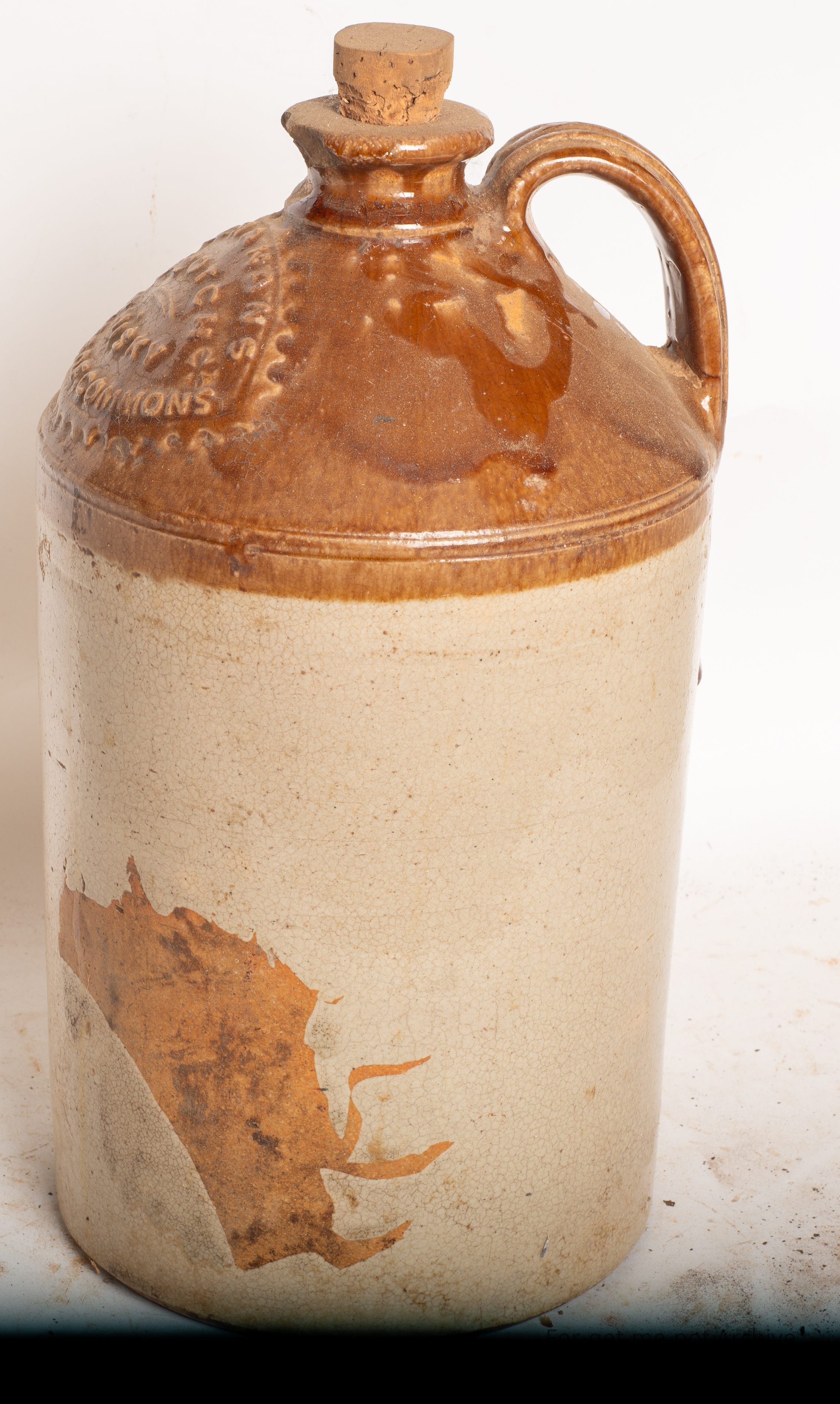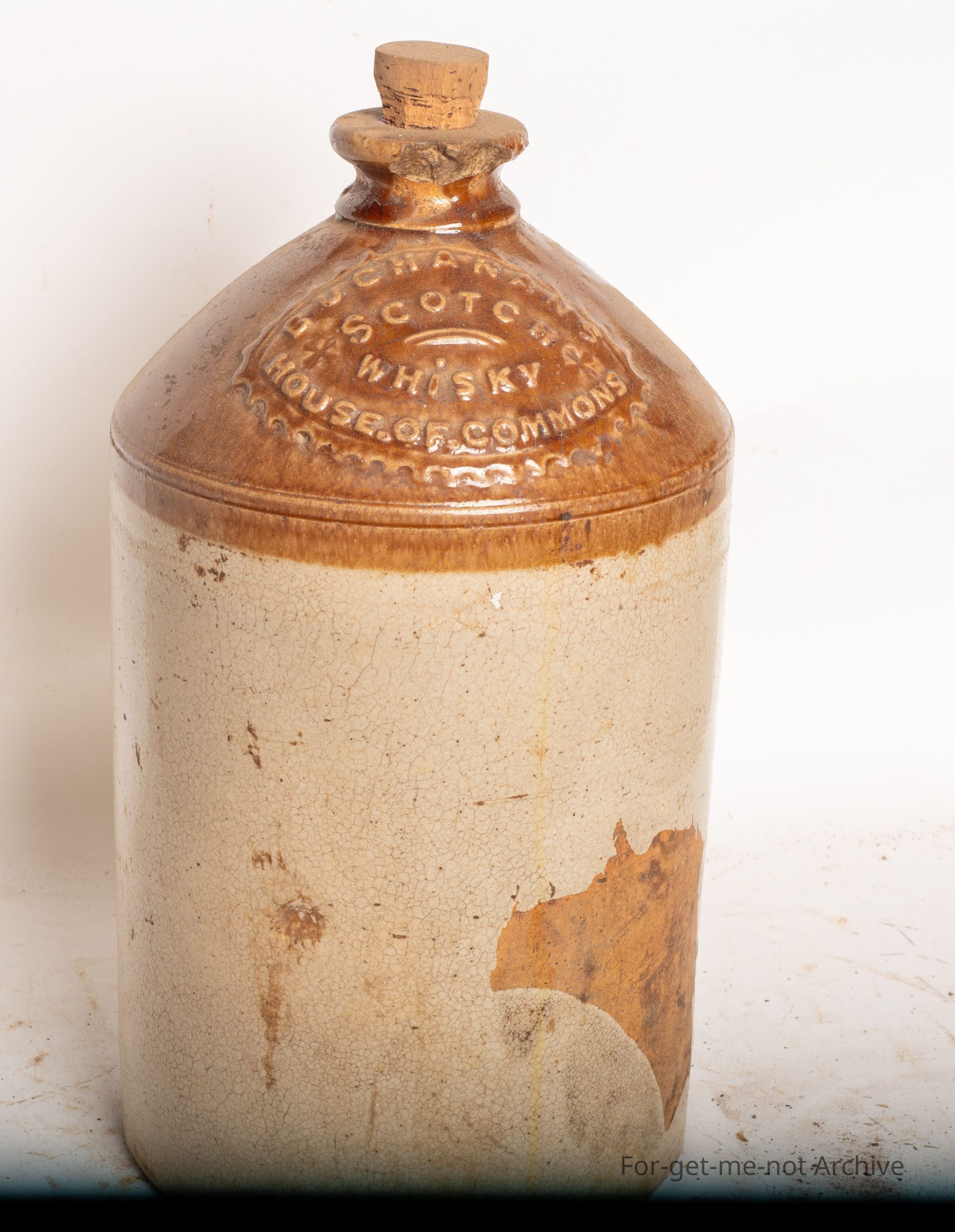 This is a demijohn, perhaps 2 gallon size, embossed with Buchanan Scotch Whiskey House of Commons, in very good order. Only a couple of little chips, a bit of a glaze run.