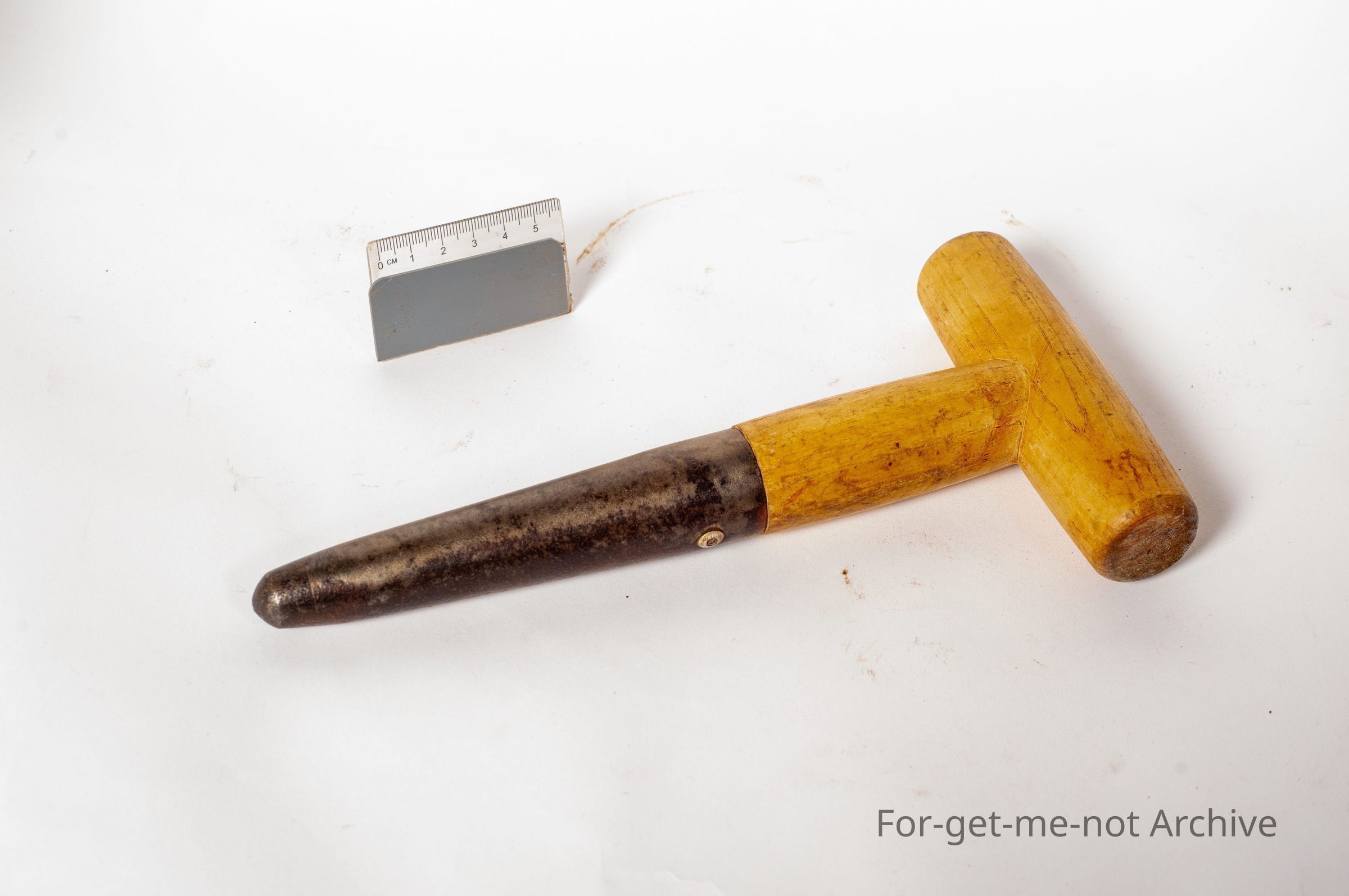 This is a gardener's dibble. Very likely, never to have been used. Still with a wooden handle in perfect condition. The dibble is, riveted through the wood. An unusual tool in good condition .Collection