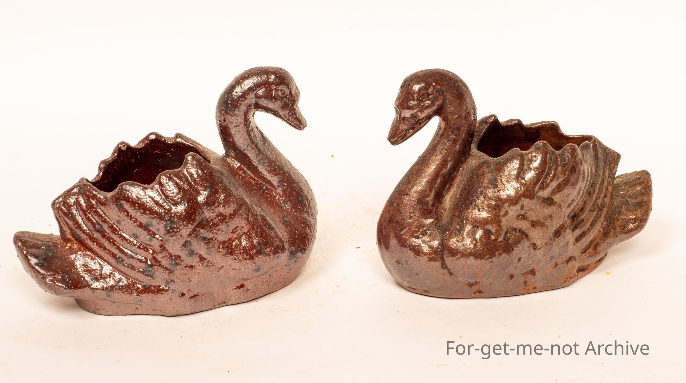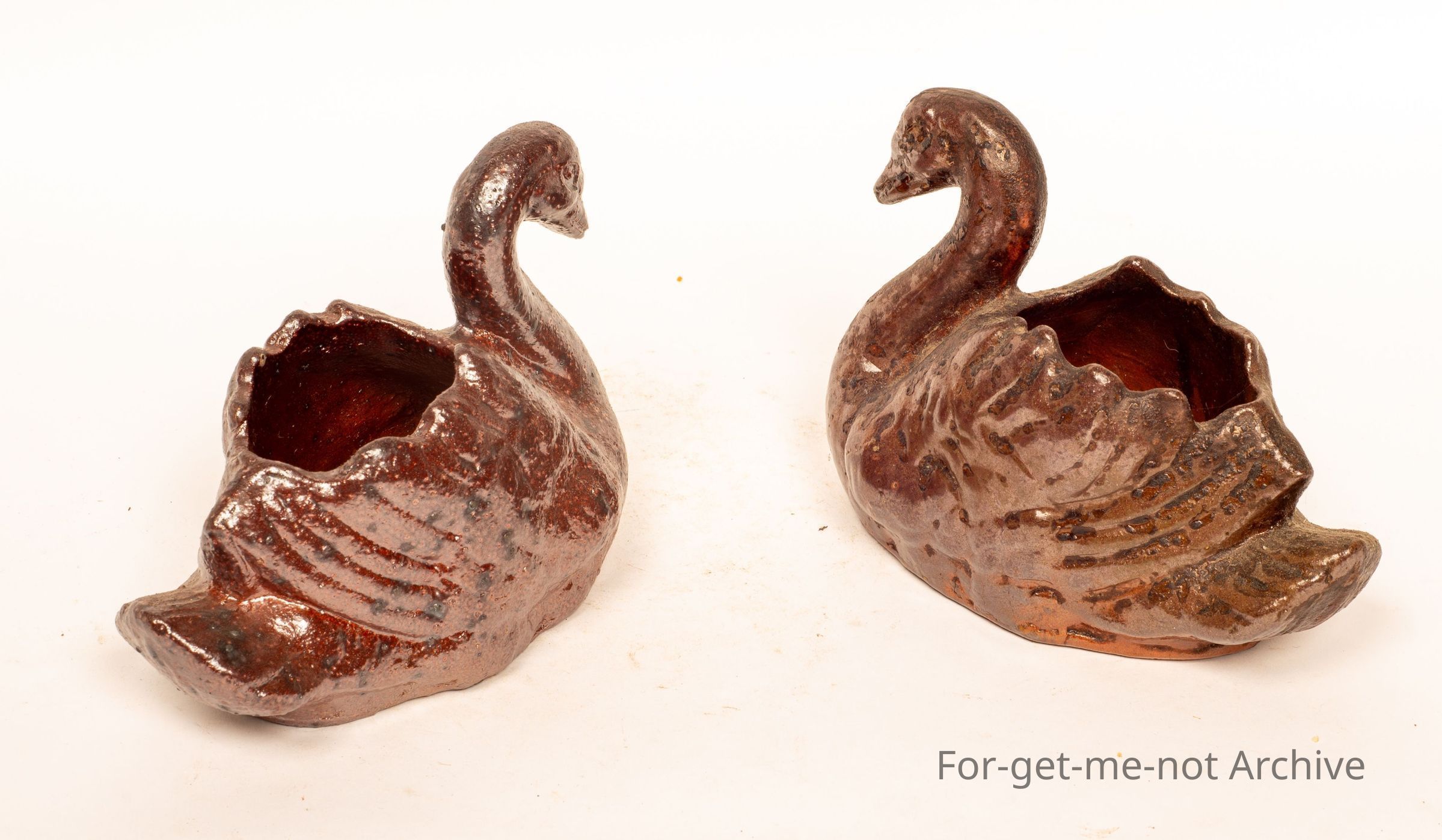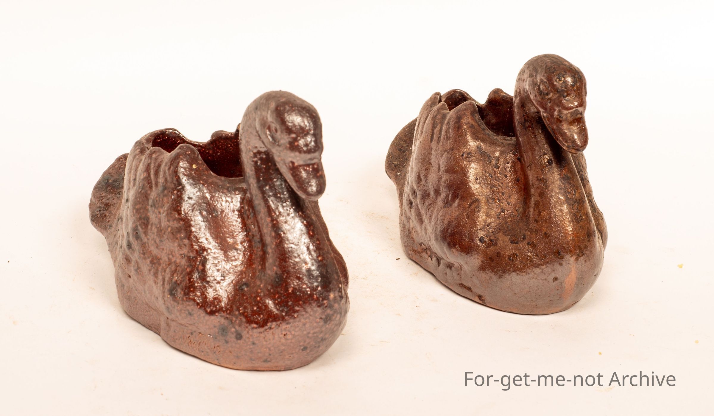 These are a pair of working man's pieces, pair of swans hand built. Lovely little pieces, almost identical, from Dinmoor Pottery, Brisbane. Lovely pieces.