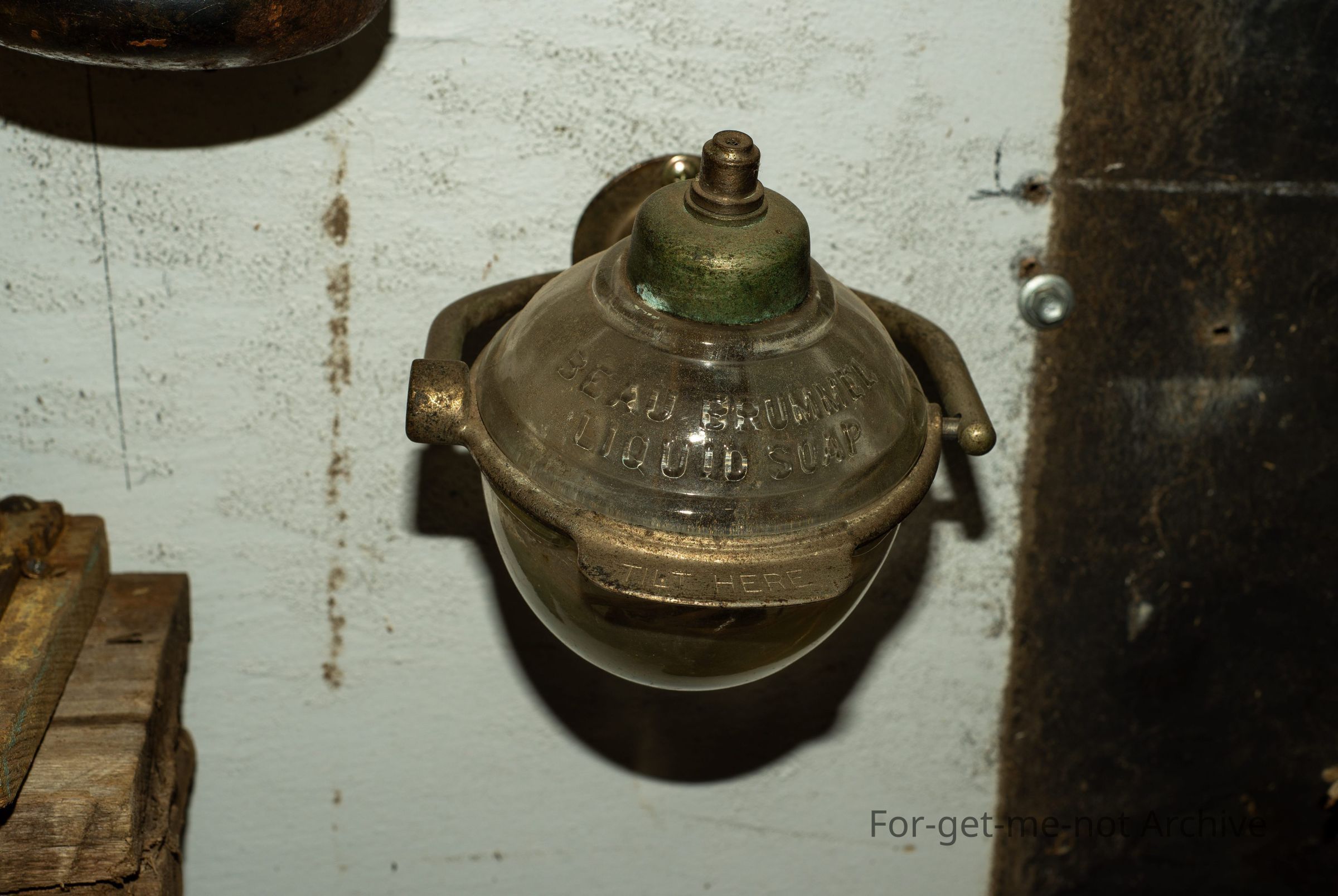 Disinfectant dispenser. This is a glass, circular dispenser in a frame. When it's tilted, to dispense the disinfectant. This one is called the Beau Brummel from the 1919 epidemic where hand cleansing Spanish flu. Was necessary because of the Spanish flu. This one is in original condition and very rare.Collection