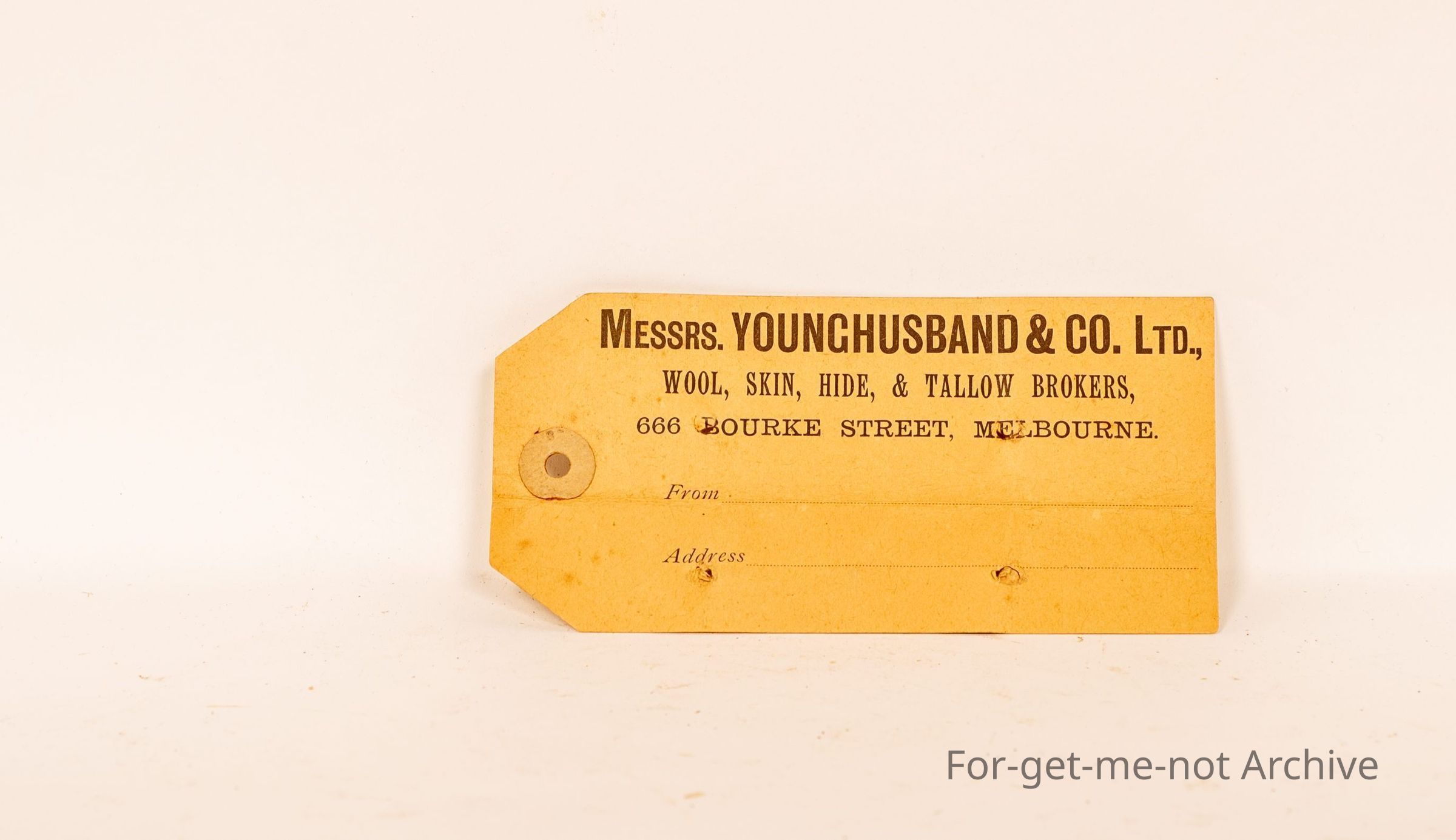 Dispatchment card, young husband and co wool hide tallow, Melbourne.