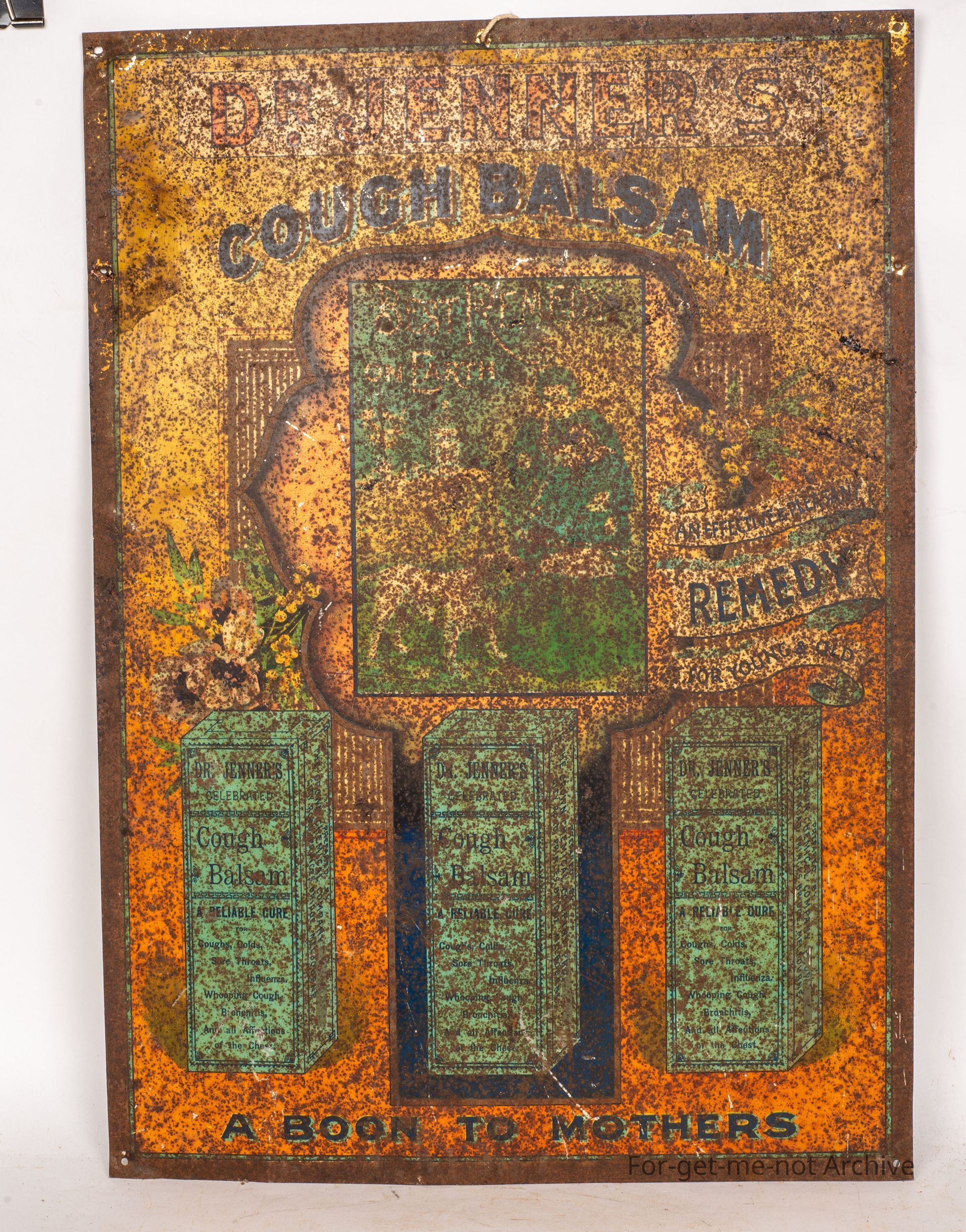 This is Doctor Jenner's cough balsam. A remedy for everything you can think of. Once upon a time, it would have been a glorious sign. Today, it's in, down condition, but still got a an interest valueCollection