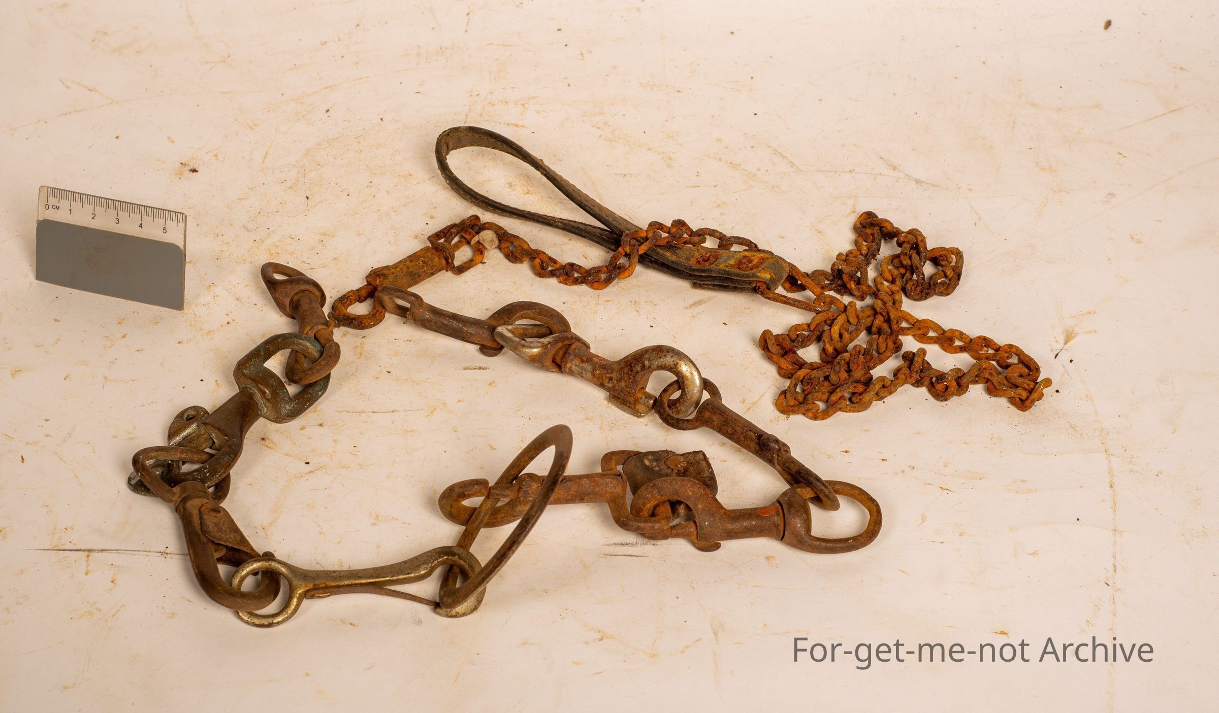 This is a little collection put together of various dog clips, all different designs and shapes, with a small dog lead, with a chain and a leather holder.