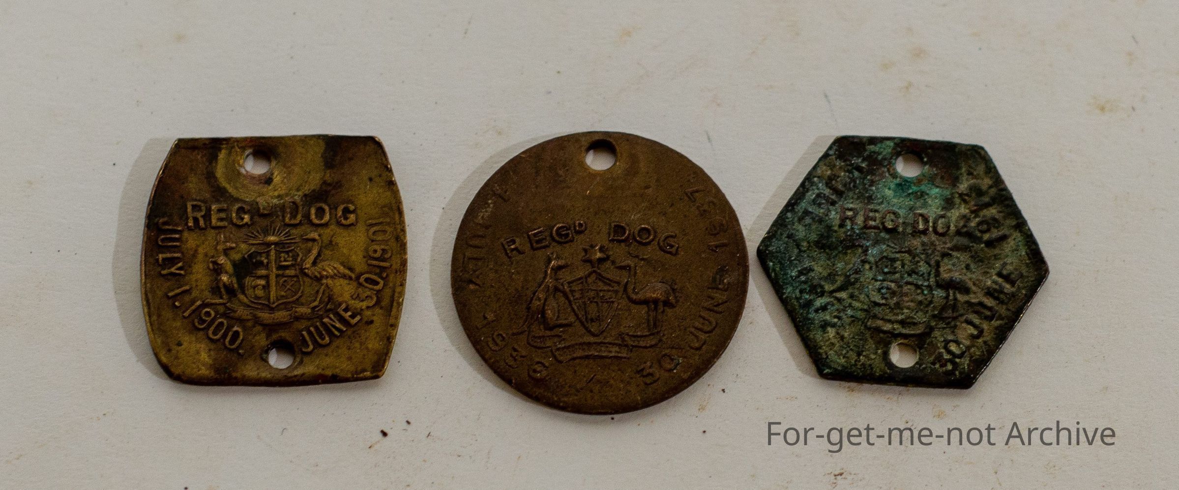 3 x dog rego tags S.A. 1900, 1937. 1912
