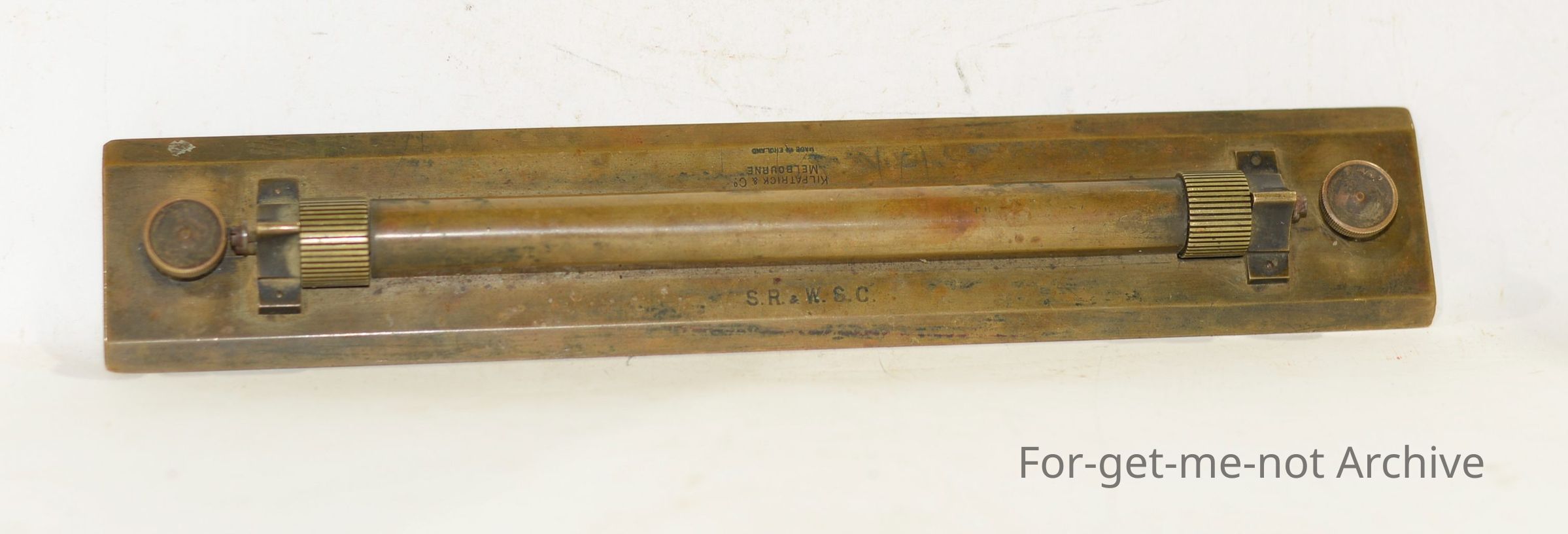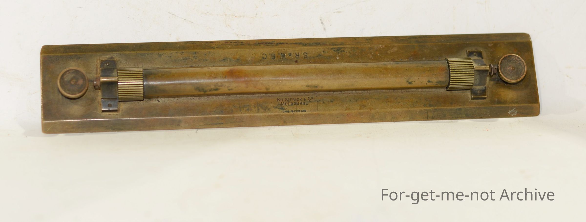 Brass roller ruler. Well made instrument " SR and WSC" "Kilpatrick and Co. Melbourne