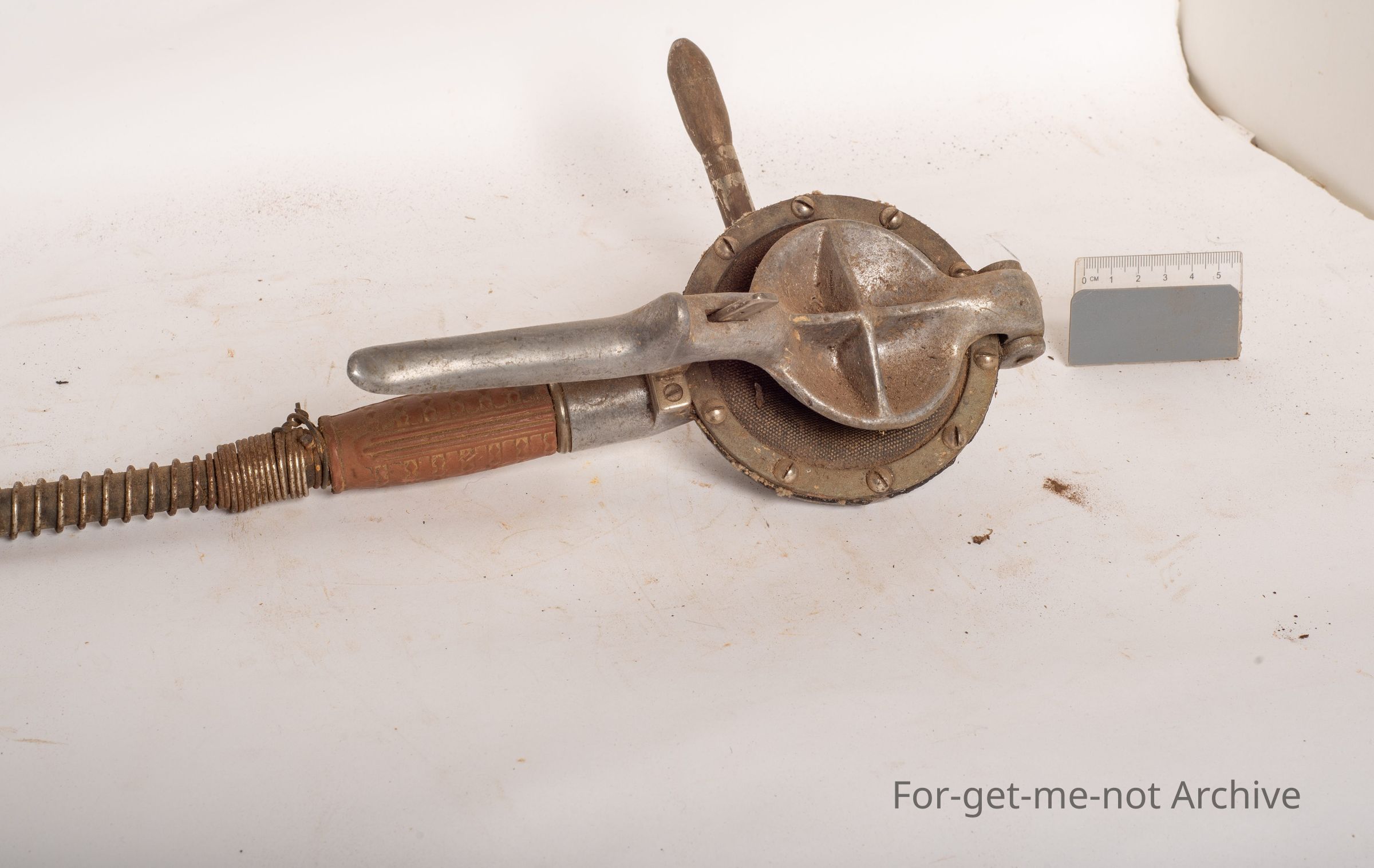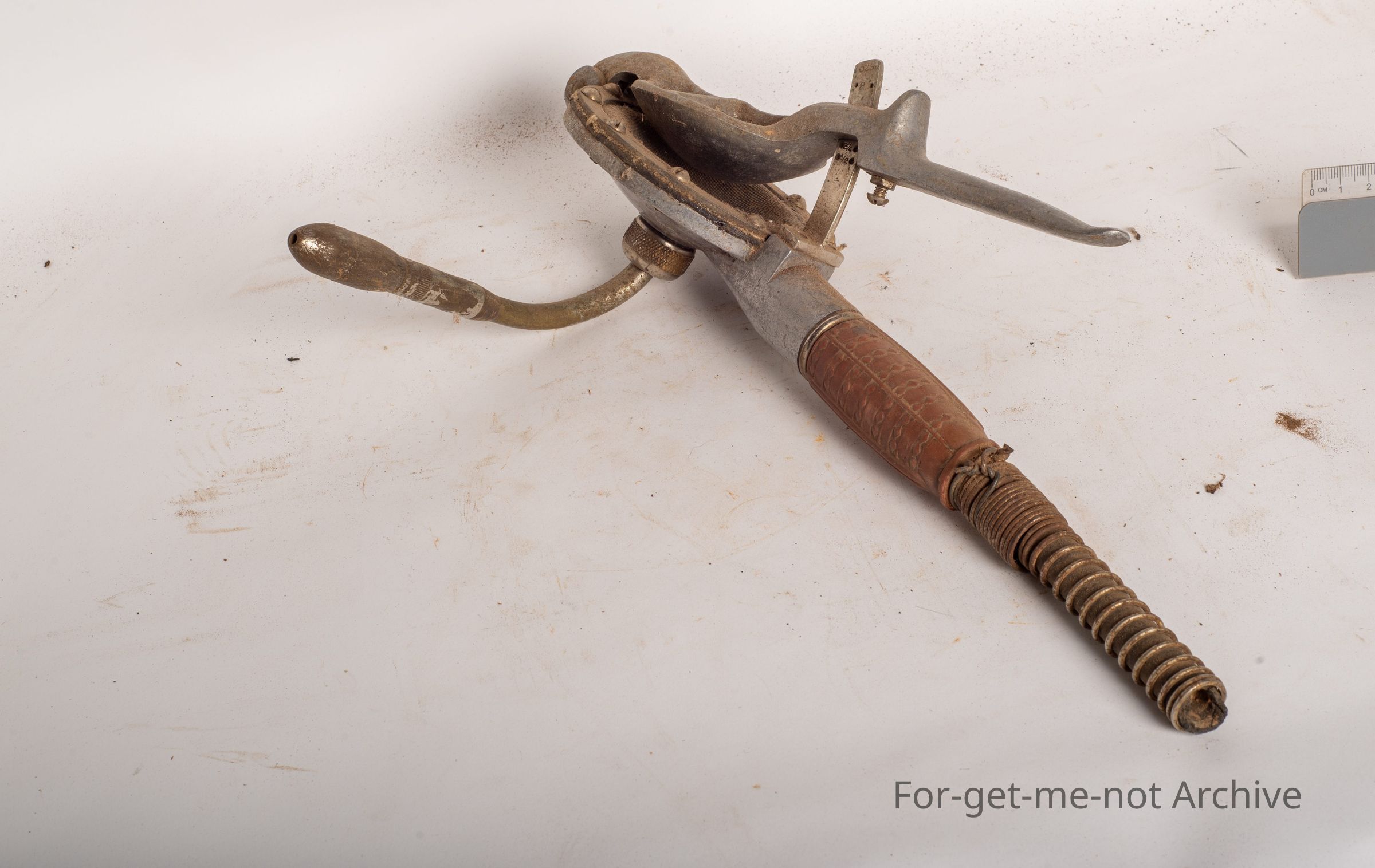 This is a rather large heavy duty drench gun that works on, like a diaphragm with a part that pushes the drench out through the, nozzle. Possibly a cattle one that's too heavy for sheep. Maybe made by Victor Roberts.Collection