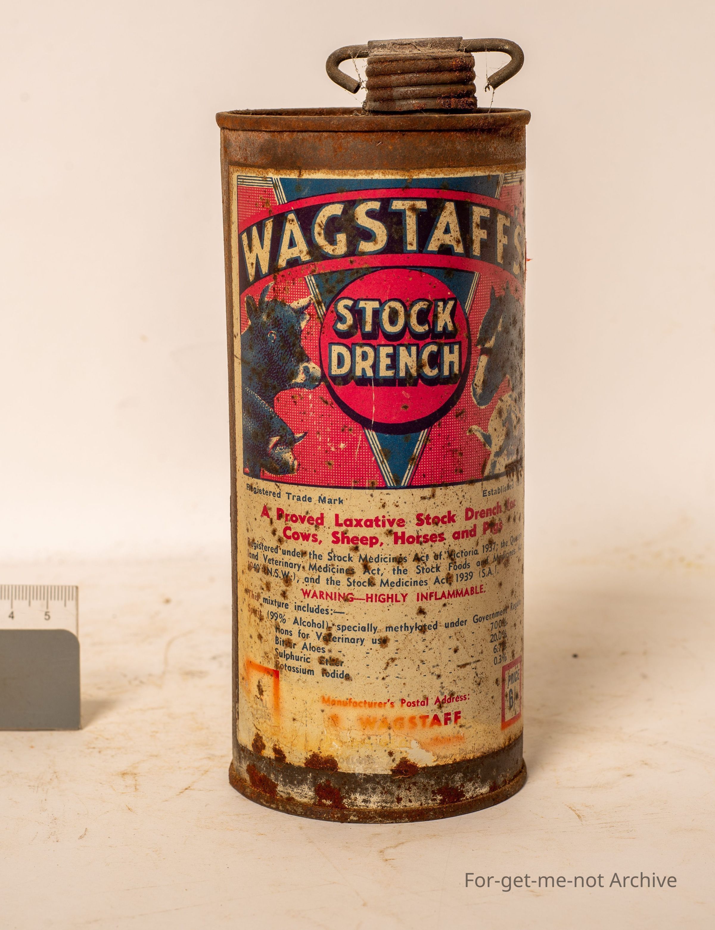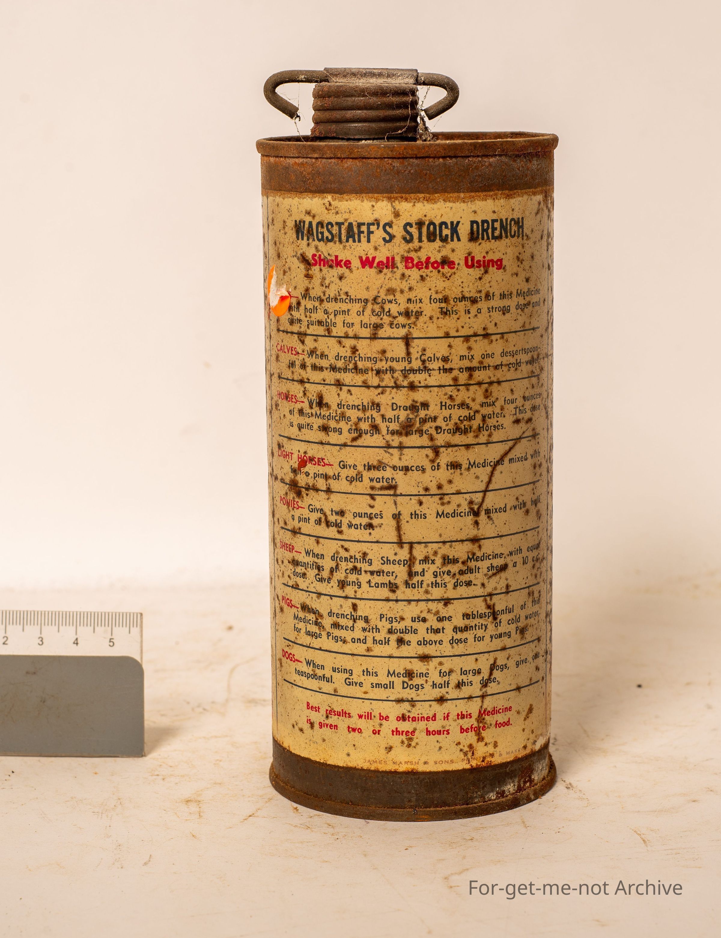Is a tin of Wagstaff's stock drench. Not a very big capacity, maybe 2 points. Image of livestock on the front,
