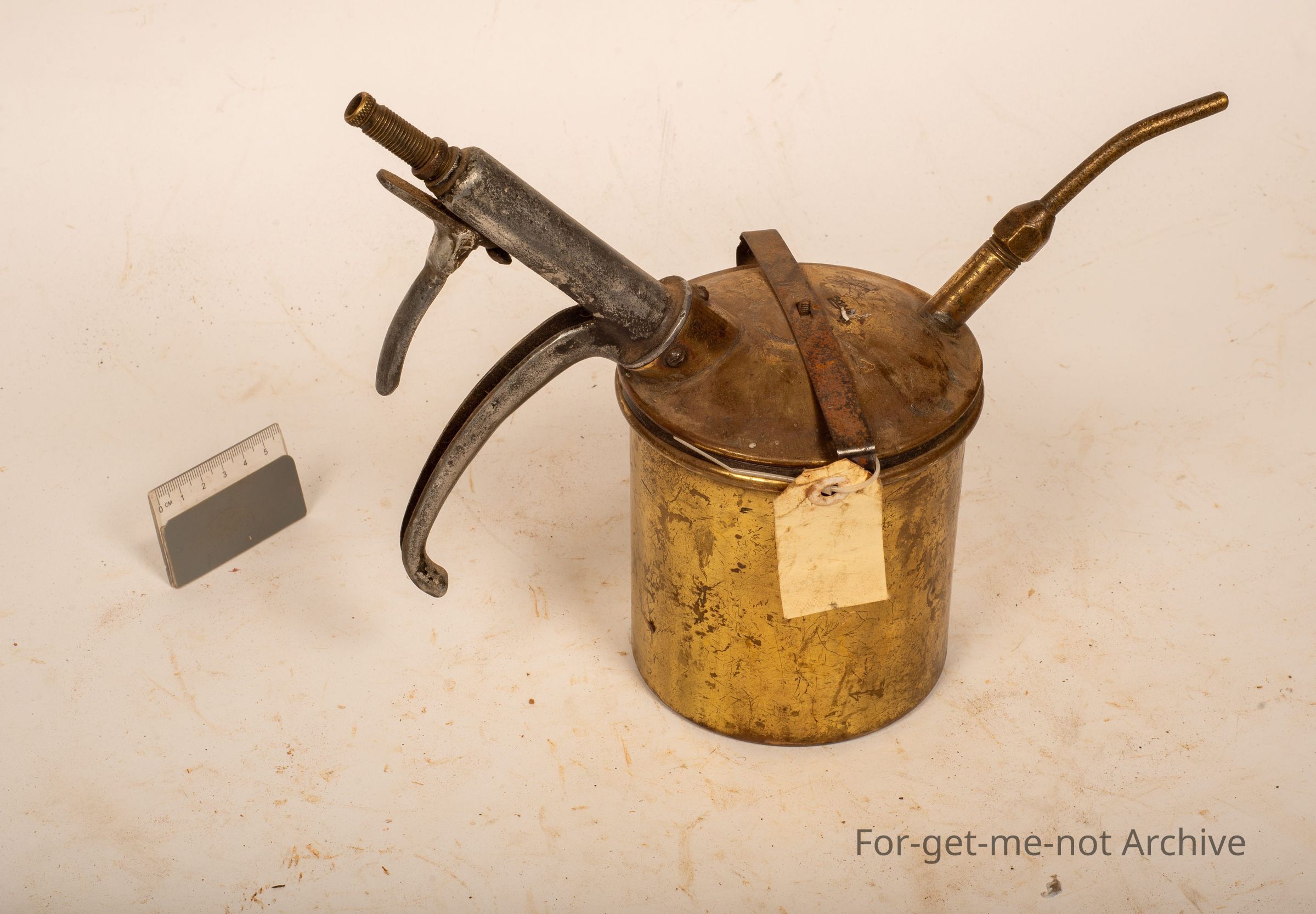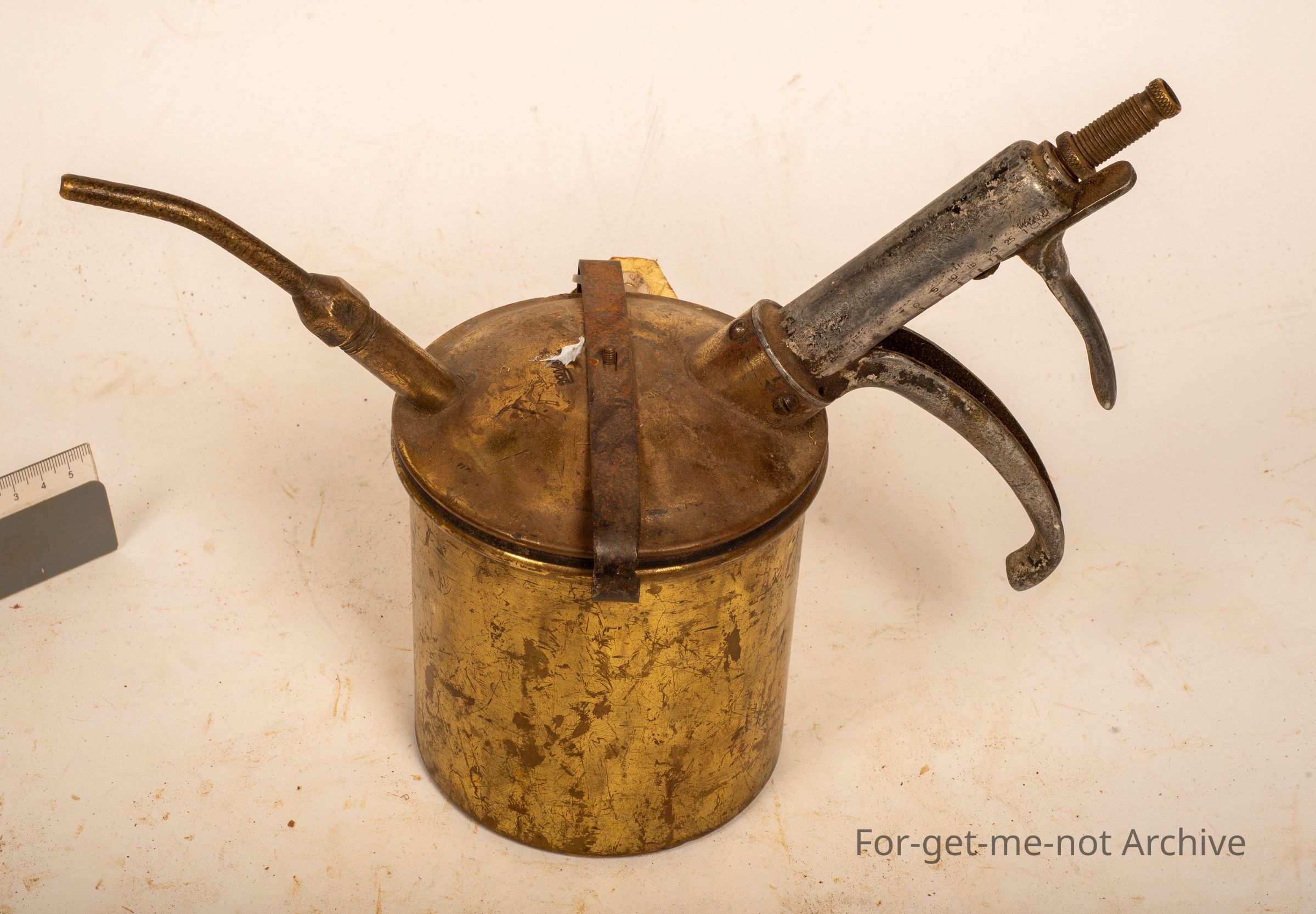 This is a brass canister drencher for cheap, made by Sayers in New South Wales. It's called the Sayers, Early Bird because the early bird gets the worm. This is the only one I've seen. This was purchased at the dispersal of the Junee Museum.Collection
