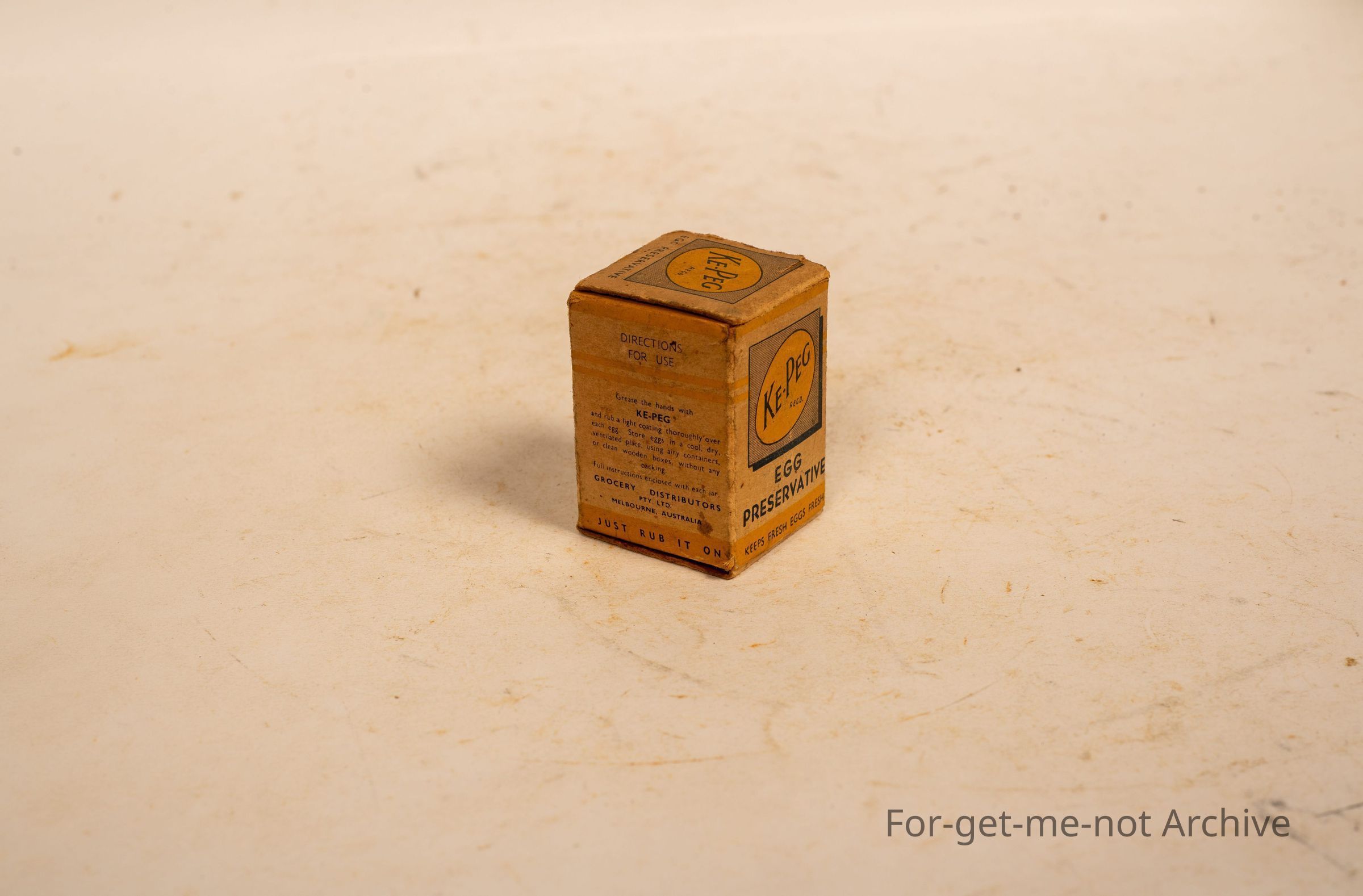 Is a small cardboard box of Cape Egg Preservative. Where's it made? Grocery Distributors, Malvern, Australia. Price