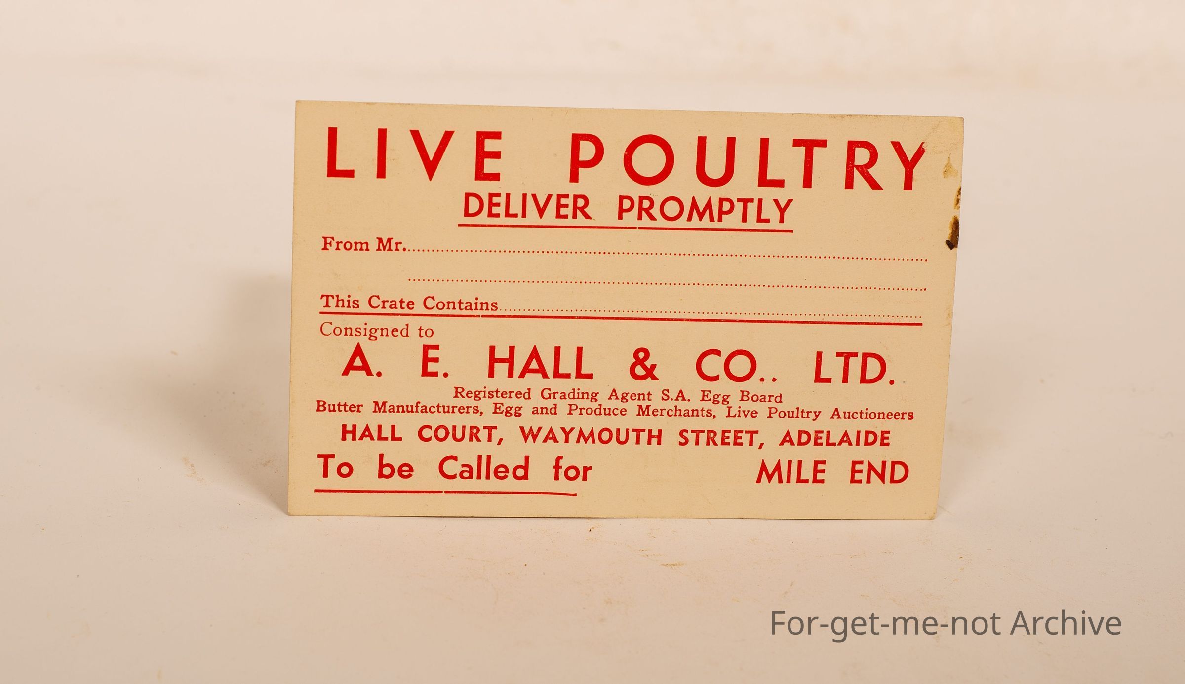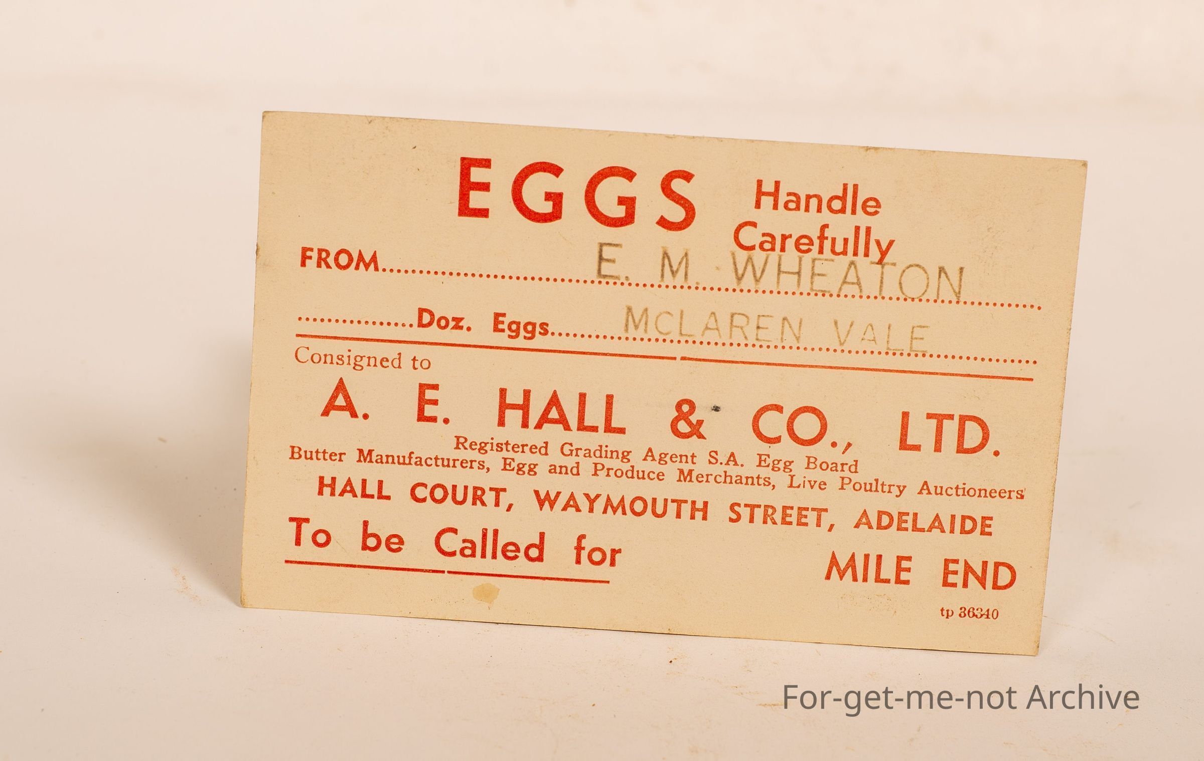 Transport piece for handling eggs from A Hall, Weymouth Street, Adelaide.