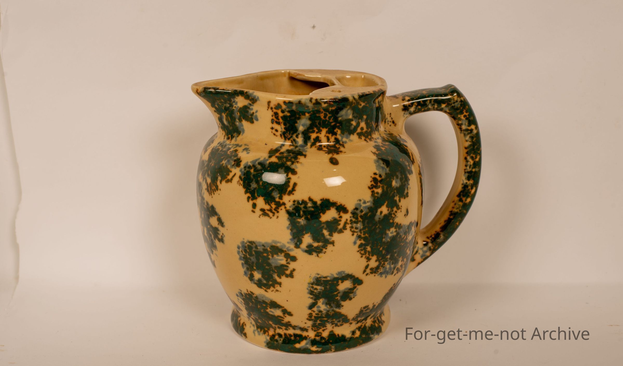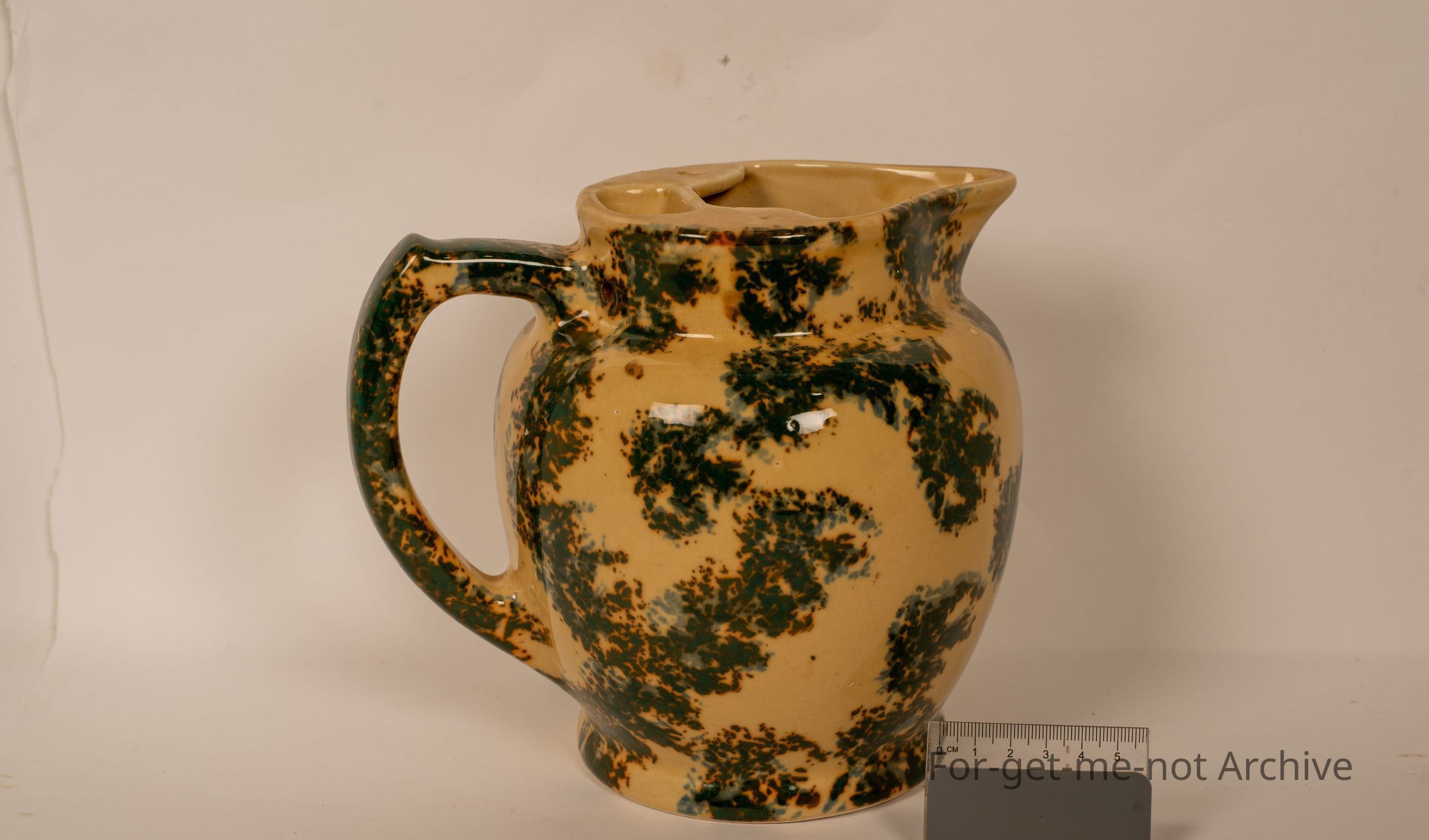 An Australian electric ceramic jug, no lid, yellow underglaze green sponge glaze dabbed on