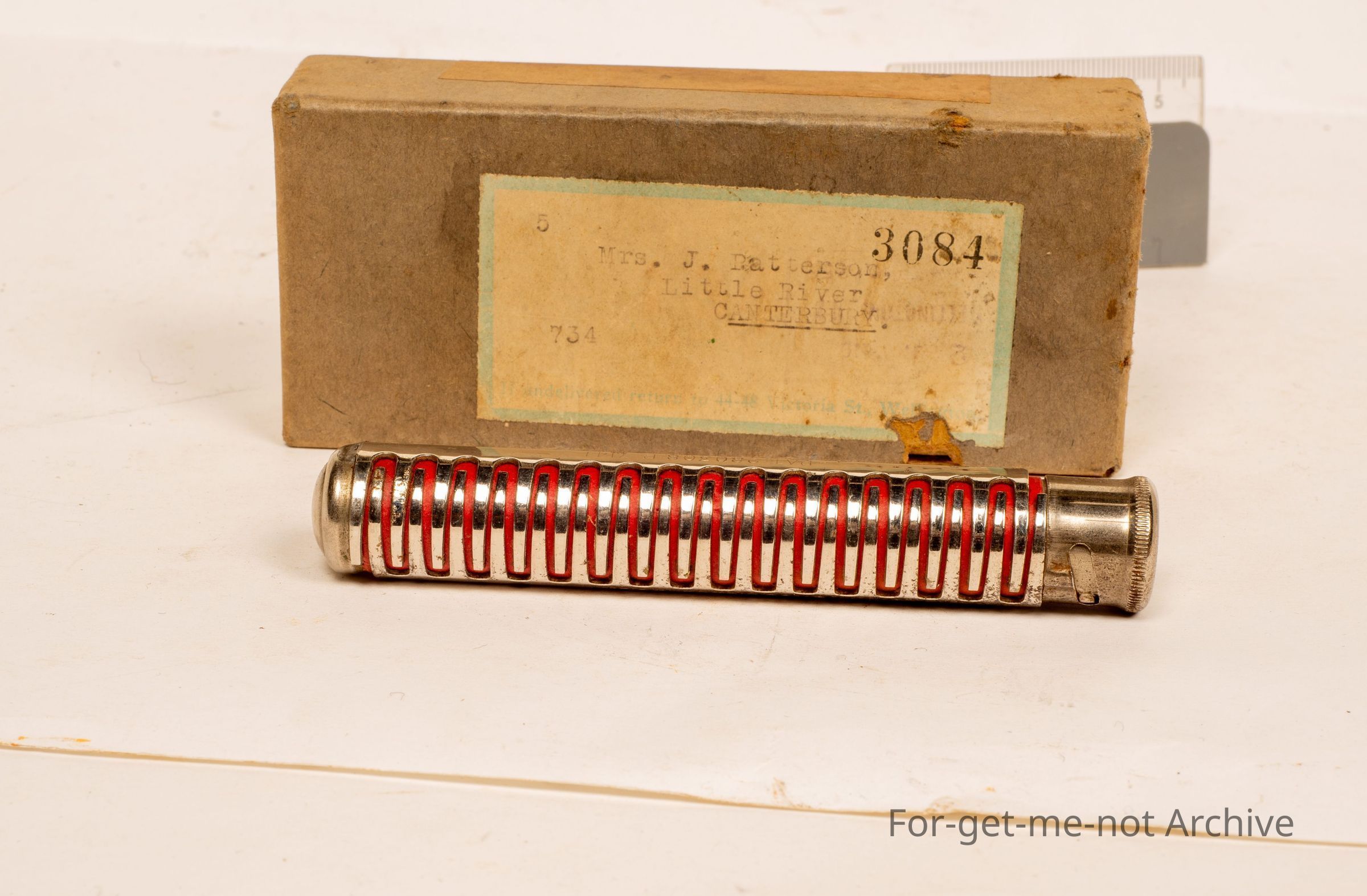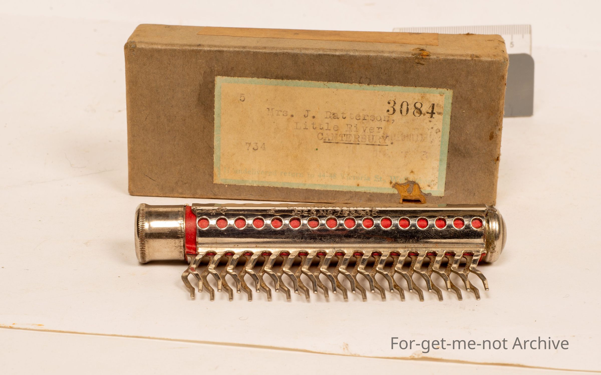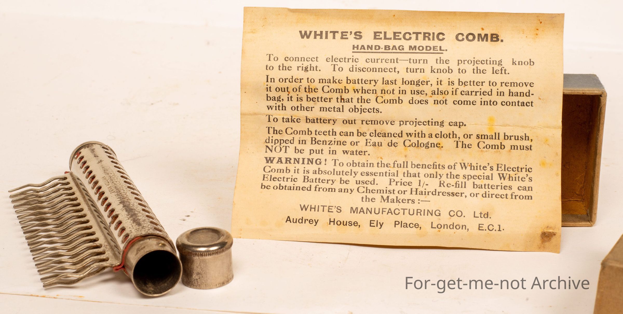 Is, an instrument called White's Electric Comb, very detailed in the shape and manufacture of it. It's a registered patent. The box is with it. So it would be for curling hair, I presume in some way or anotherCollection