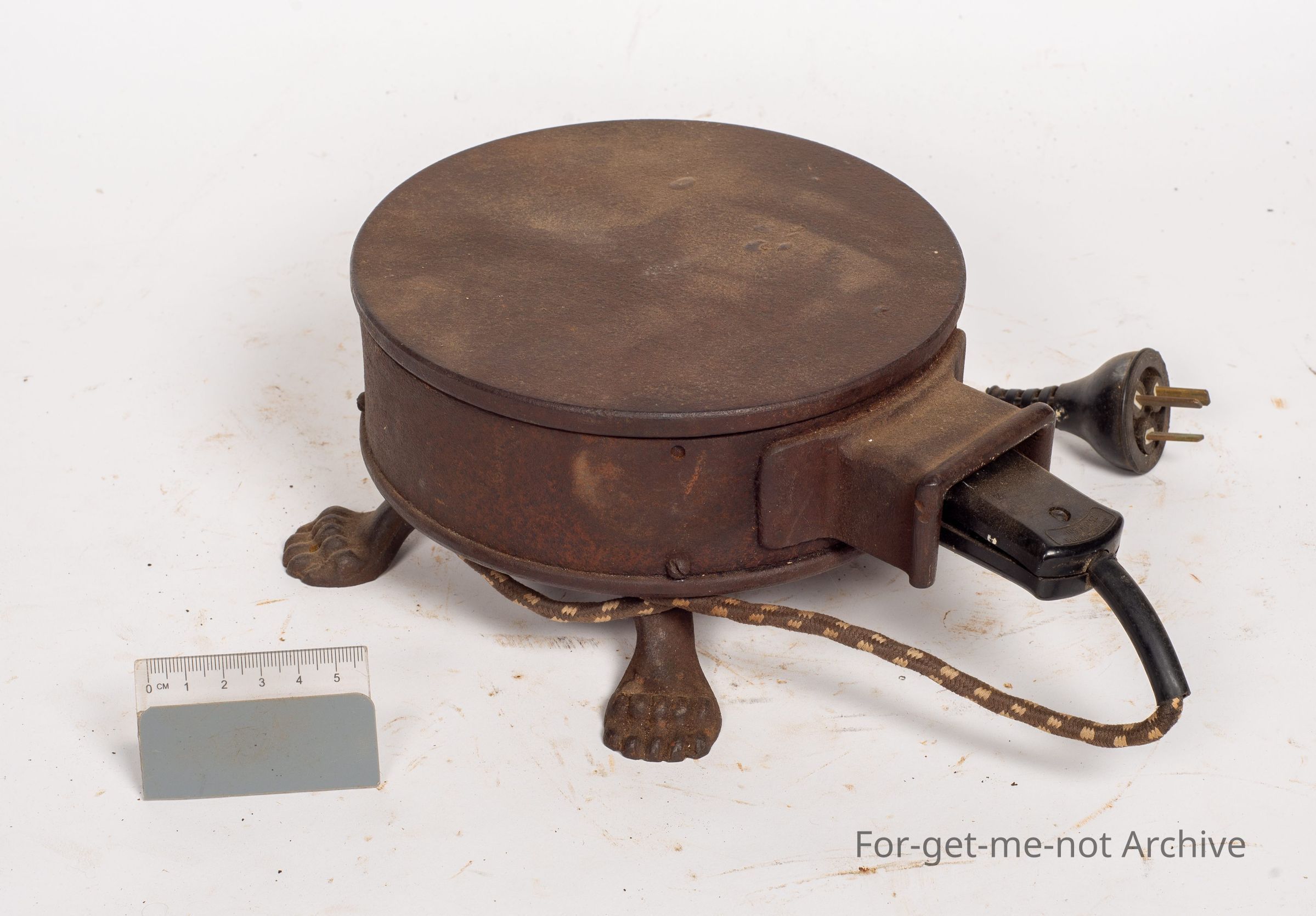 This is a very heavy, compact, electric cooker. Beautiful ornate cast iron feet. Made by RC and TWK Silverton. Whether that's in Australia or America 240 volts. Oh, it's got to be Australian. Lovely, rare ornate little piece,Collection
