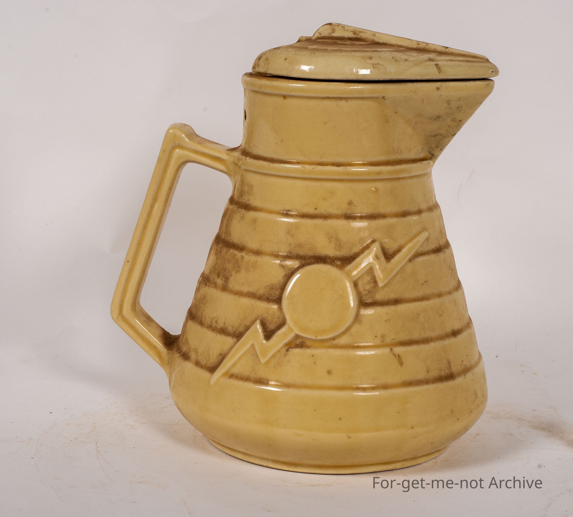 Another ceramic electric jug. This one has its original ceramic lid, the cord, and the element. No cracks or chips.