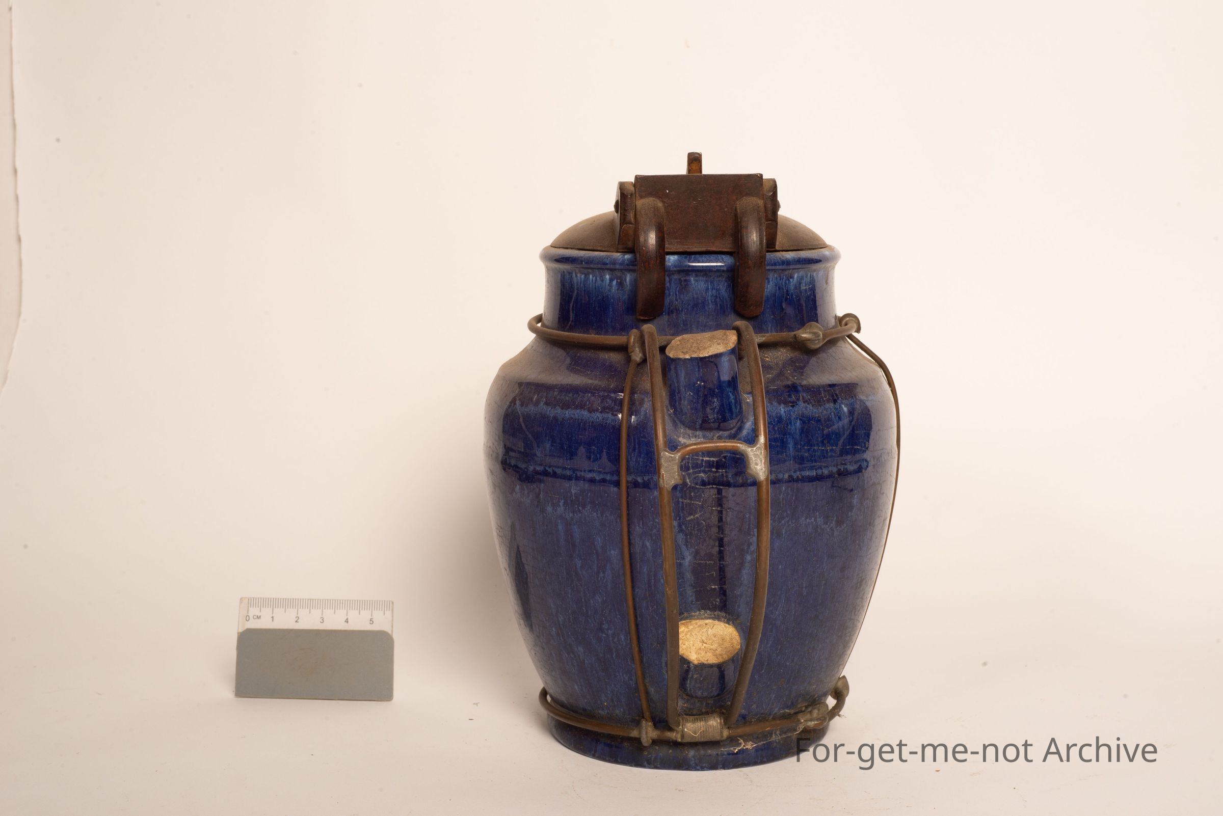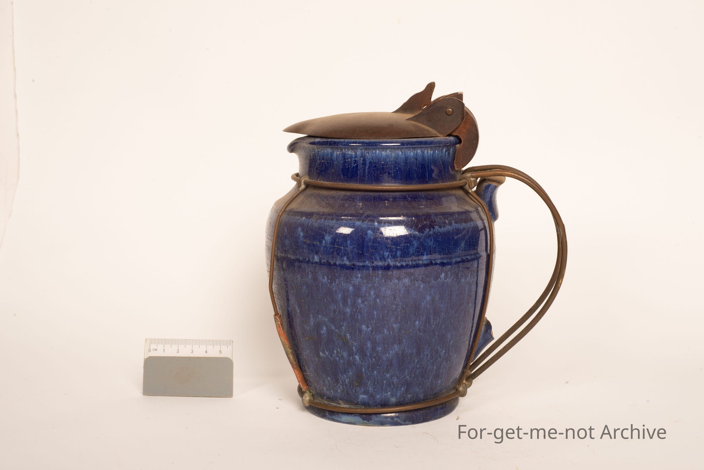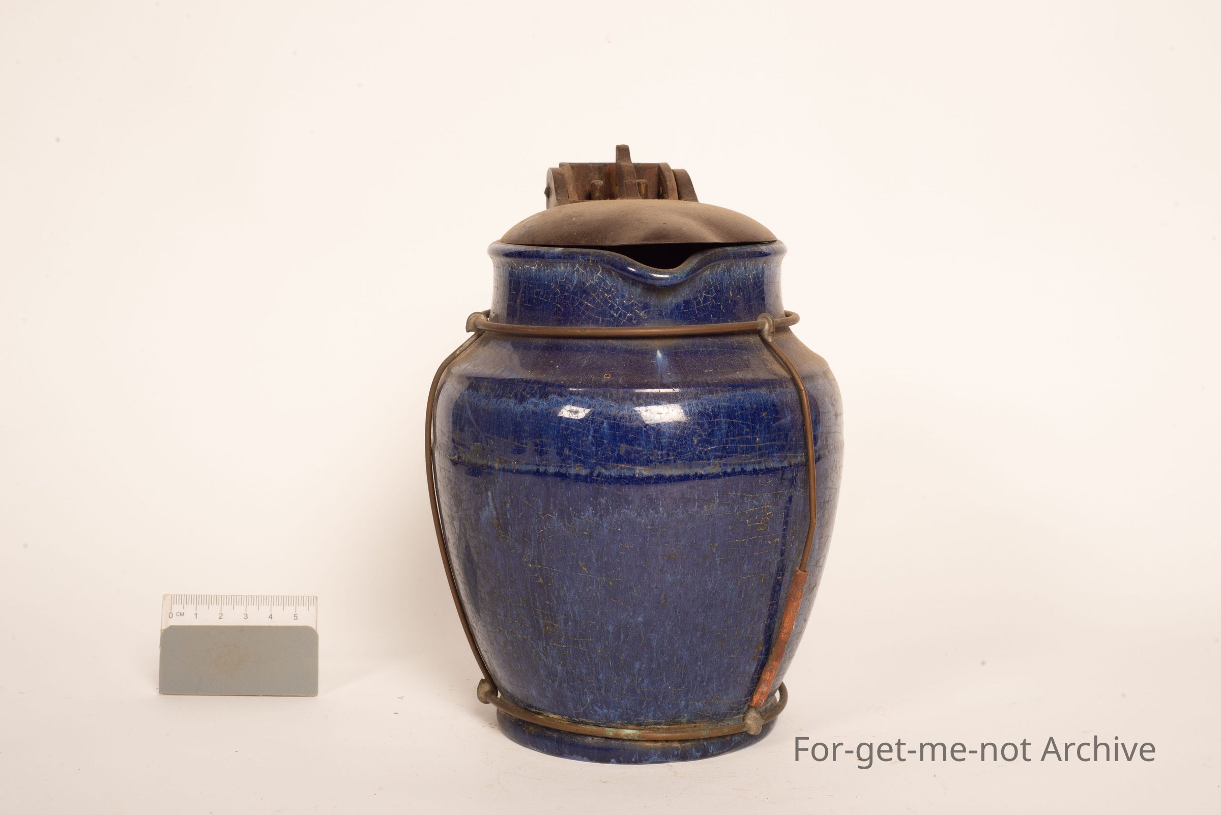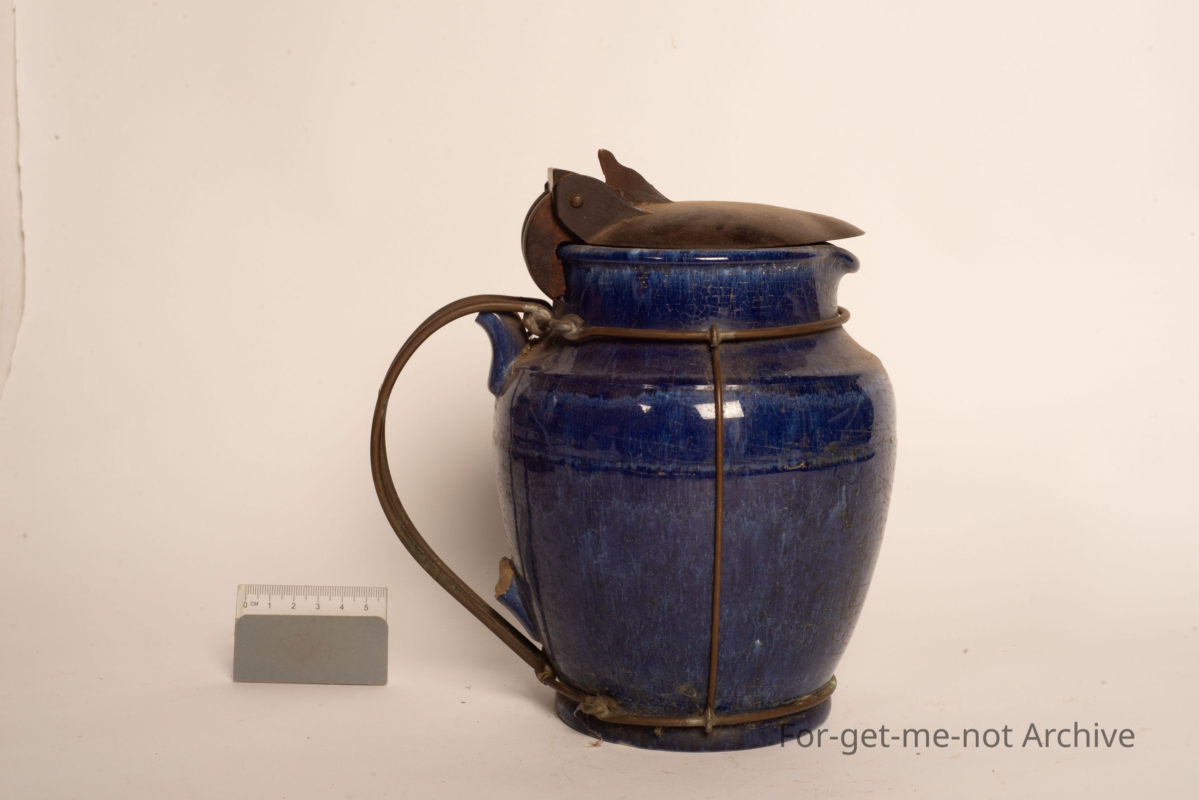 This is a very early electric jug that has had the handle broken off. The improvised comes in the form of a wire frame that fits around the body of the jug which creates a new handle. Beautiful bit of work, very innovativeCollection