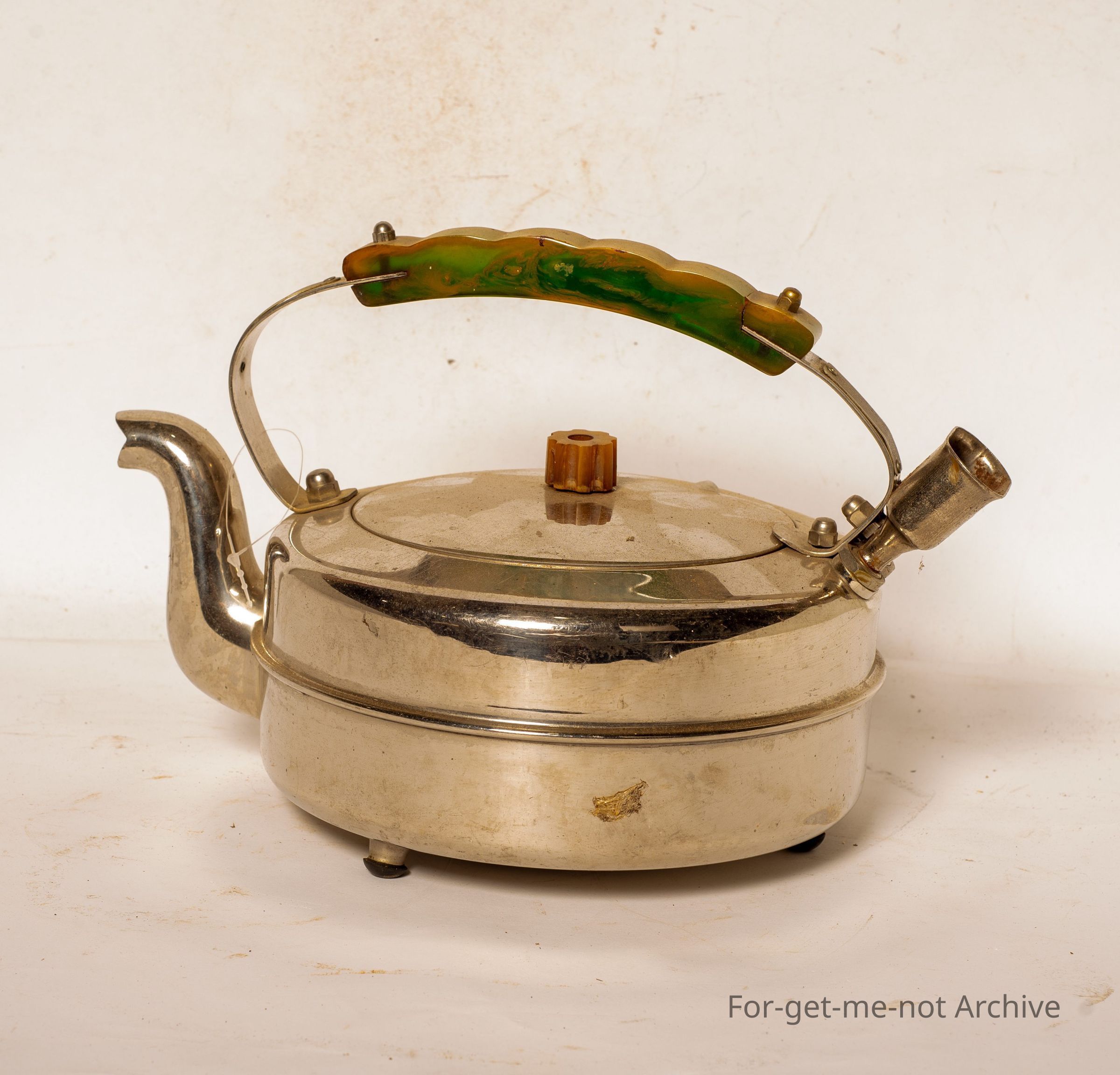 A metal electric jug. this is a very nicely designed jug, beautiful bakelite handle and knob. The chrome work is in perfect condition. Stamped on the bottom, Claude Products Melbourne, Victoria.Collection