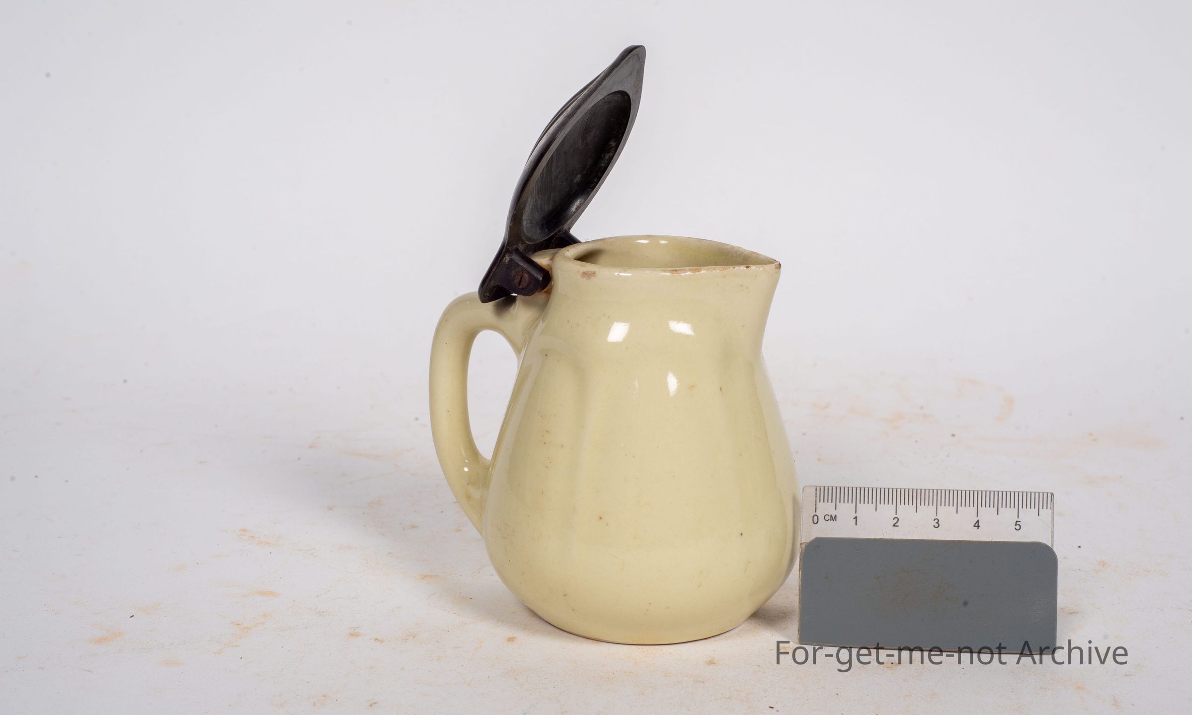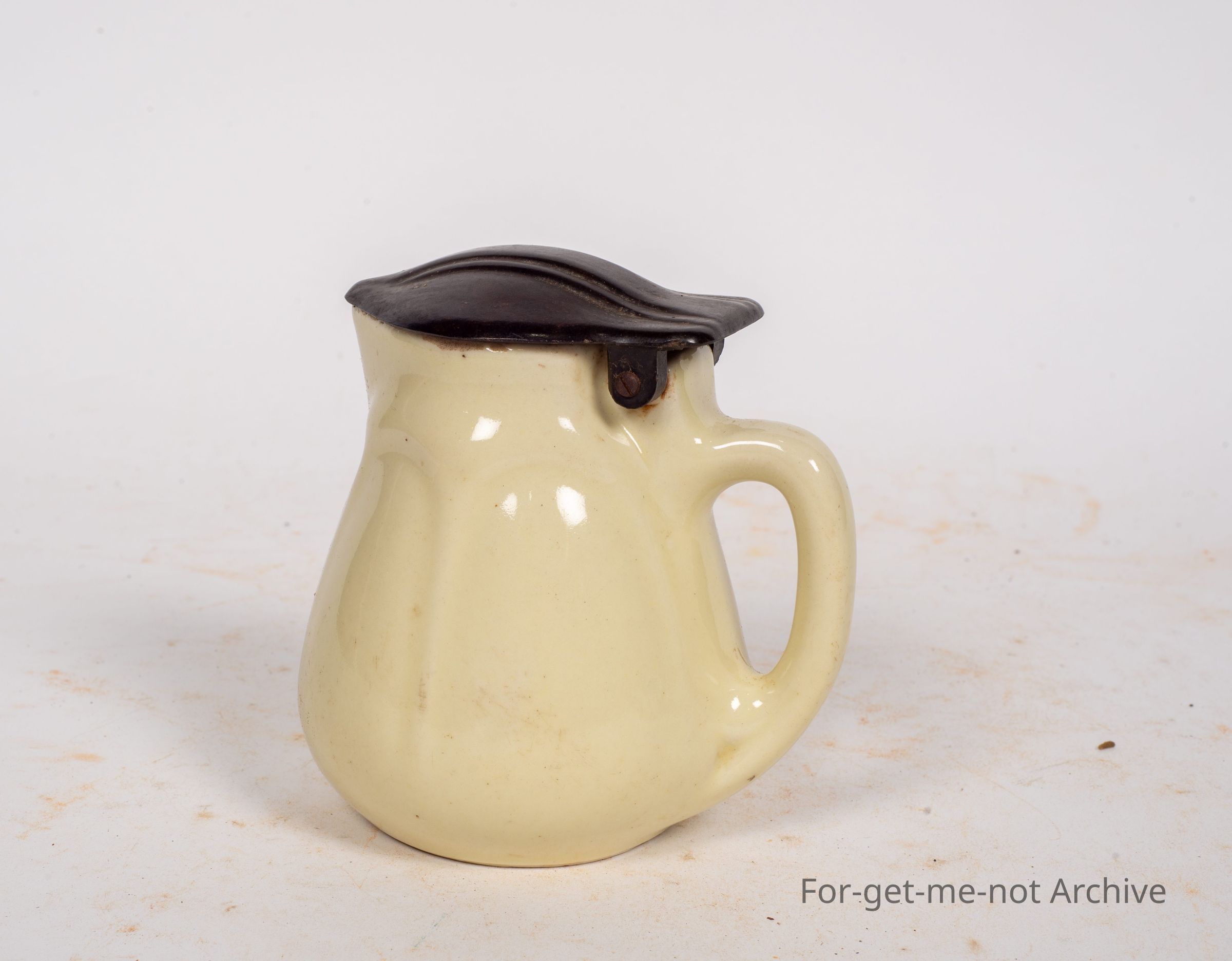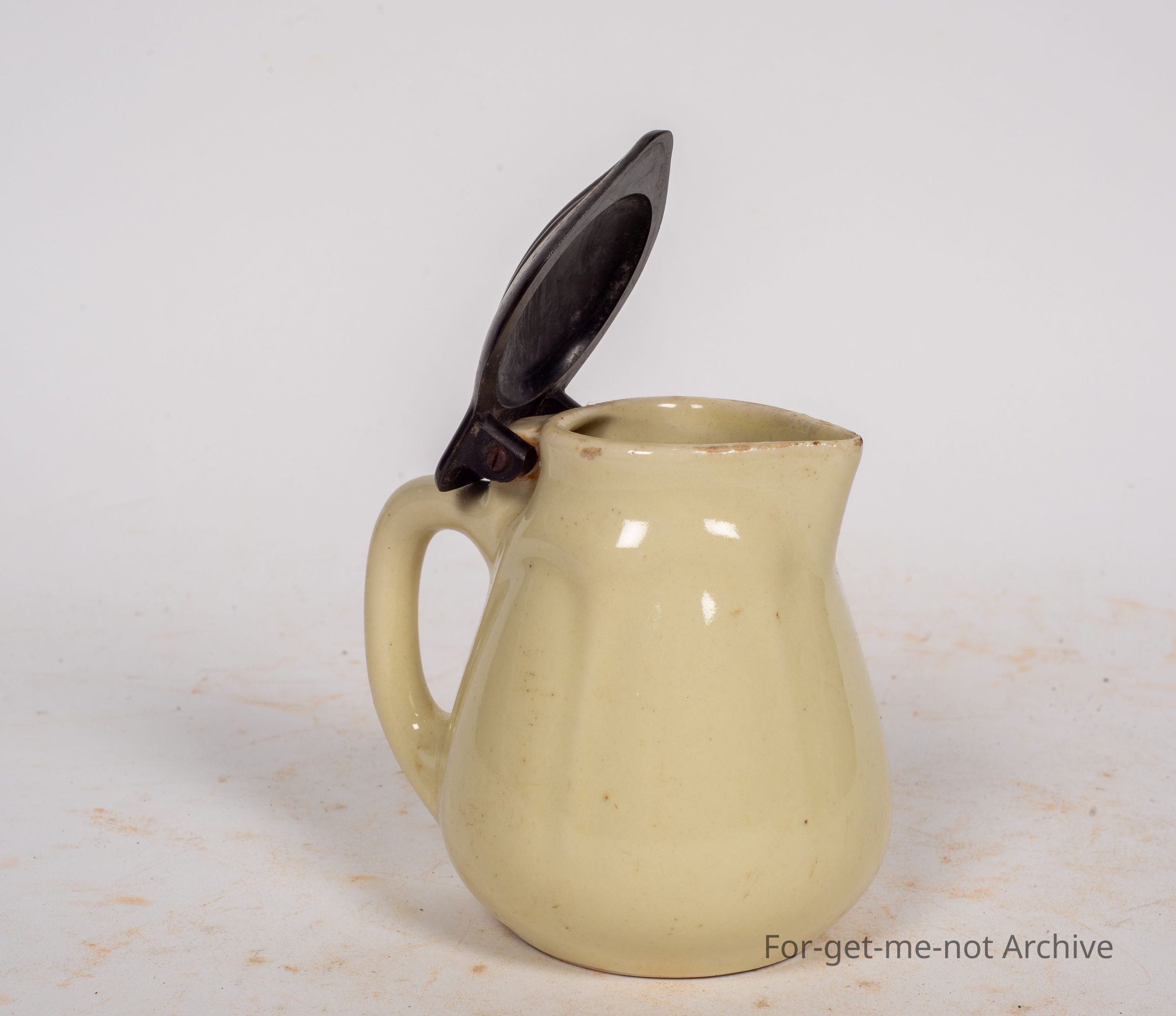 Is a salesman sample of an electric jug. This has the original Bakelite lid, yellow glaze ceramic body in beautiful condition.