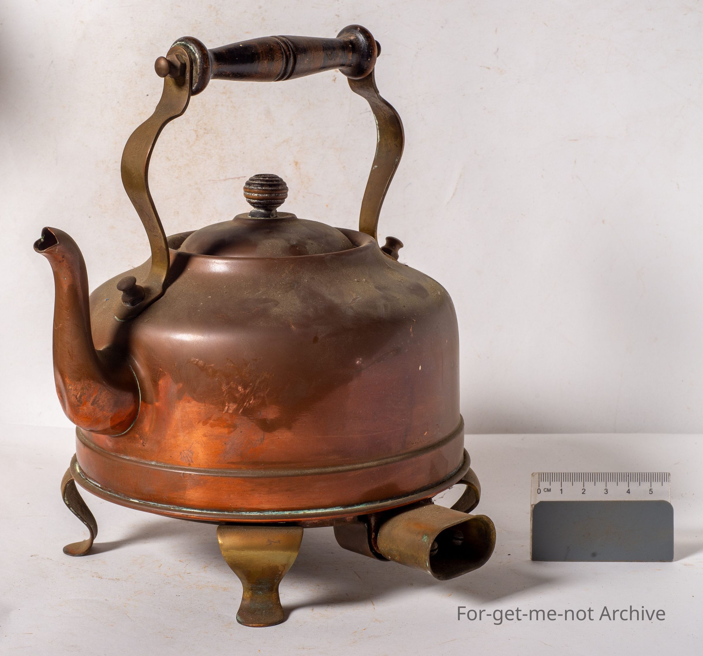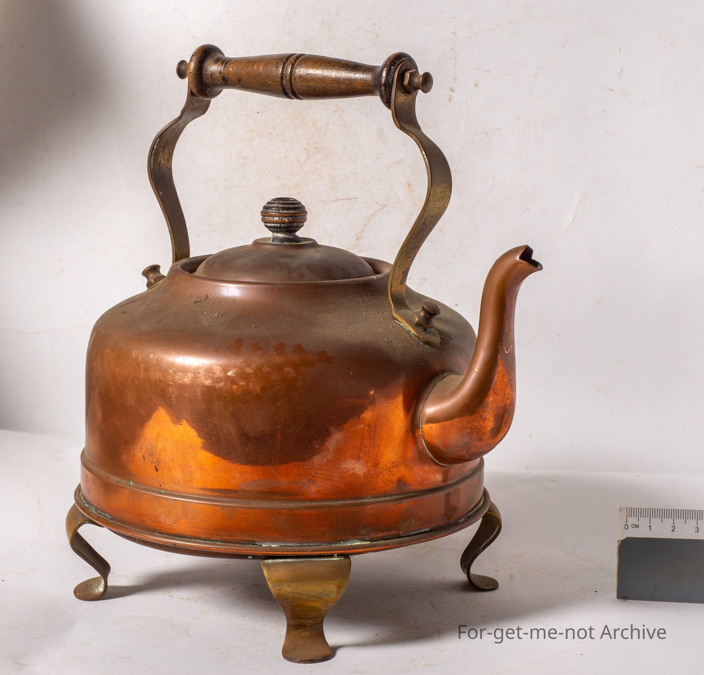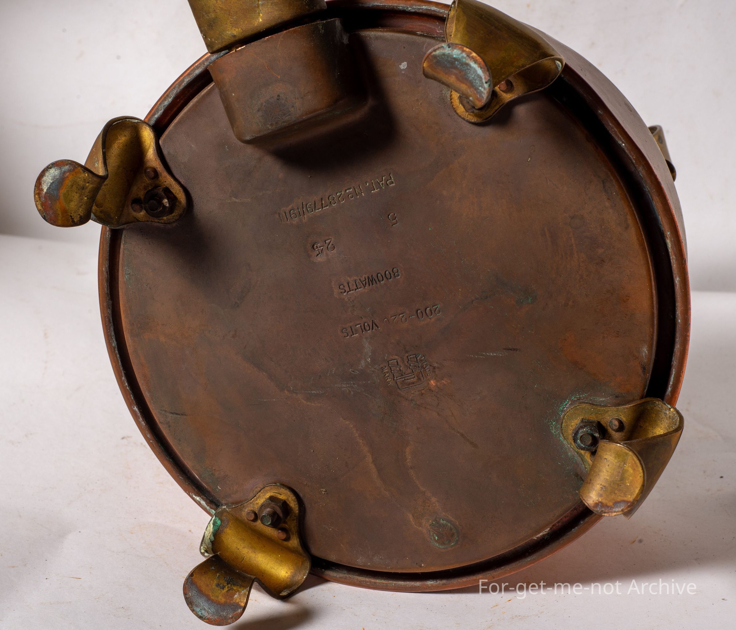 This is an electric copper kettle wooden handle. Looks very well made. Patent date of 1921, I think. 1911. In excellent order. Probably hasn't done a lot of work.