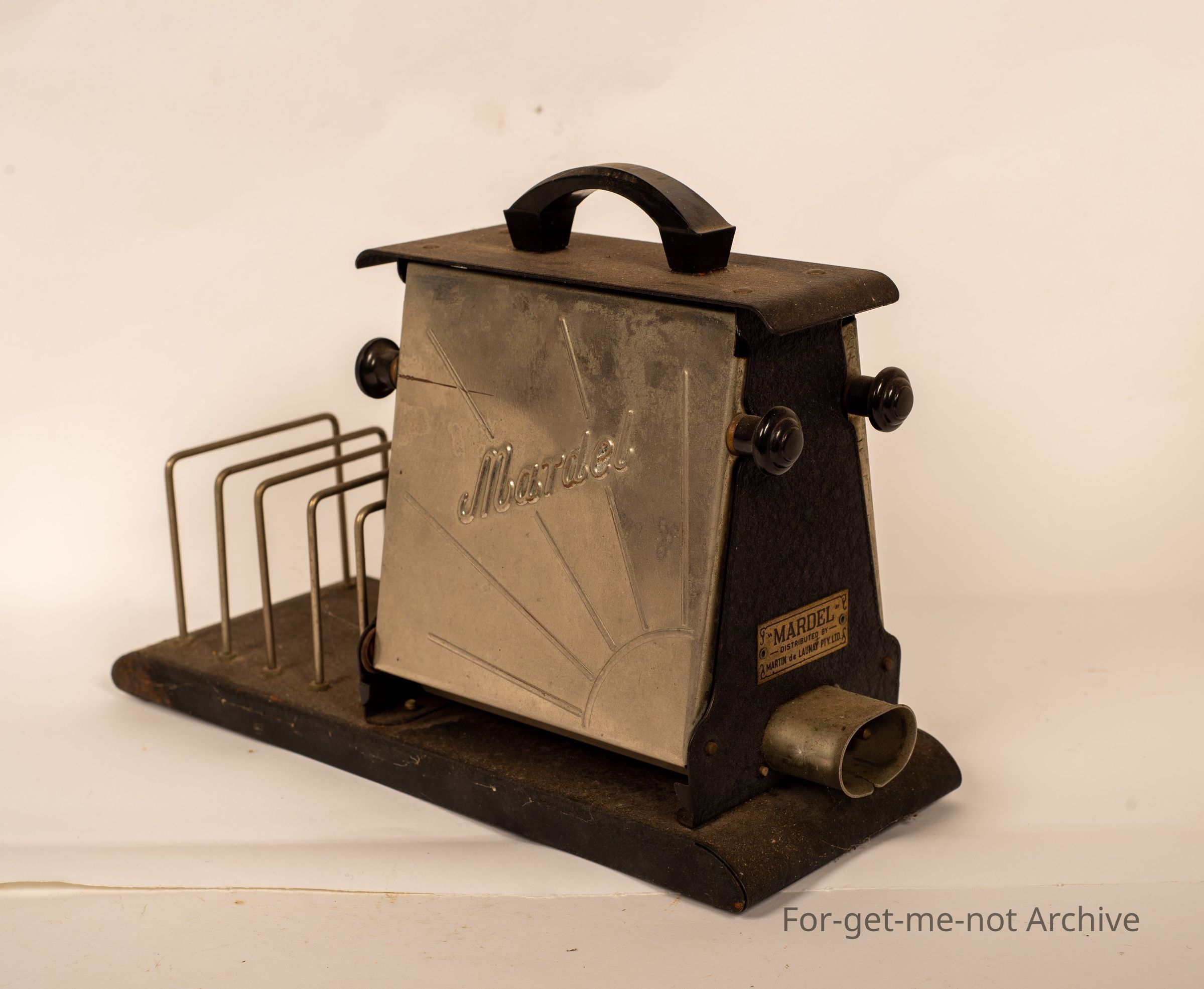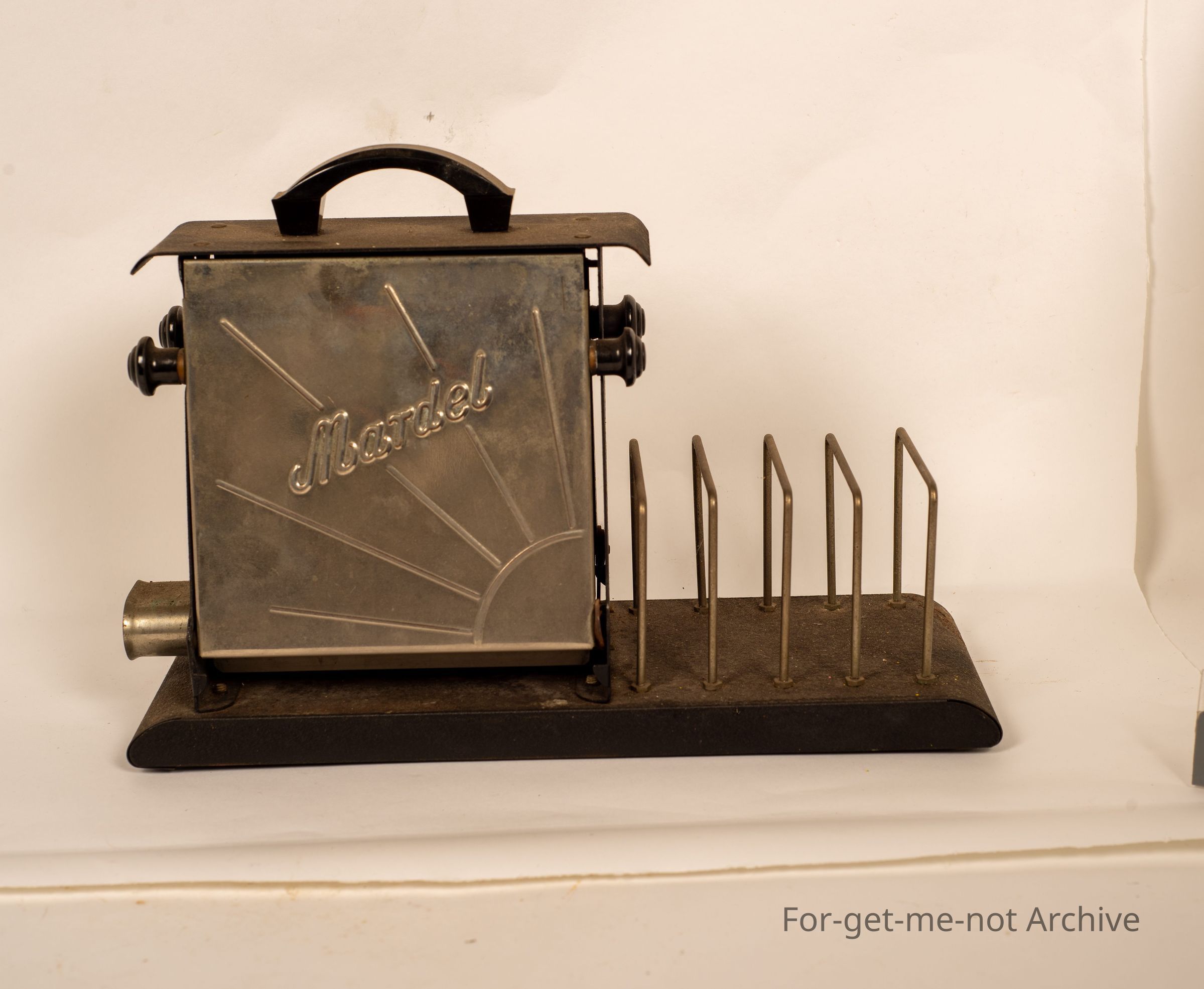 Electric toaster made by Mardel Australia with toast rack built into base. Bakelite handles, very good order.