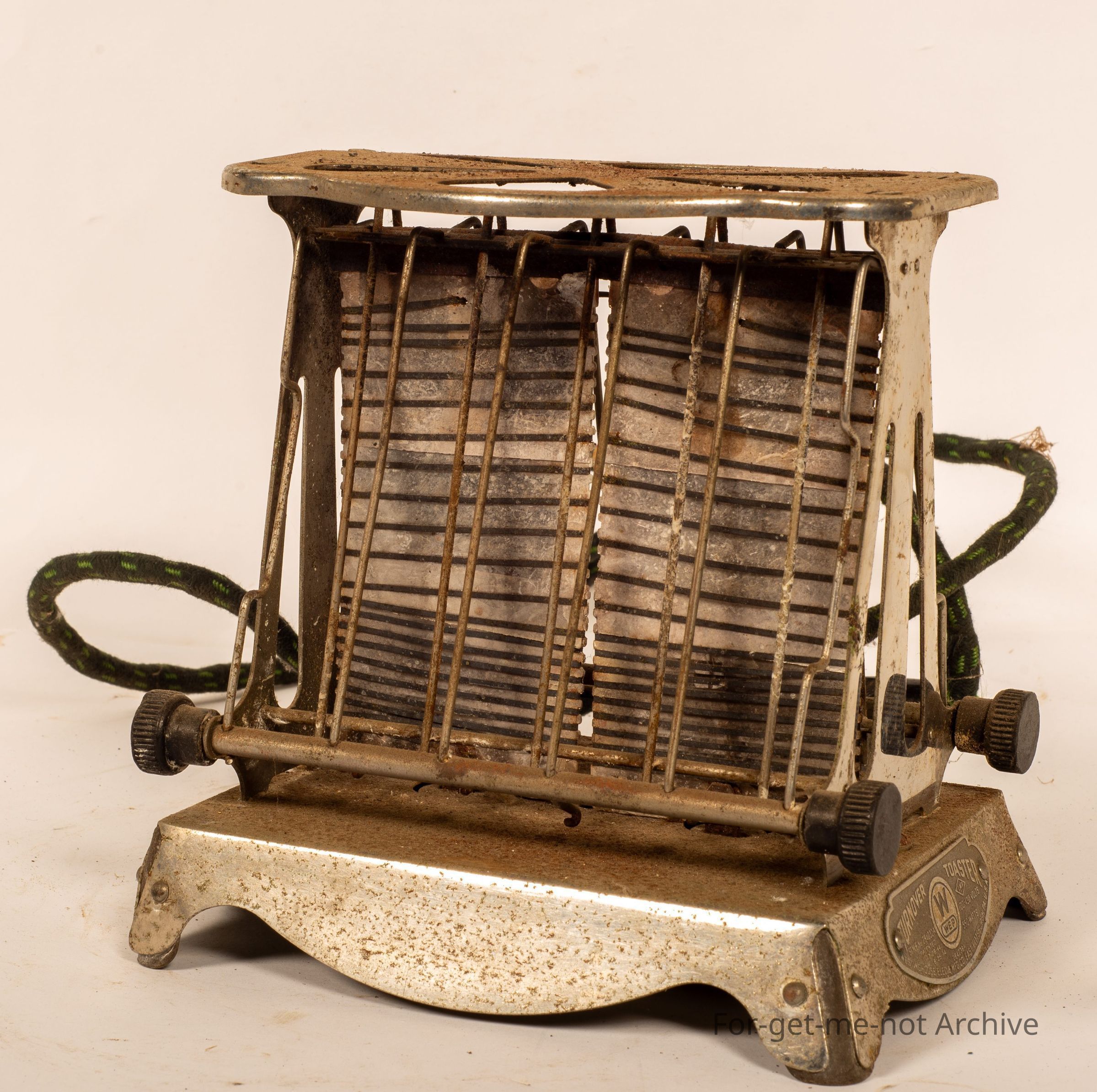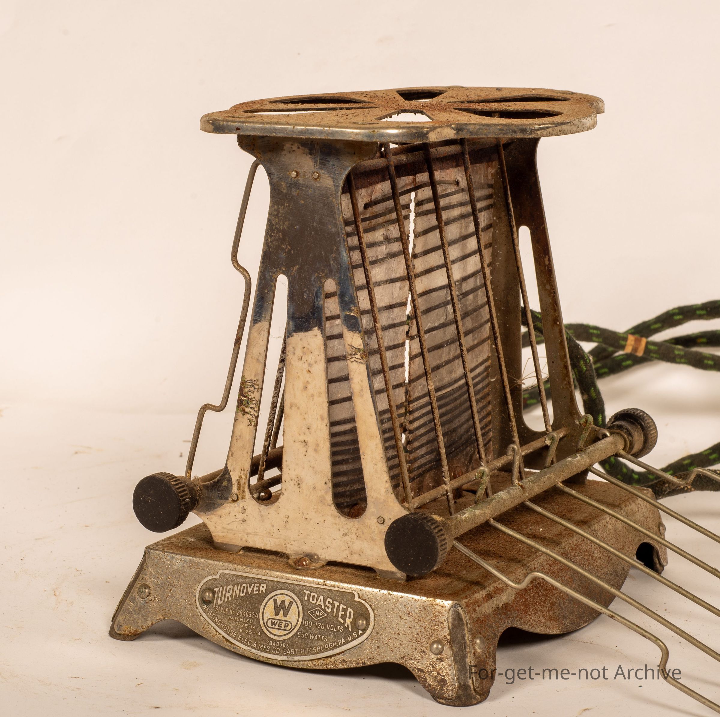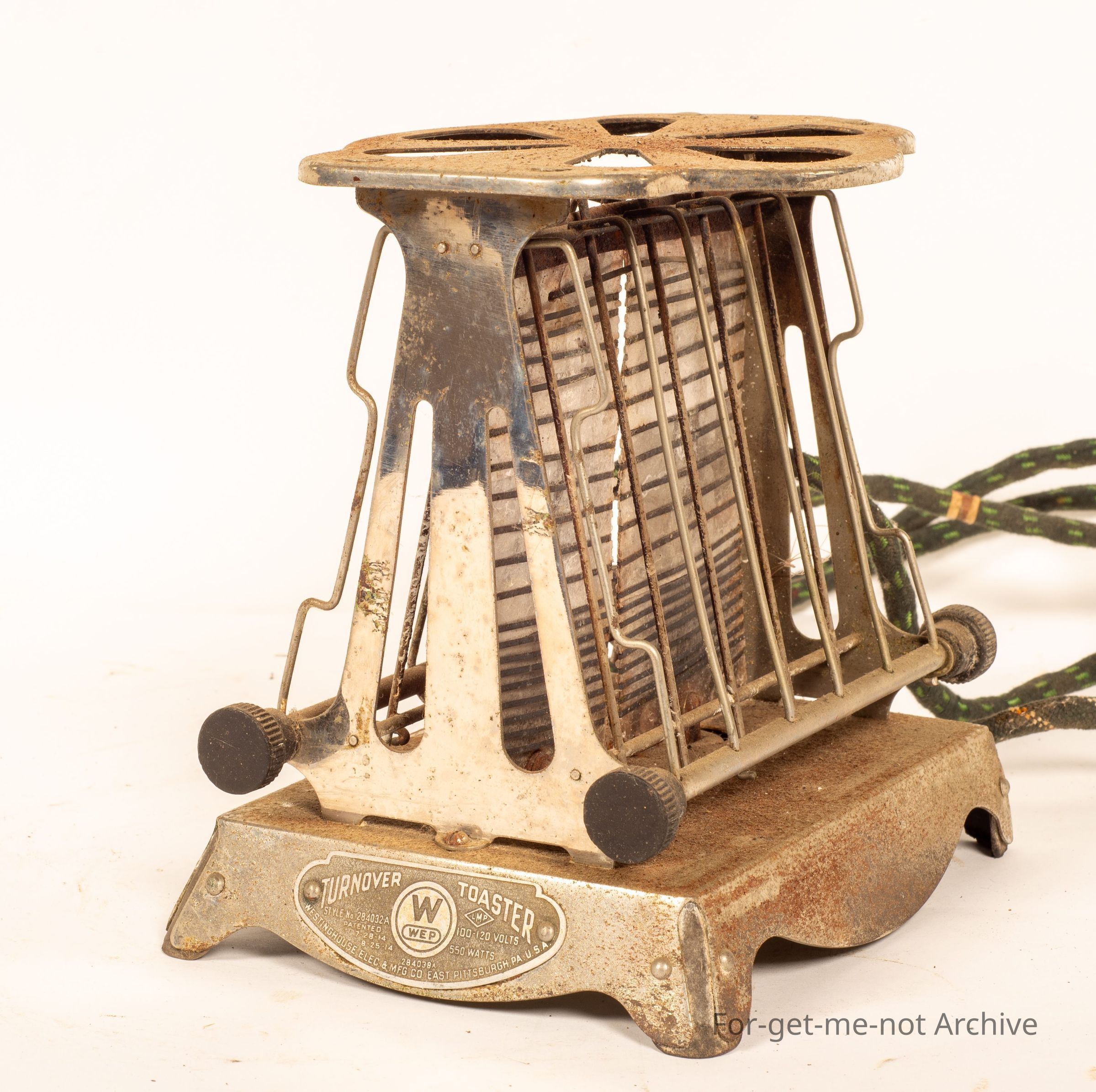 Electric Toaster. This one has an automatic turnover system. This is made by the Turnover Toaster Company of, Westinghouse Electric, from Pittsburgh USA.