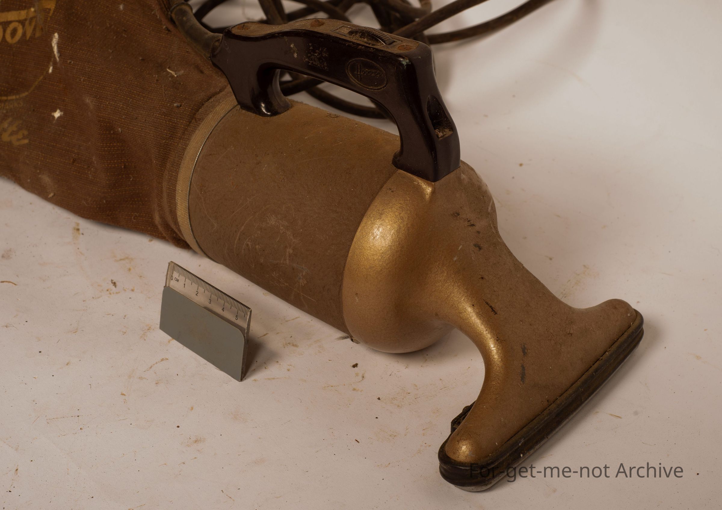 This is a small hand held electric vacuum cleaner with a catching bag, made by Hoover for cleaning out cars.