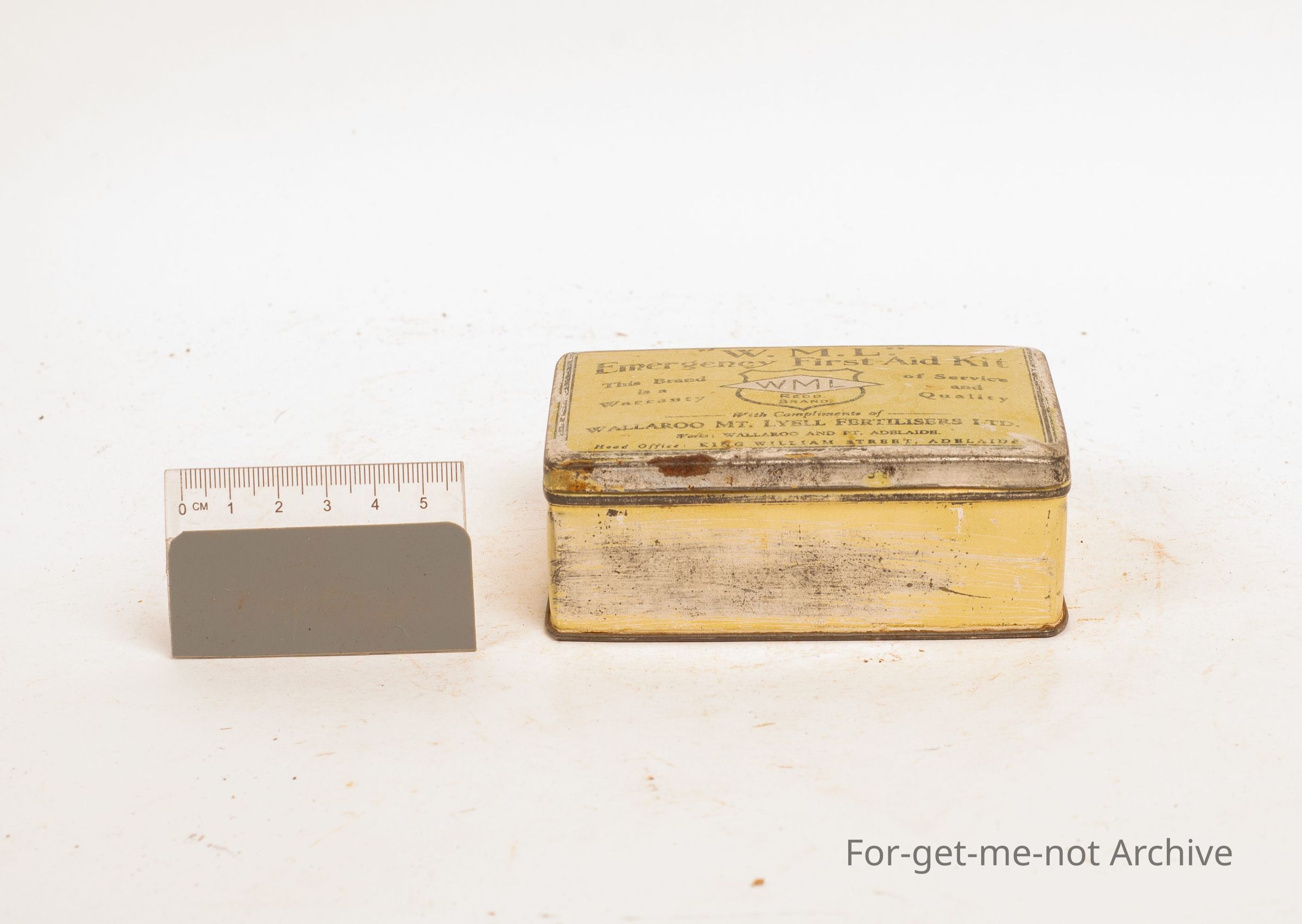 Emergency first aid kit in a tin from Wallaroo Mount Lyell Fertilisers Adelaide.