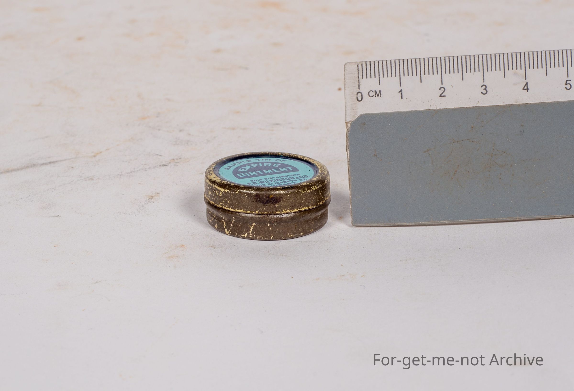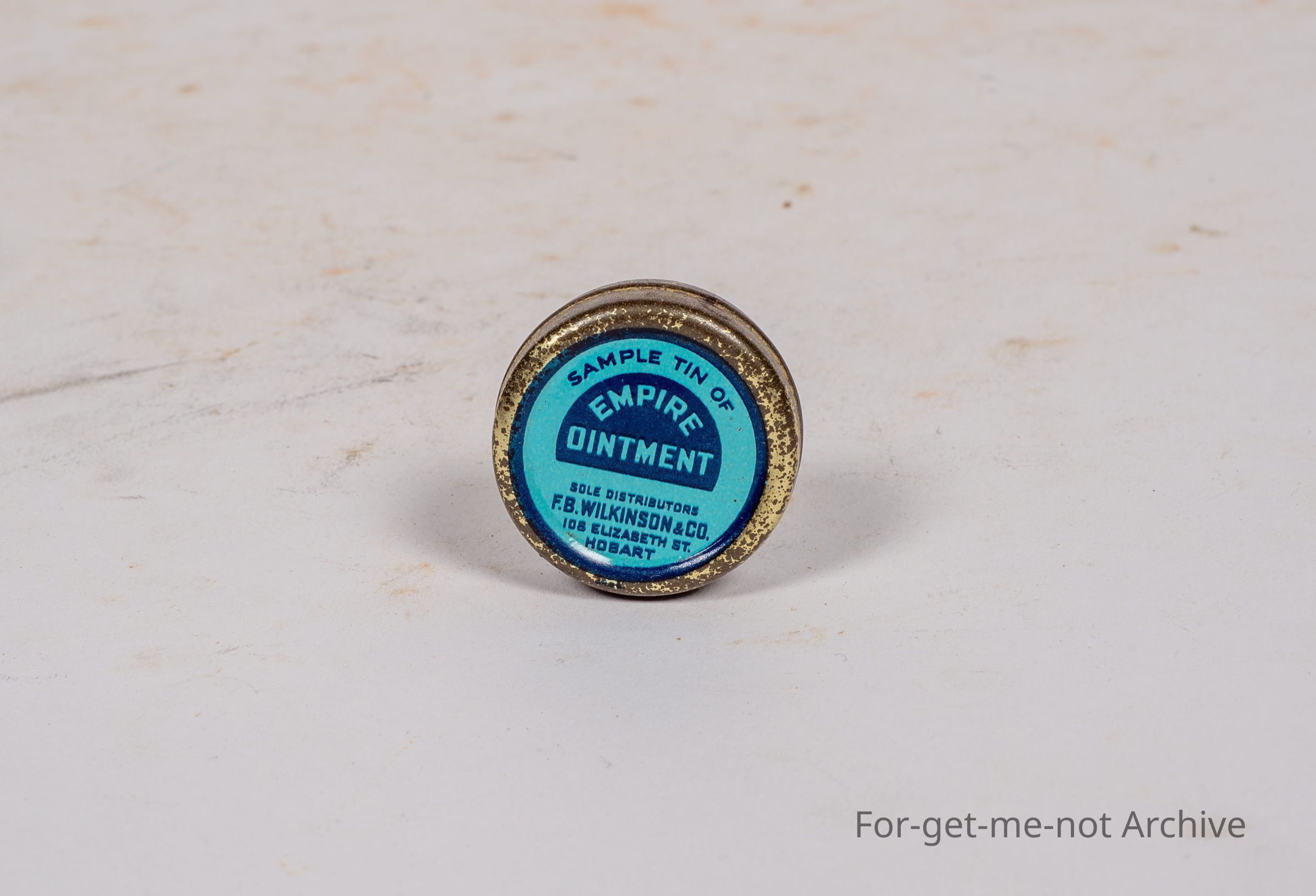 Very small sample tin of Empire Ointment, Sole distributor, FB Wilkinson Elizabeth Street, Hobart. In beautiful order, probably a rare tin.