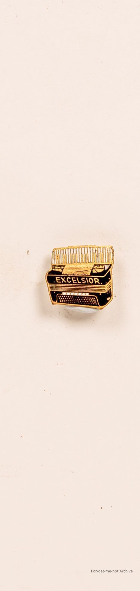 Enamel badge, Excelsior , image of a of a piano accordion .