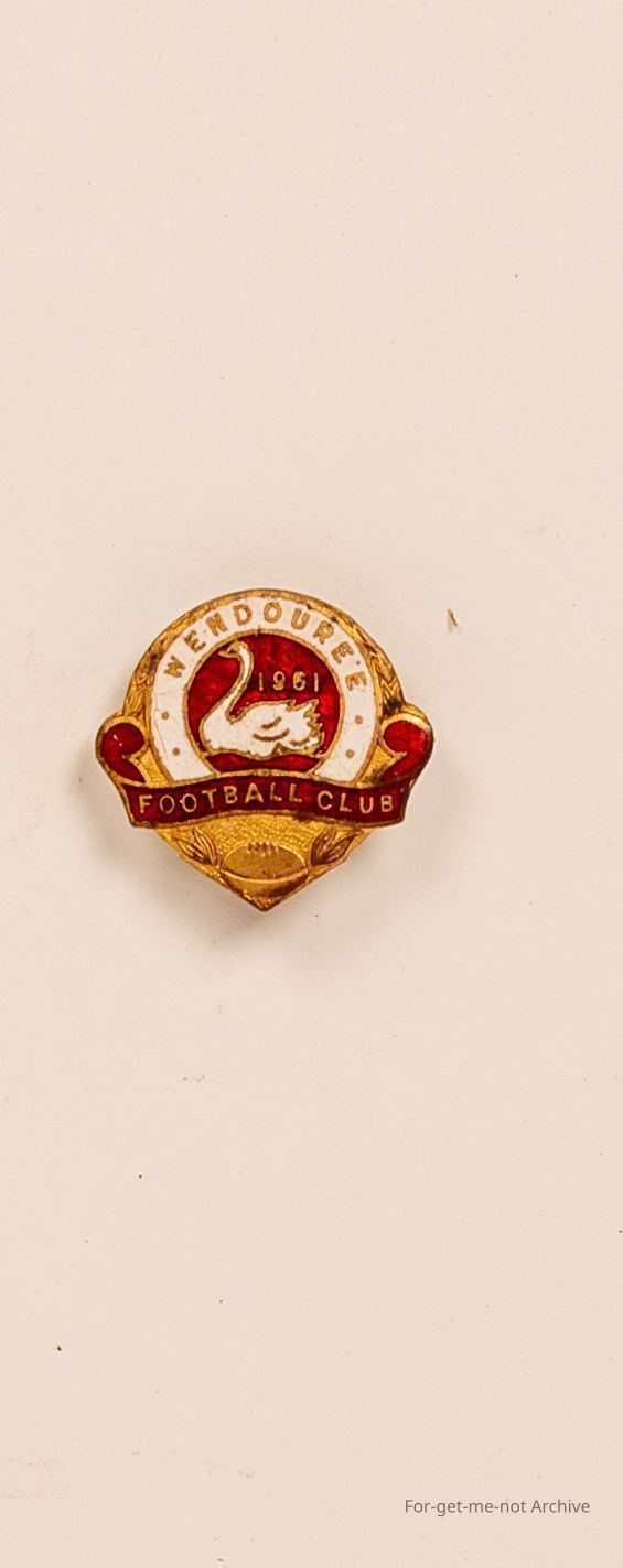 Enamel Badge, Wendouree Football Club, 1961, with an image of a white swan.