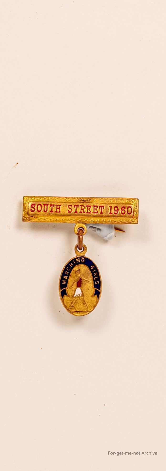 Enamel badge, South Street 1960 with Marching club hanging from Bar