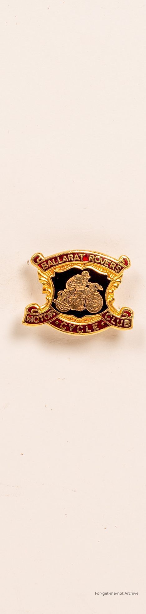 Enamel badge from Ballarat Rovers Motor Cycle Club. Image of fellow riding motorbike.