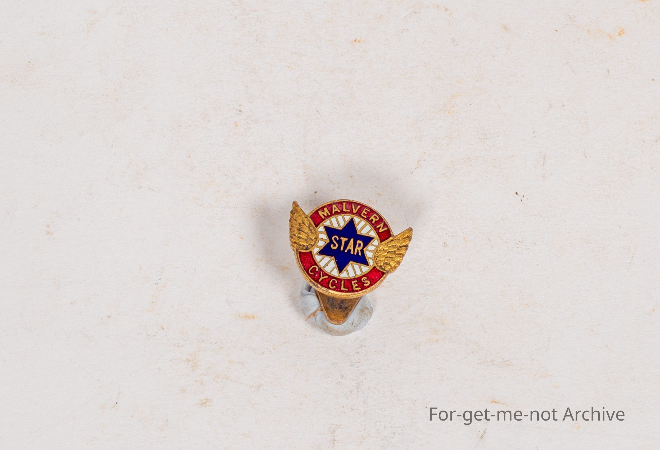 Enamel pushbike badge. Malvern Star size cycles, the image of a bicycle wheel with a star in the centre with wings. This is a very early, badge from Malvern Star in wonderful condition.Collection