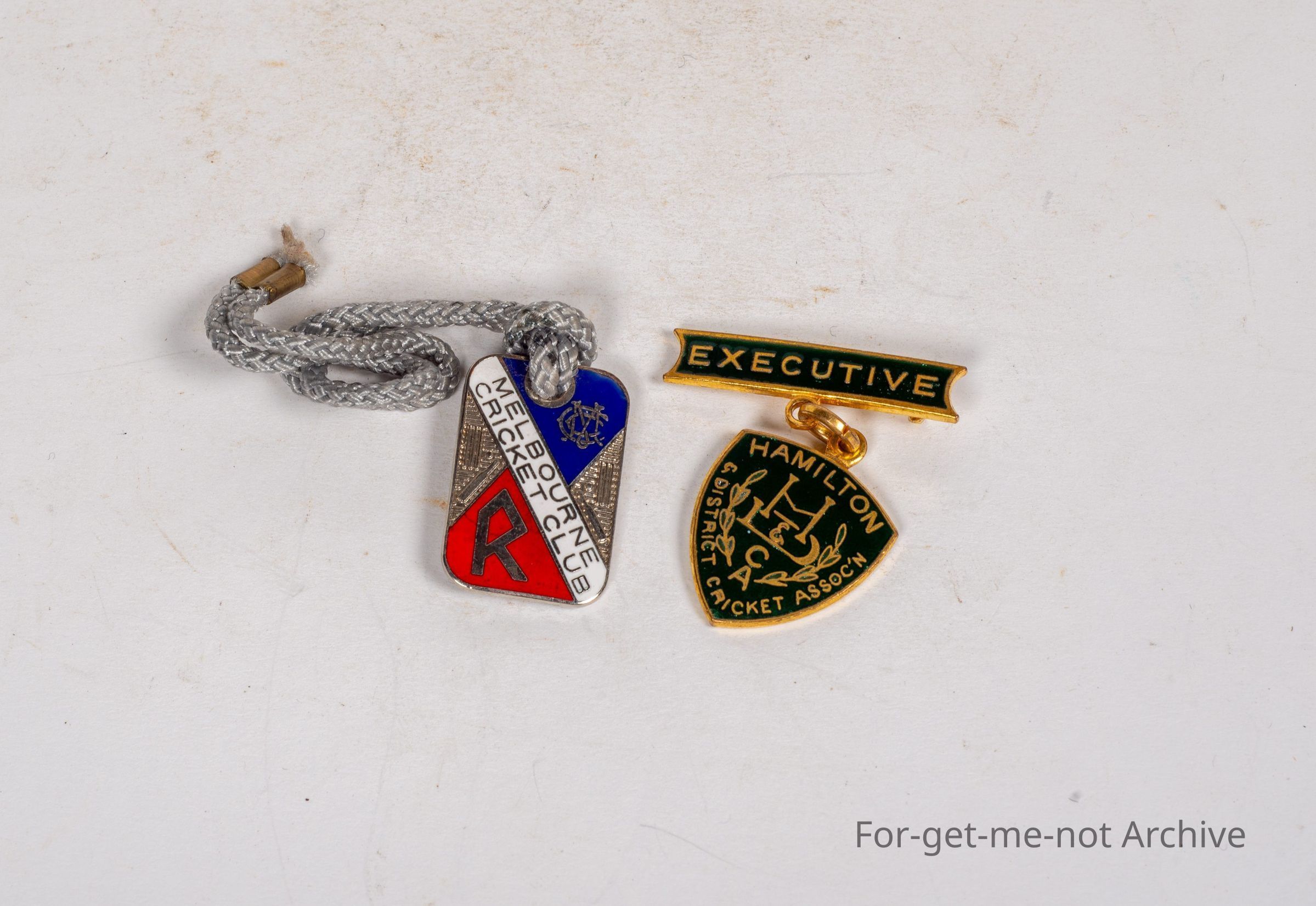 Cricket related. These are 2 badges, the pair. , one is from the Hamilton and District Cricket Association Executive. The other one is Melbourne Cricket Club, members, enamel badge.