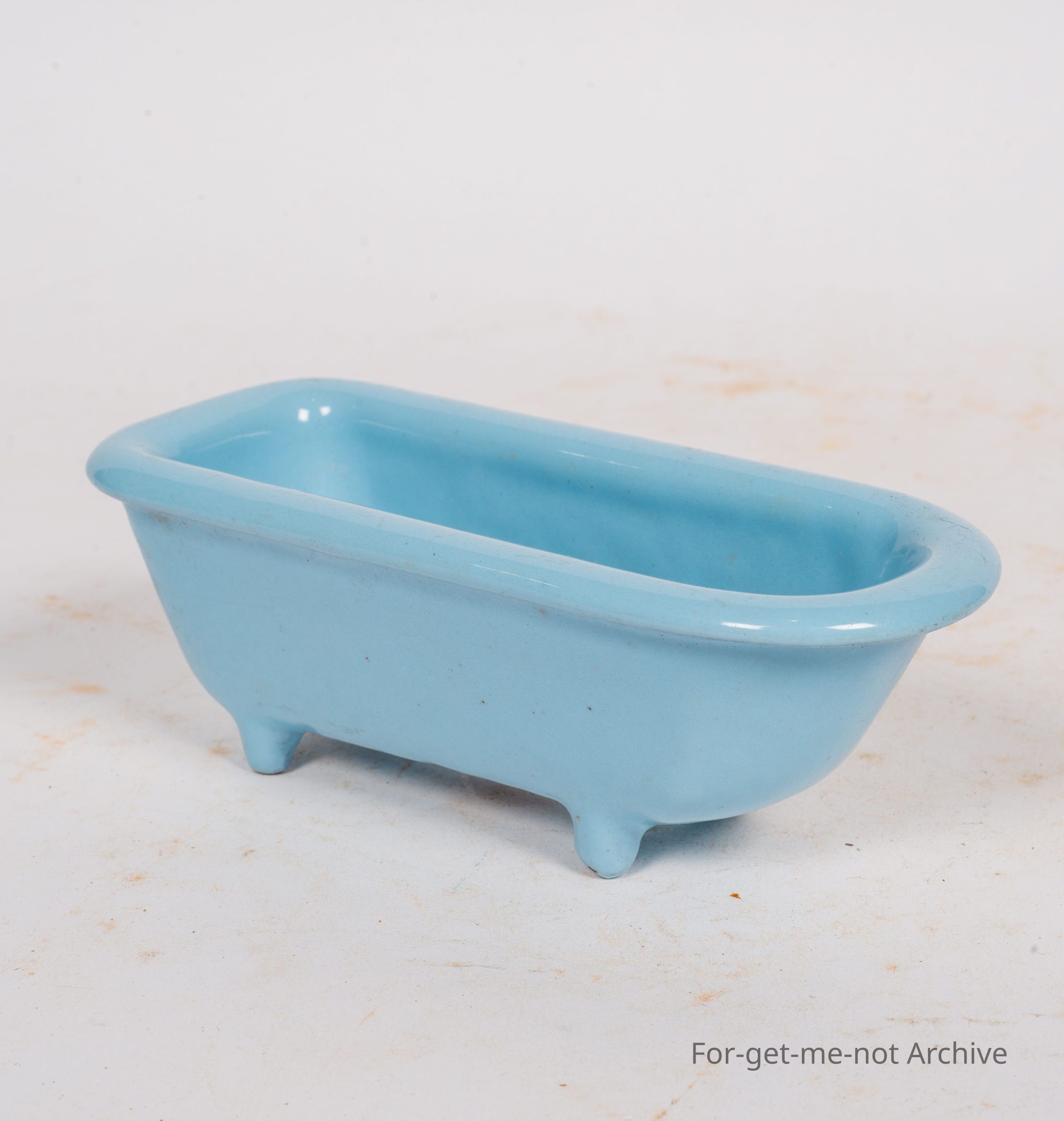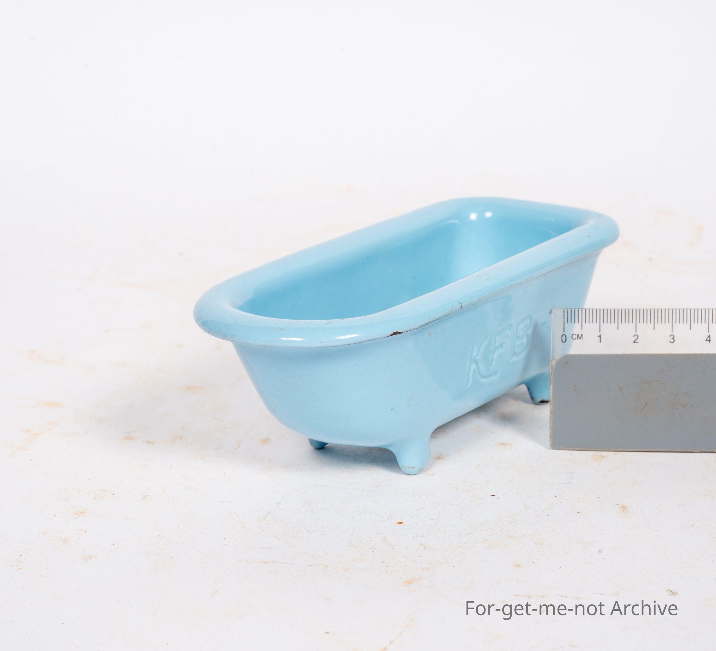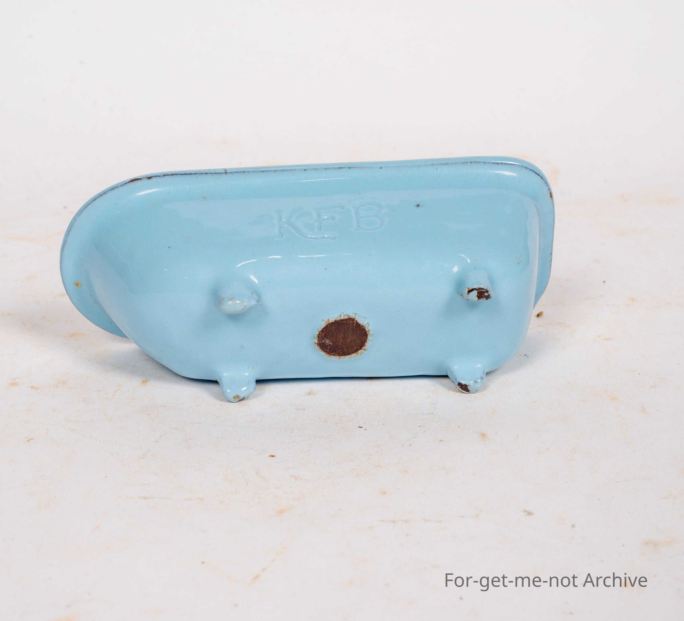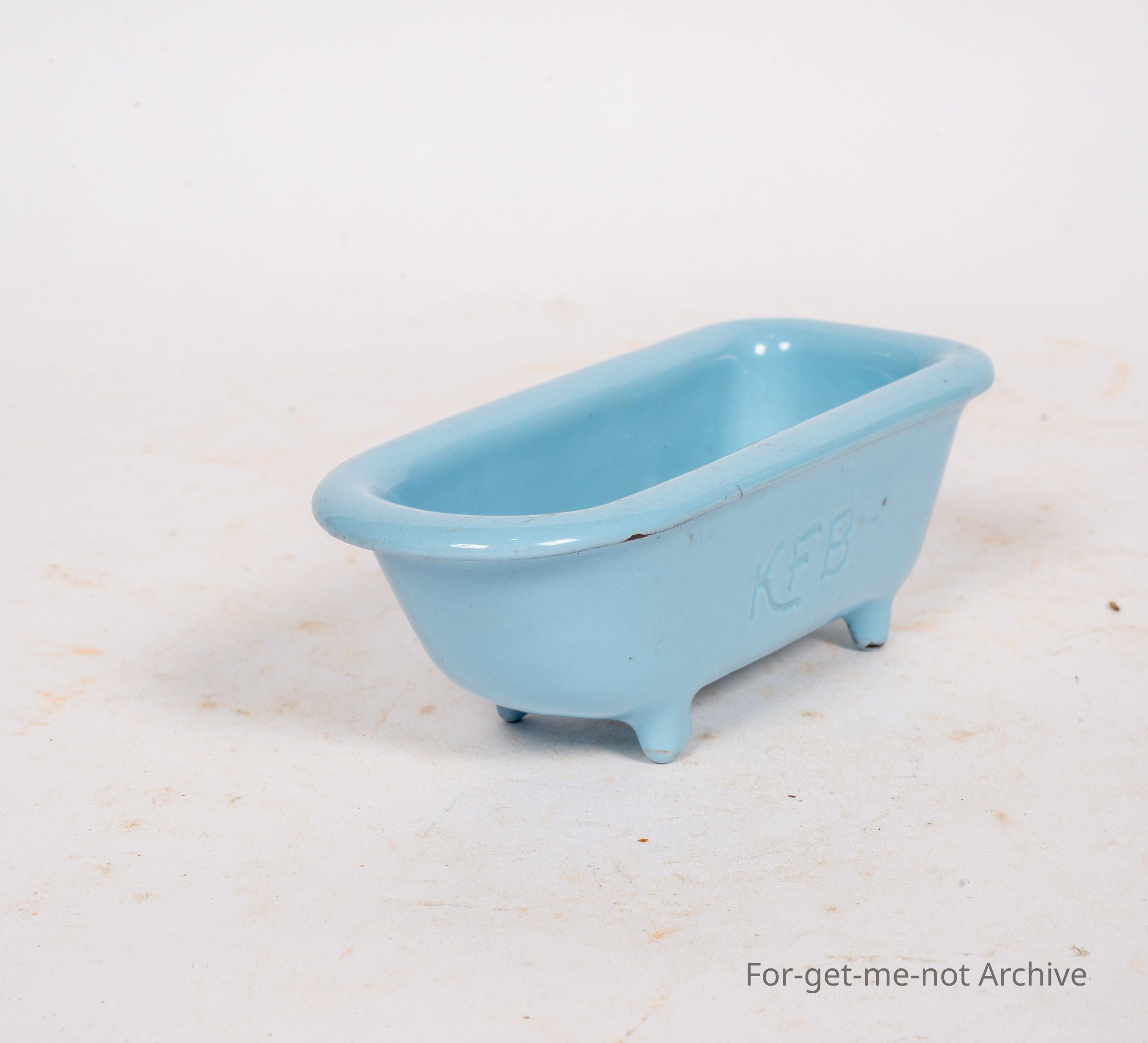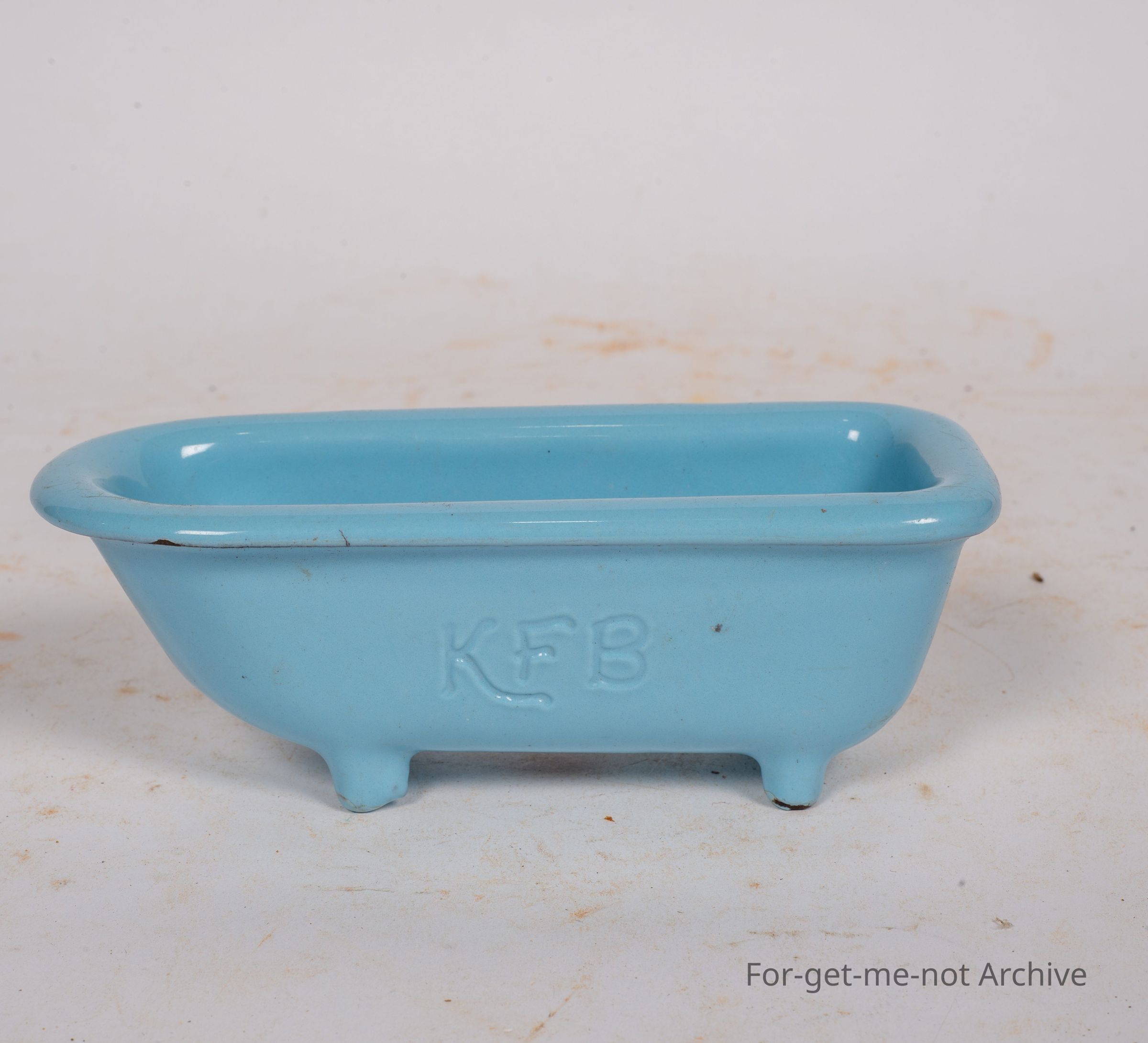 Salesman sample of another enamel bath in cast iron with kfb in the casting. This is a beautiful white blue enamel, in very good shape.
