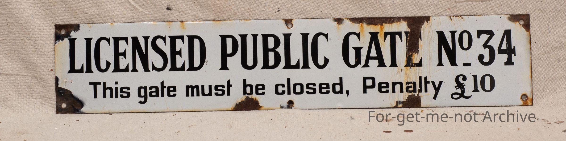 Advertising Licence Gate, public gate number 34, this gate must be closed, penalty 10 pounds. These gates were on the public stock routes in NSW