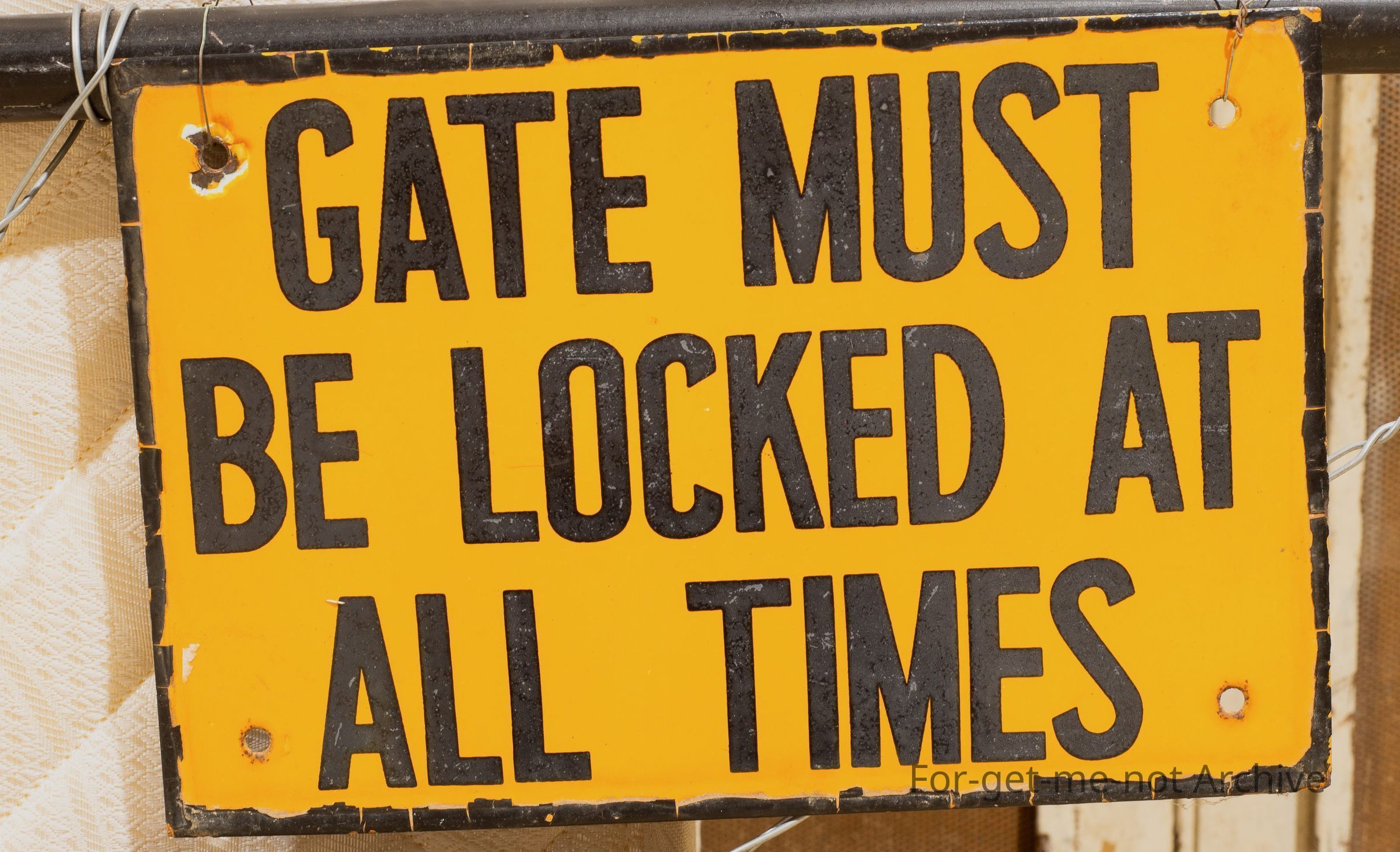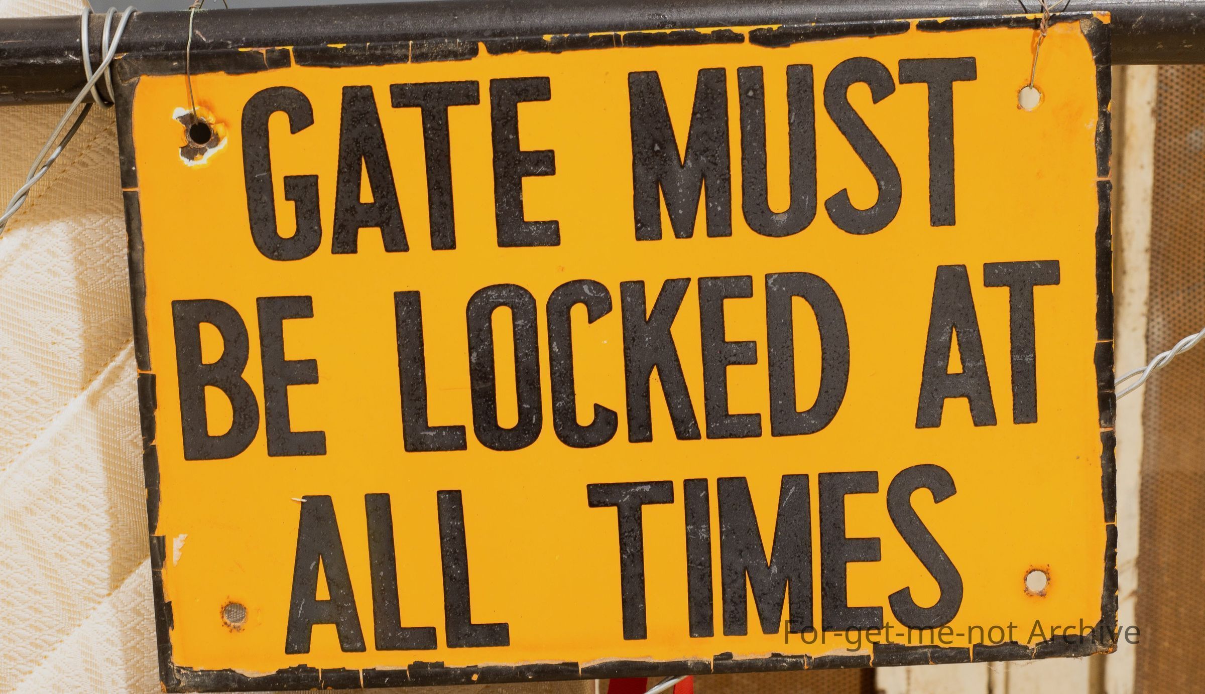 enamel sign. Gate must be locked at all times