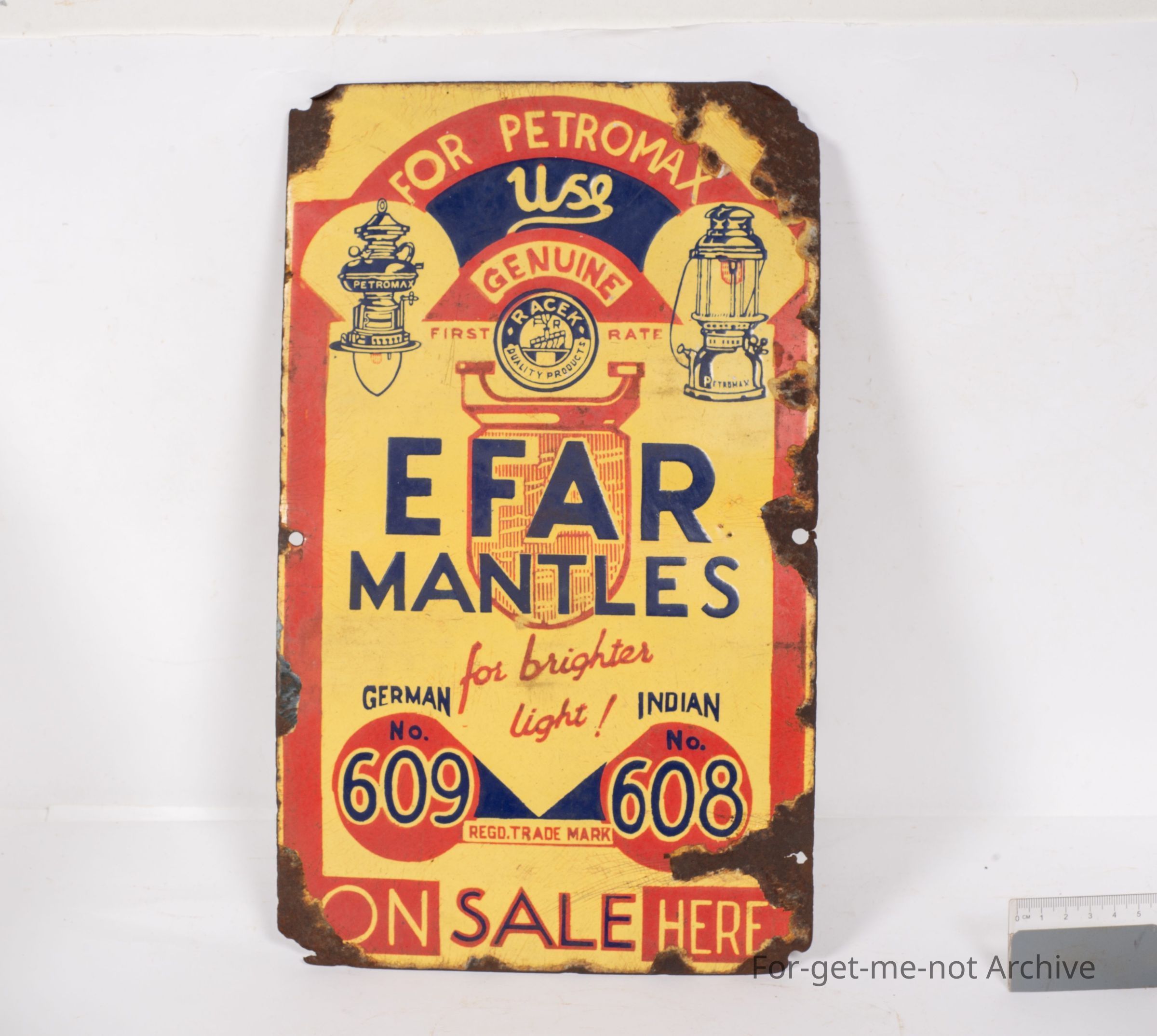 Sangeet Collection. This is an enamel sign, an old one, advertising E F A R Mantles, on sale here. This is, it says India and Germany. Quite a pictorial sign genuine conditionCollection