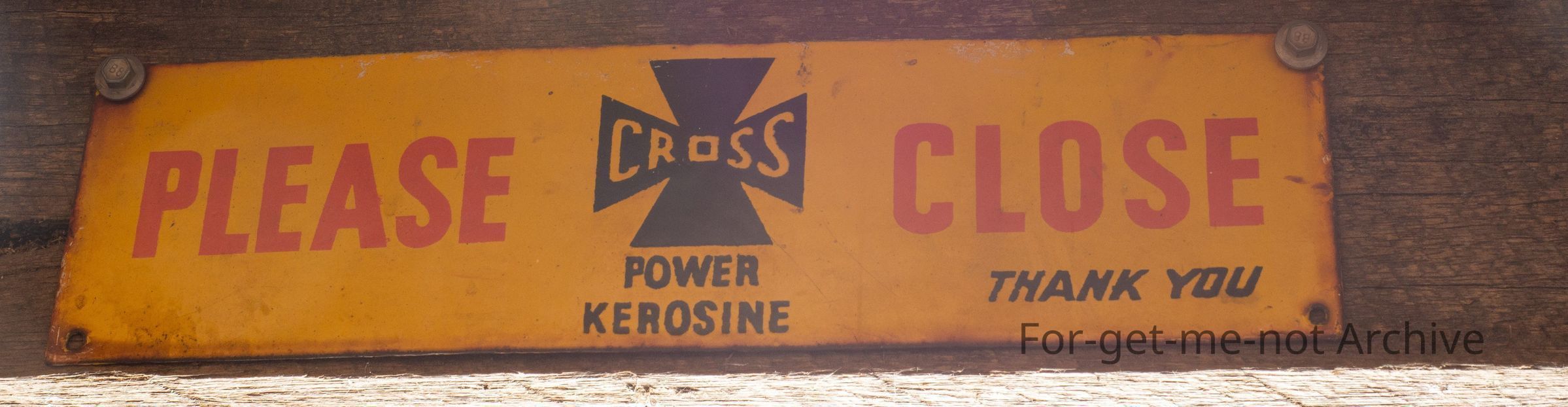 This is a small please shut the gate sign from Cross Power Kerosene. Very good order. Quite a hard one to find