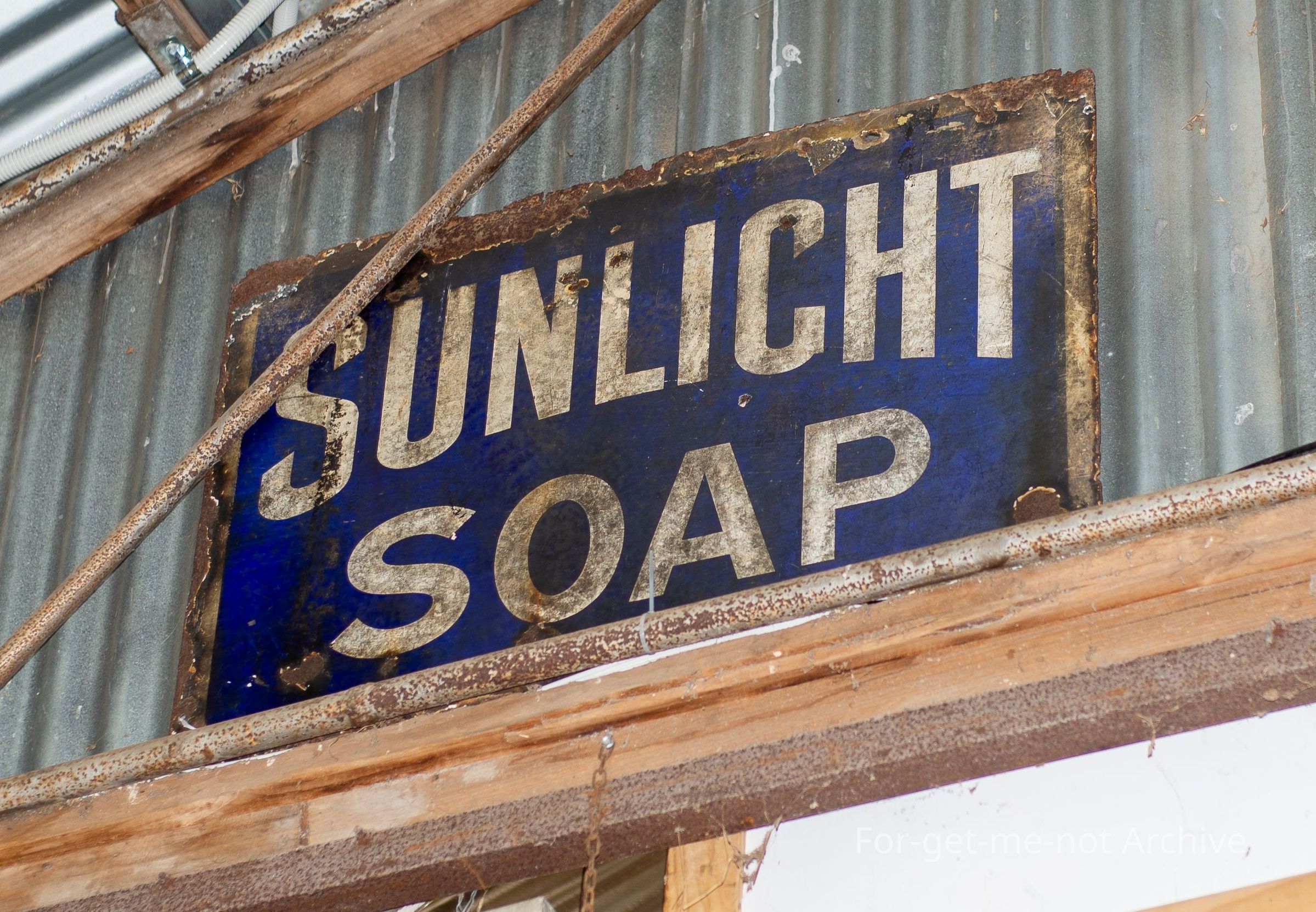 Sunlight soap enamel sign old with exterior damage but good face single side