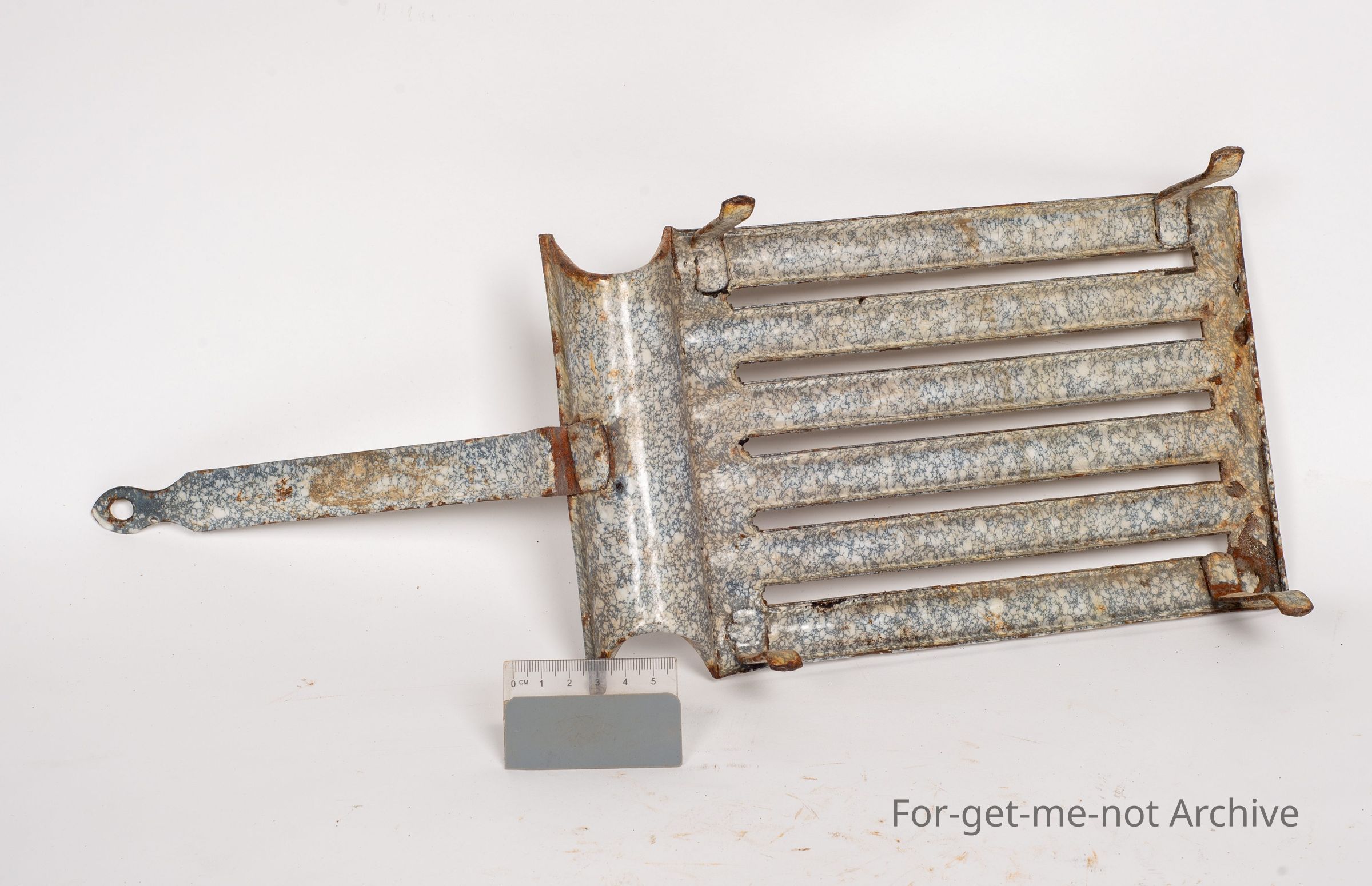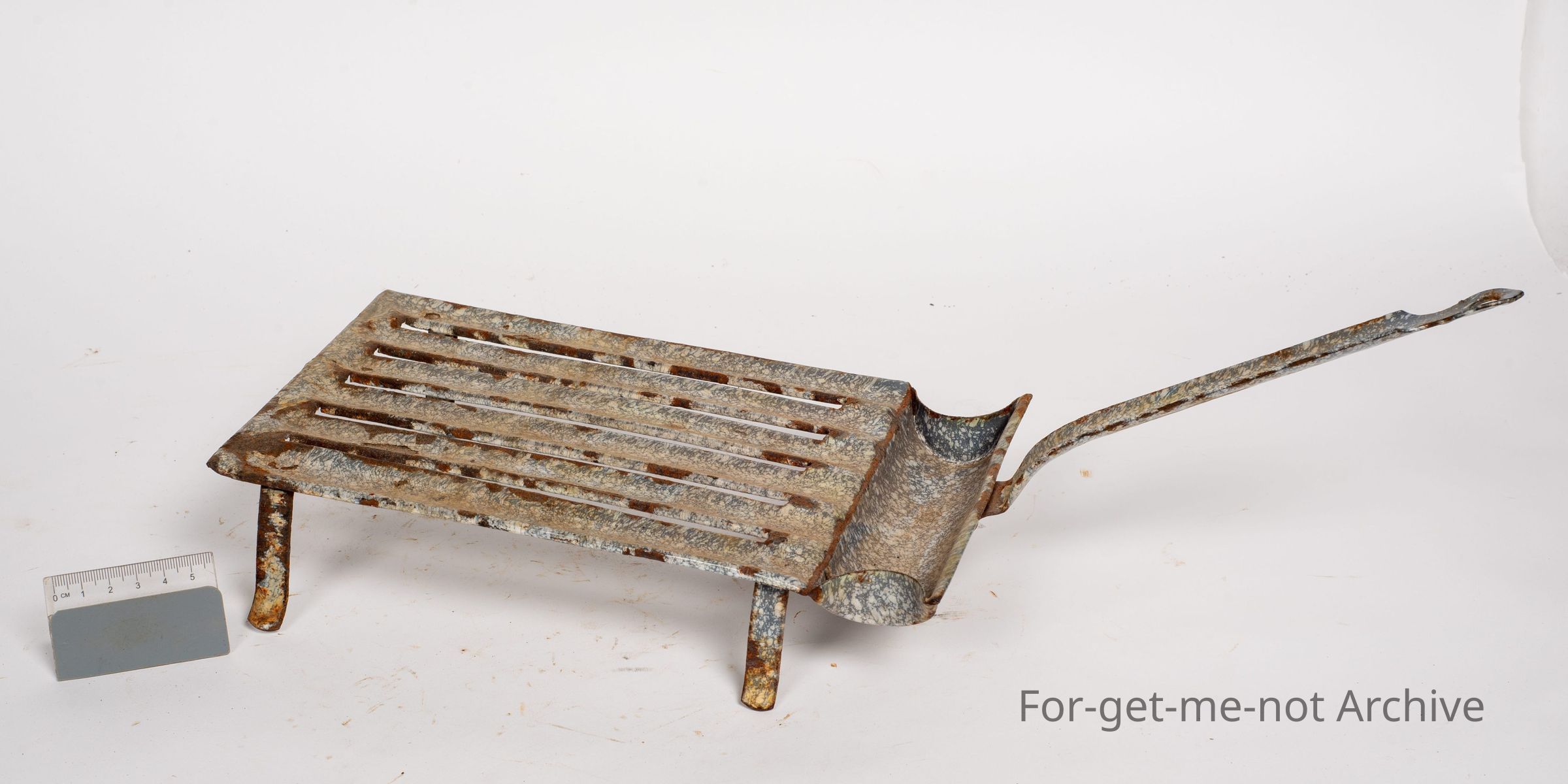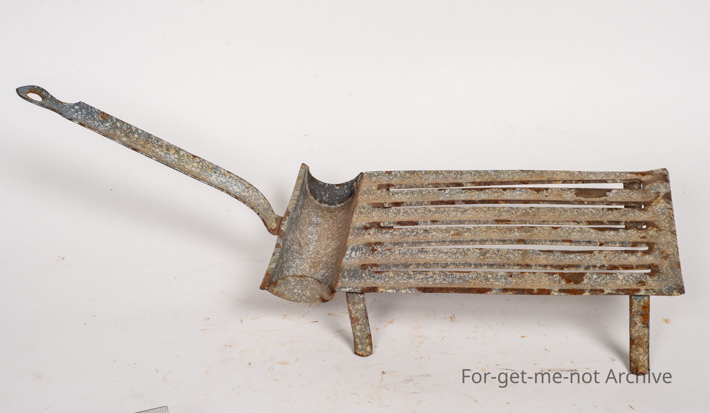 This is another gridiron. This one is enamelled as well, but on a far smaller scale. Fluted, ribs on the top with the fat catcher on the back. A lovely little example of an early piece.Collection