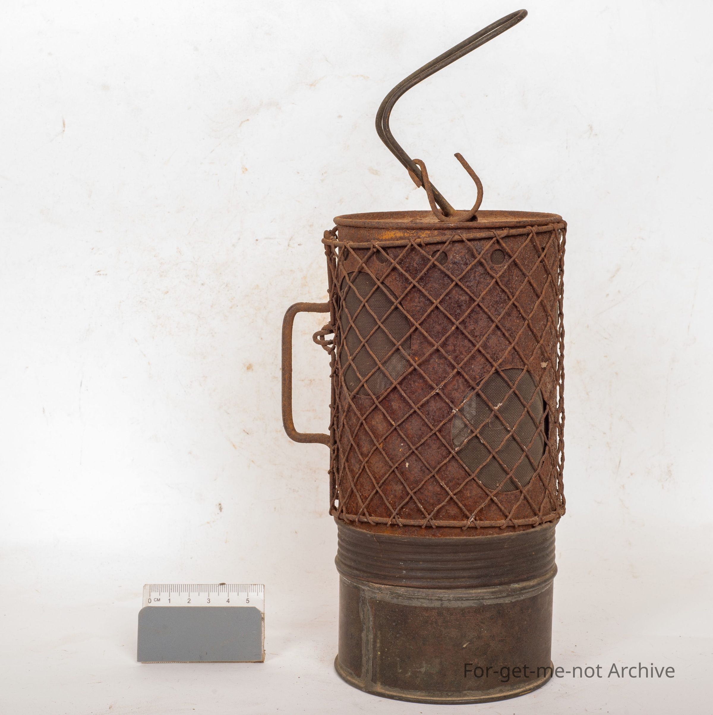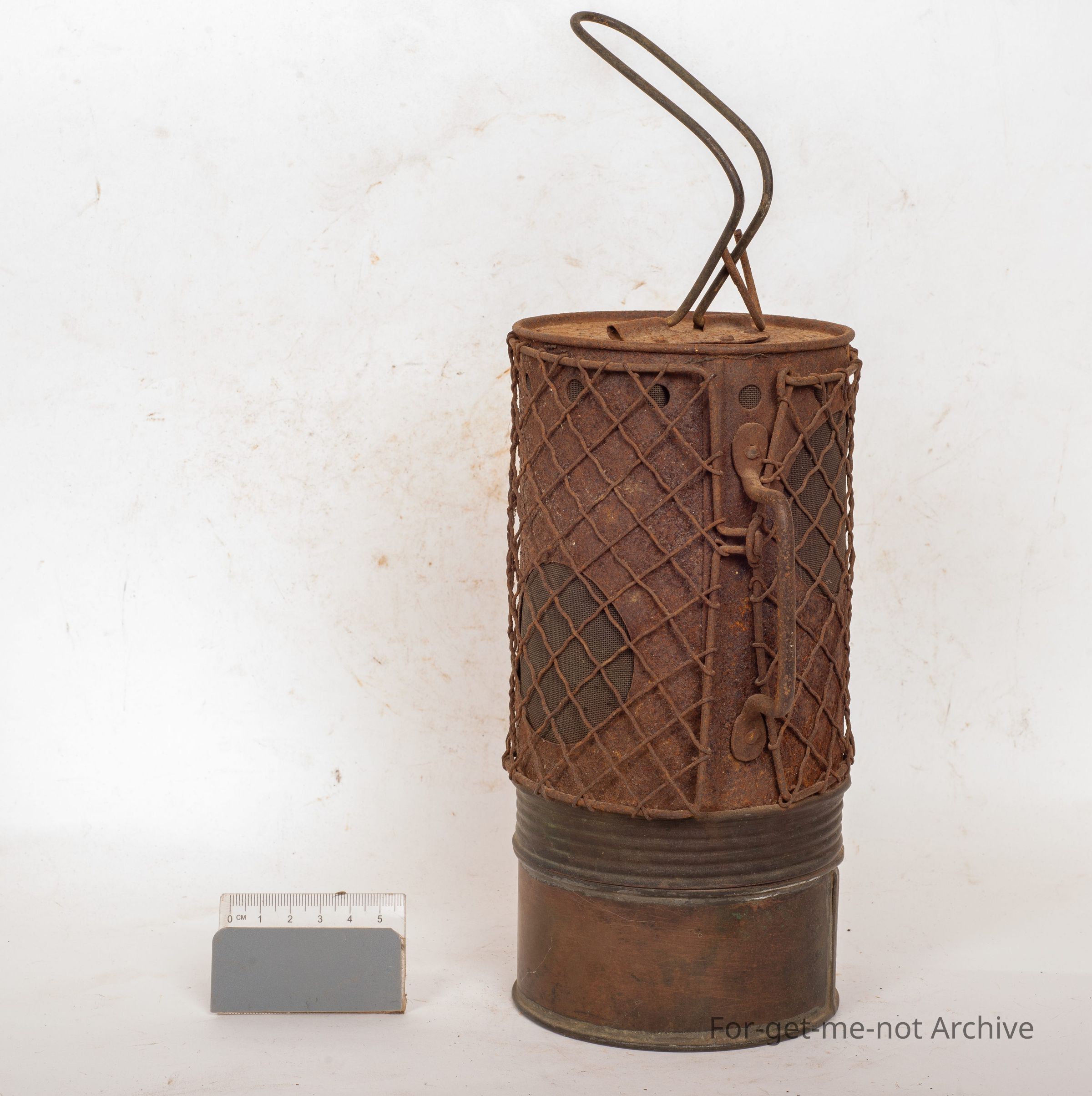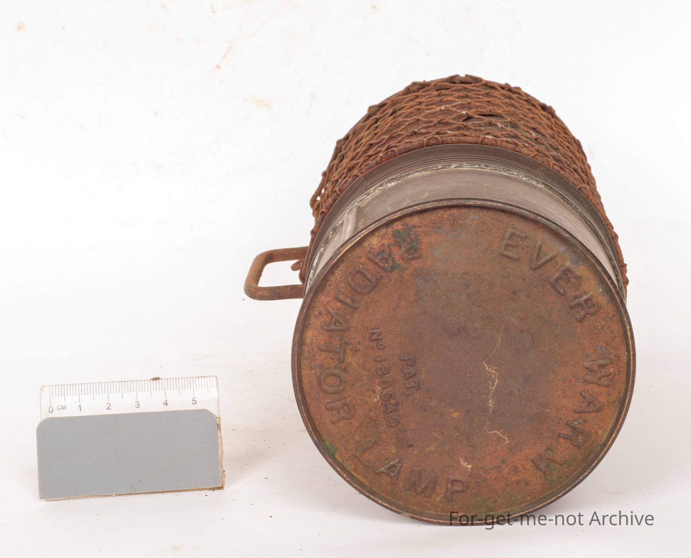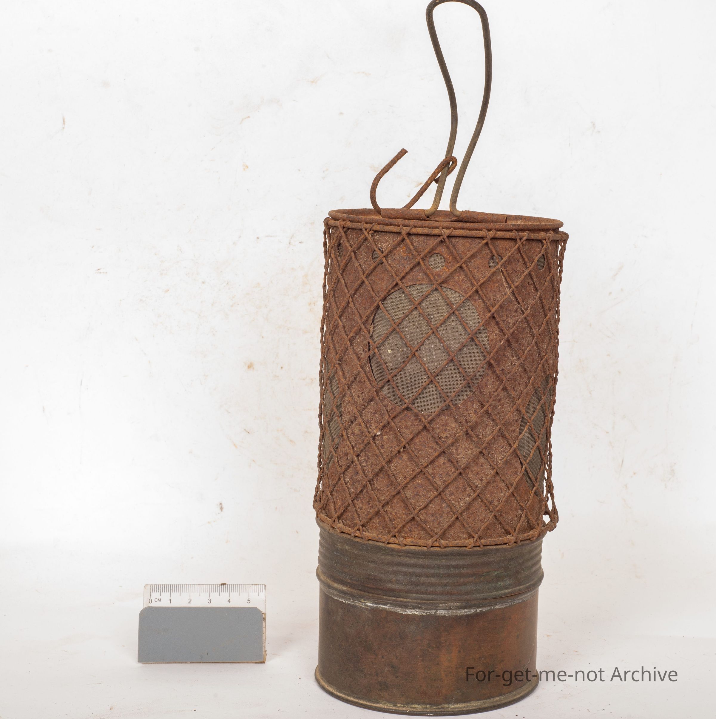 This is this is called the Everworm radiator lamp. These are from the days of early motor vehicles. They were hung under the front end, under the radiator, or the block of the engine to prevent freezing the block, and therefore, cracking it in heavy frost. Got a heavy mesh gauze around it to prevent it getting damaged. Huge fuel tank on the bottom so that they would burn for 12 hours. Very rarely seen. Quite a valuable thing.Collection