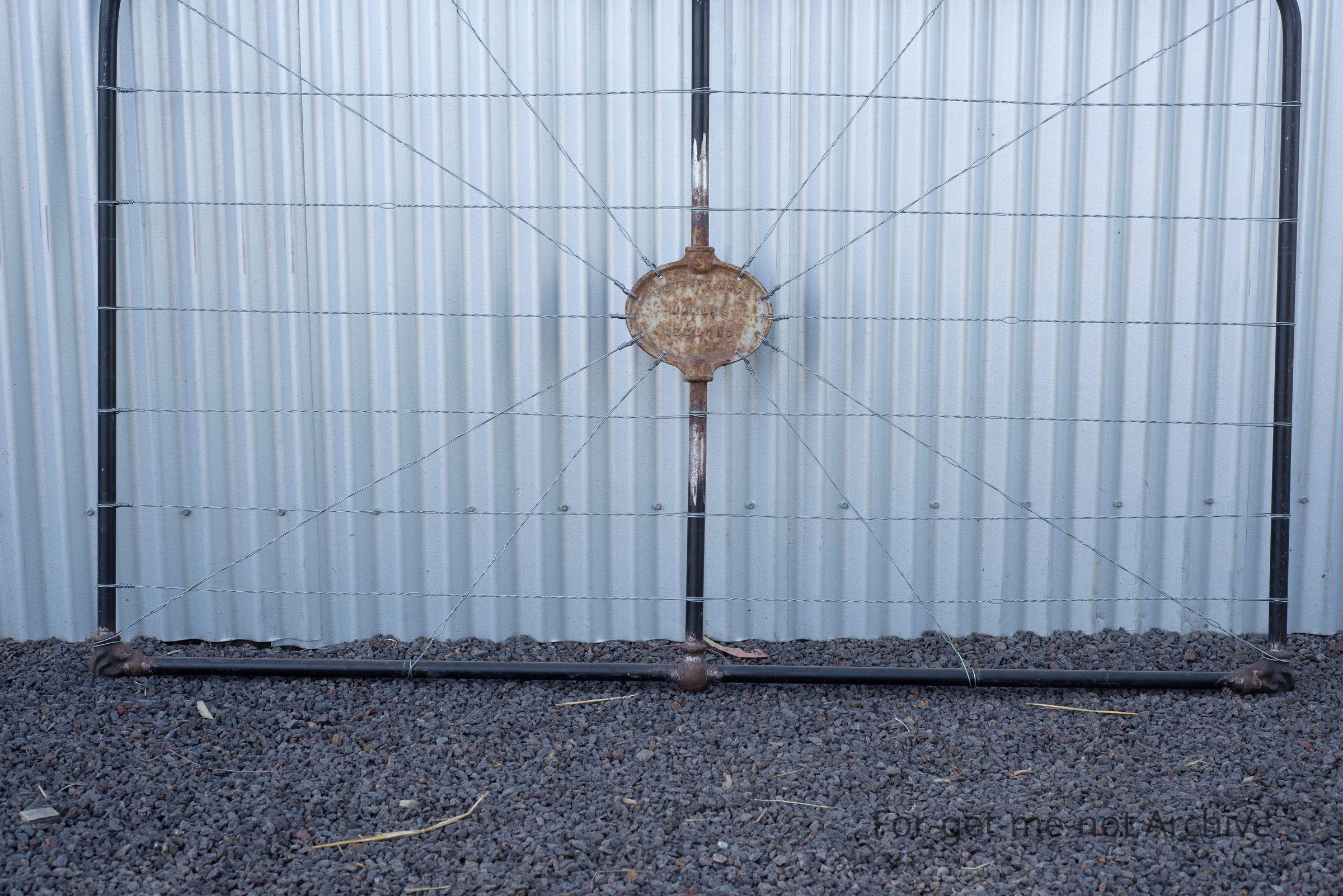 Farmgate. Cast iron fittings all around, restored by Gary Morgan, Ross Creek. Very unusal gate to find.