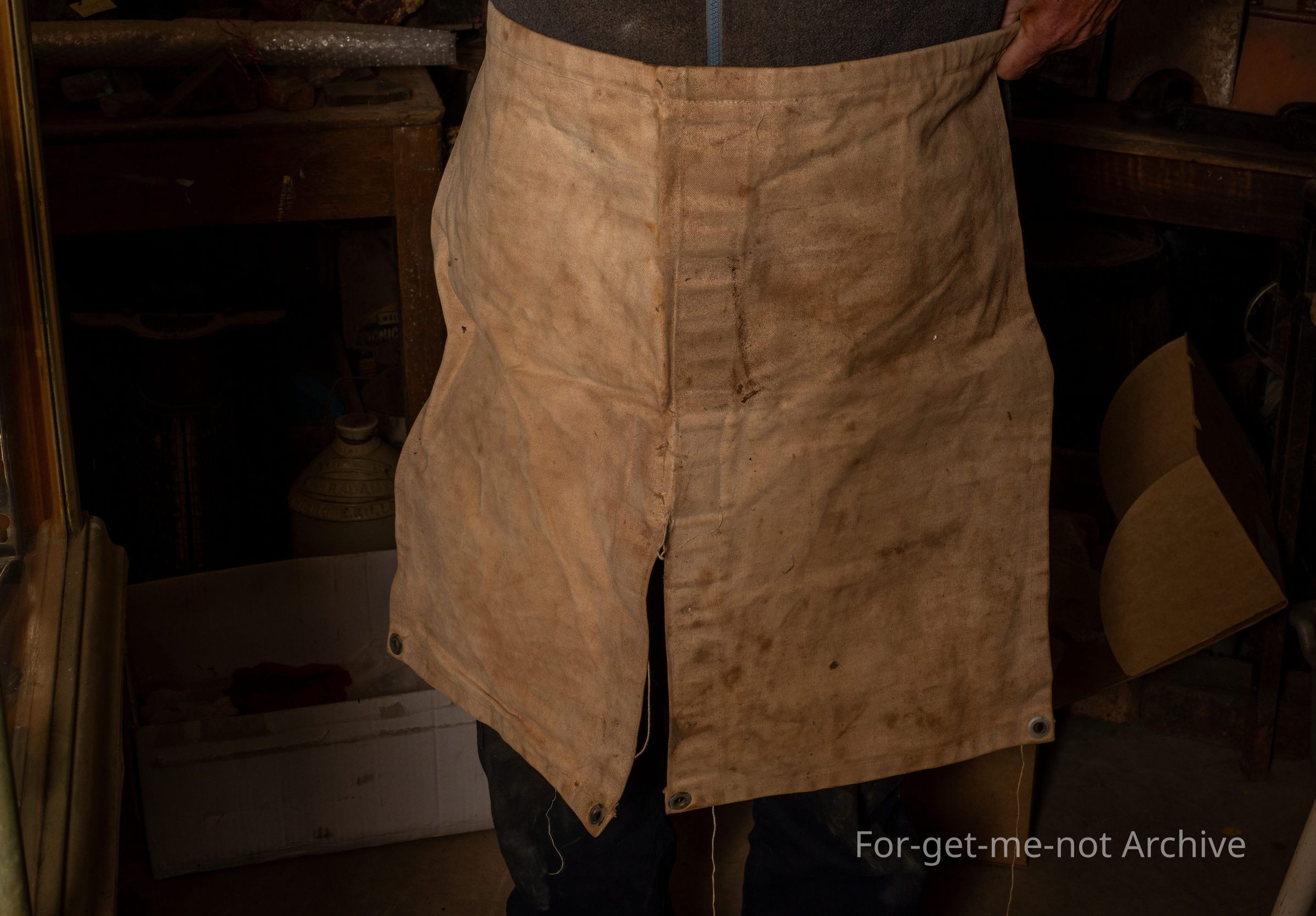This is a pair of Farriers chaps, used for shoeing horses made out of heavy canvas, with a strapping around the waist and the capacity to tie them behind the knee as well. Unusual pieces from days gone byCollection