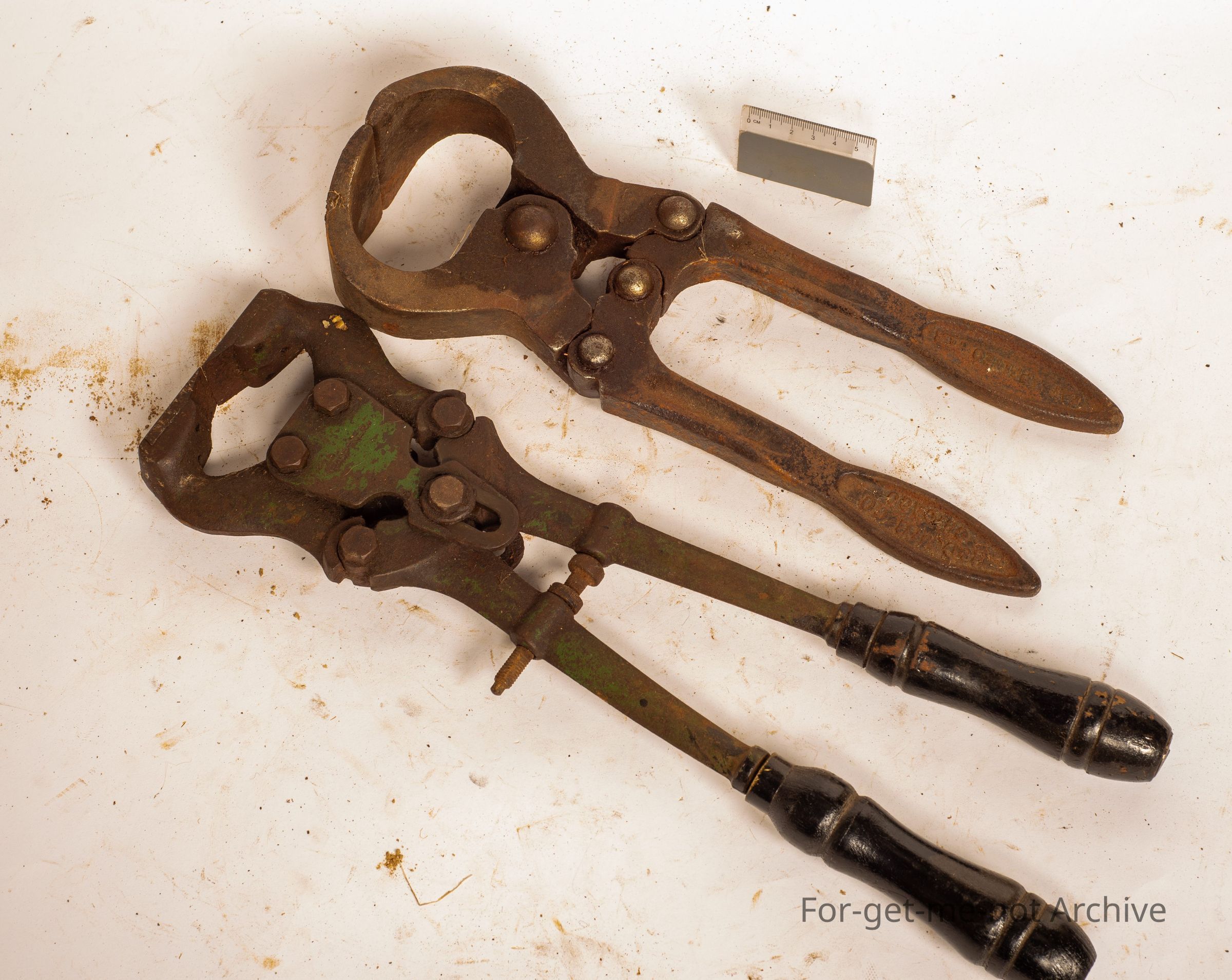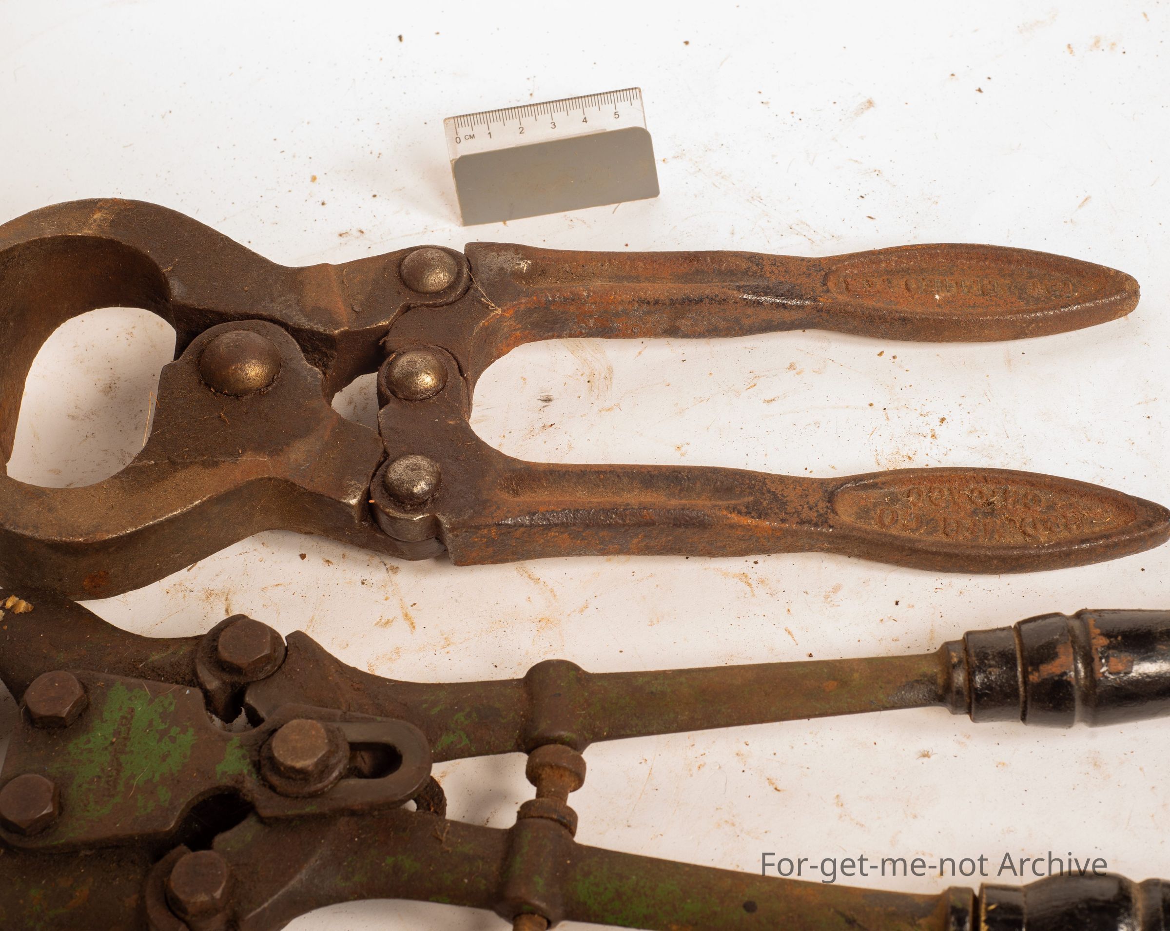 1 is a Farriers Hoof Trimmer for horses. The other one is a large pair of Basidos for, the sterilizing of large animals like horses or cattle.