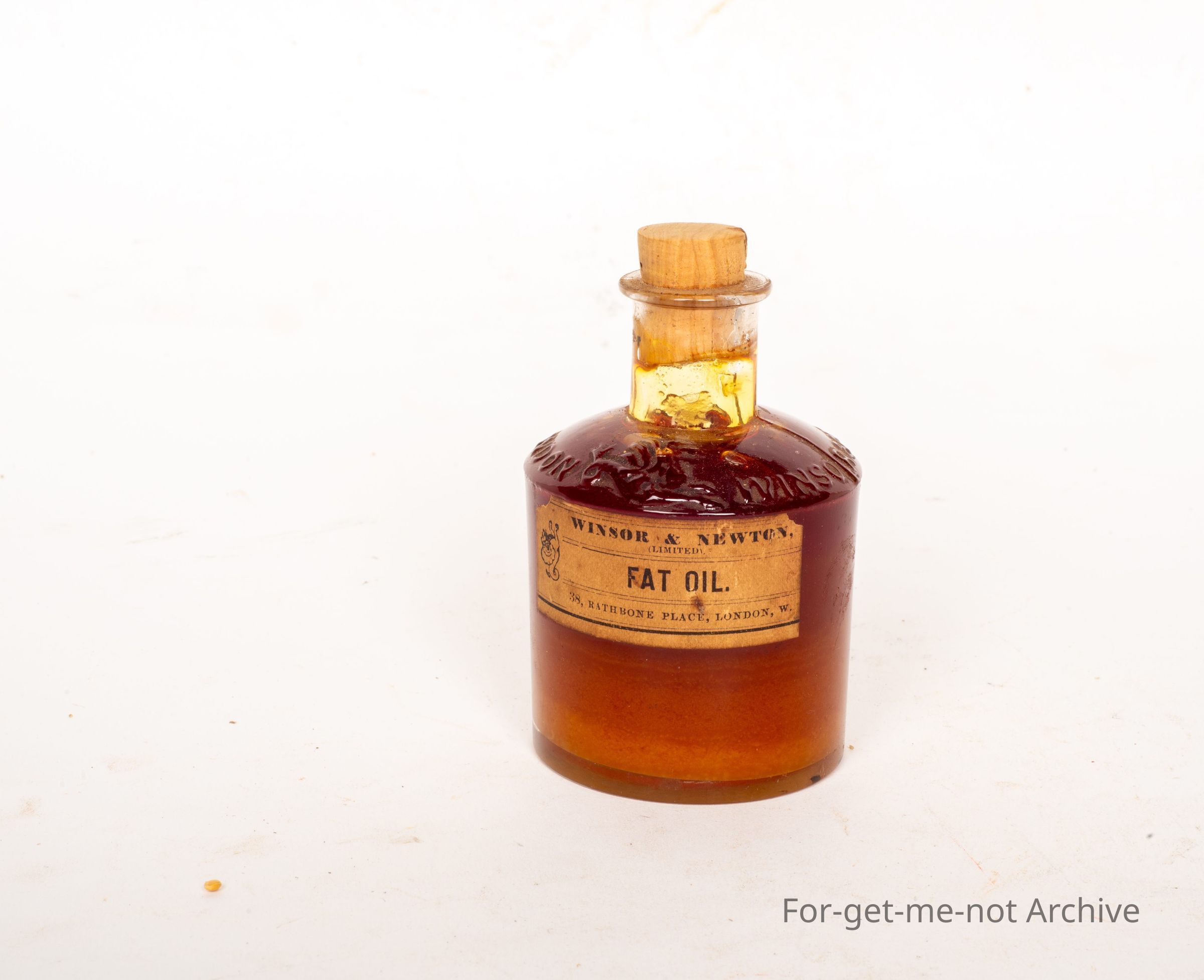A small bottle of fat oil made in London by Winsor and Newton Limited.