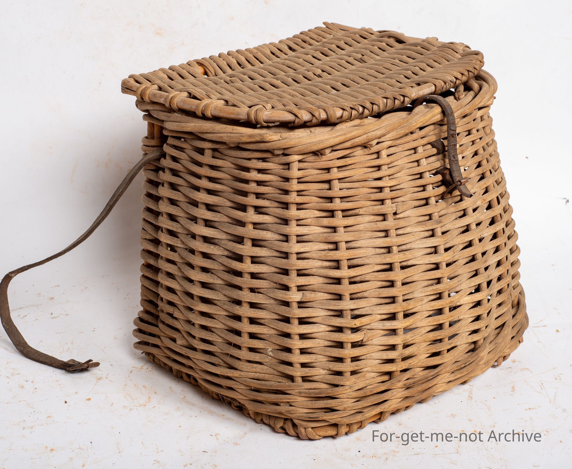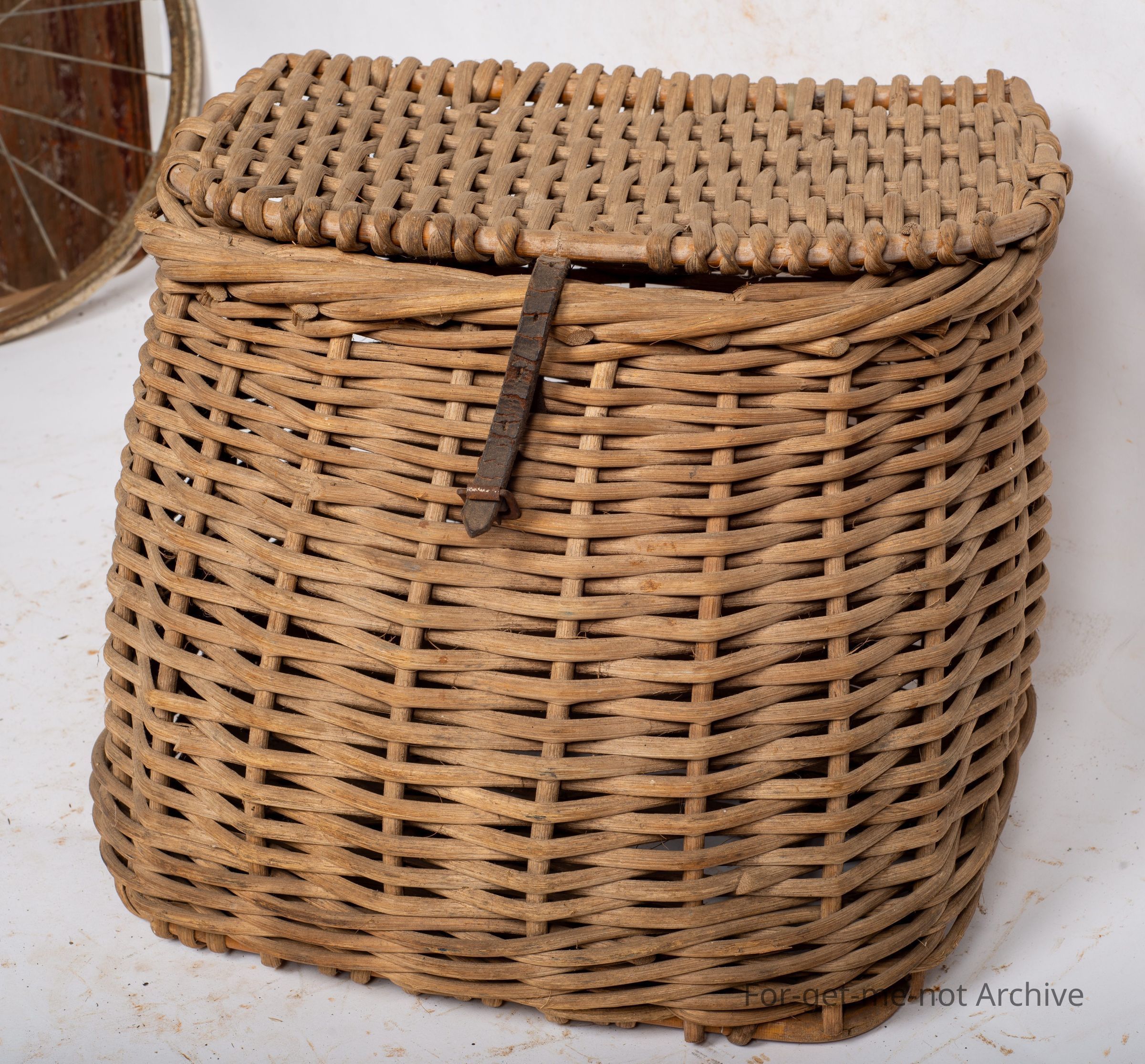This is a cane fisherman's basket. Probably once a very common item today, not so. This is a medium size one with the strap, the catch. A nice old piece