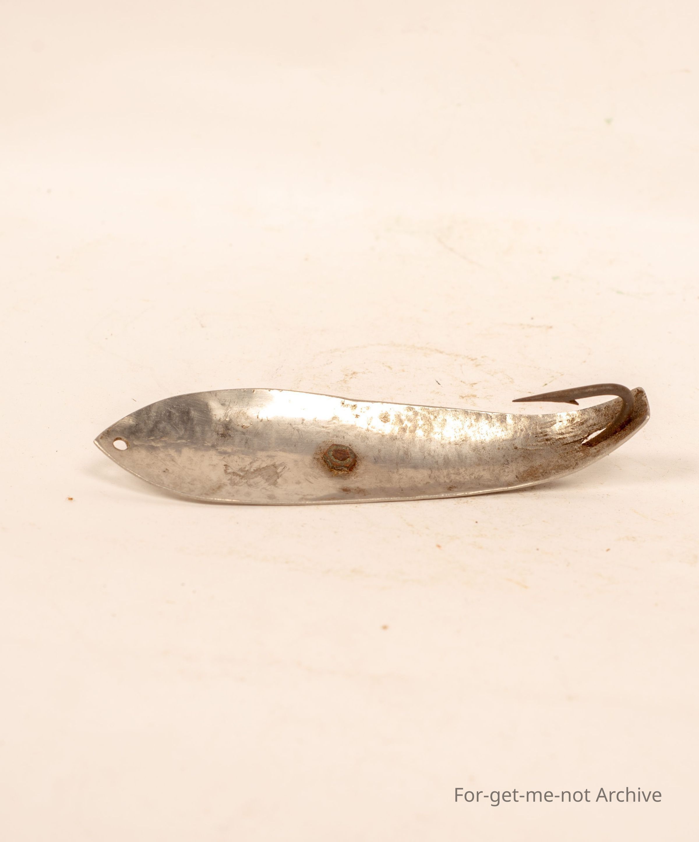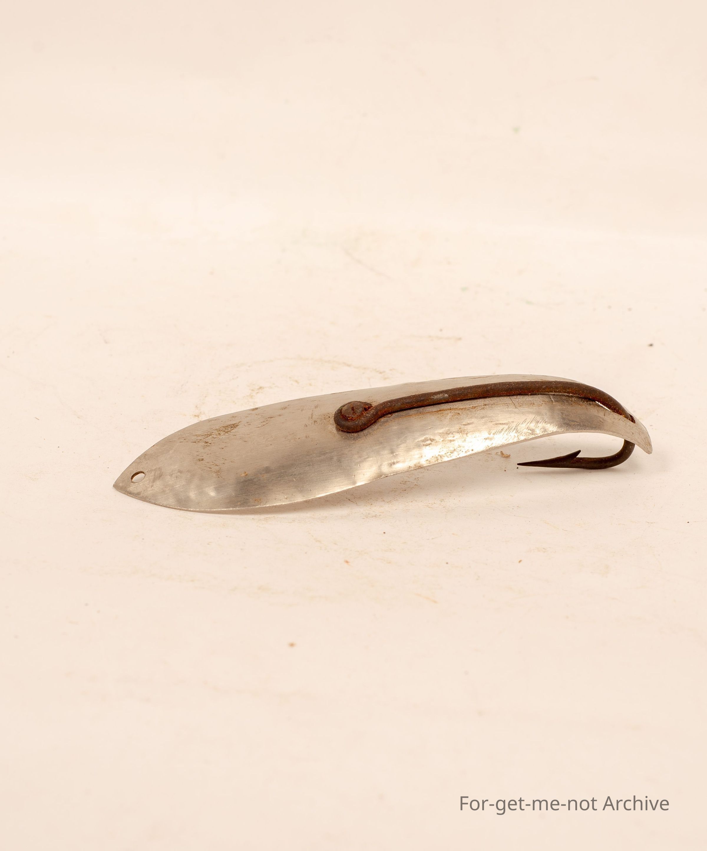 A fishing lure made of stainless steel, large hook, used in the sea for large fish, don't know what type,