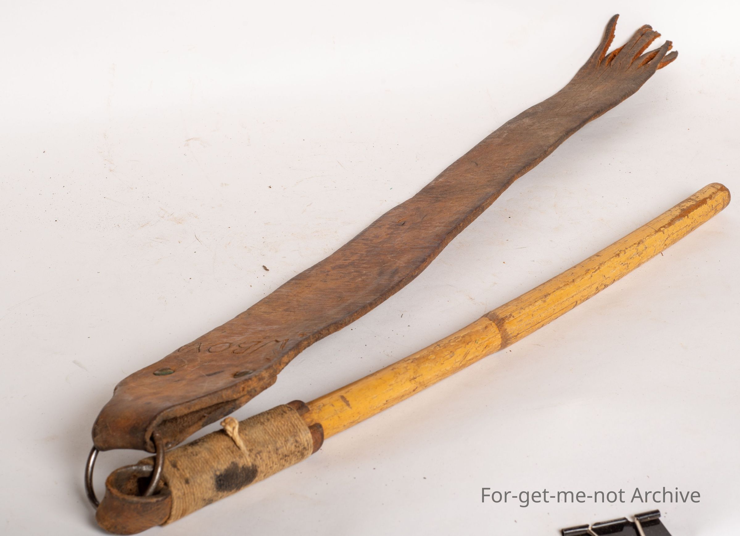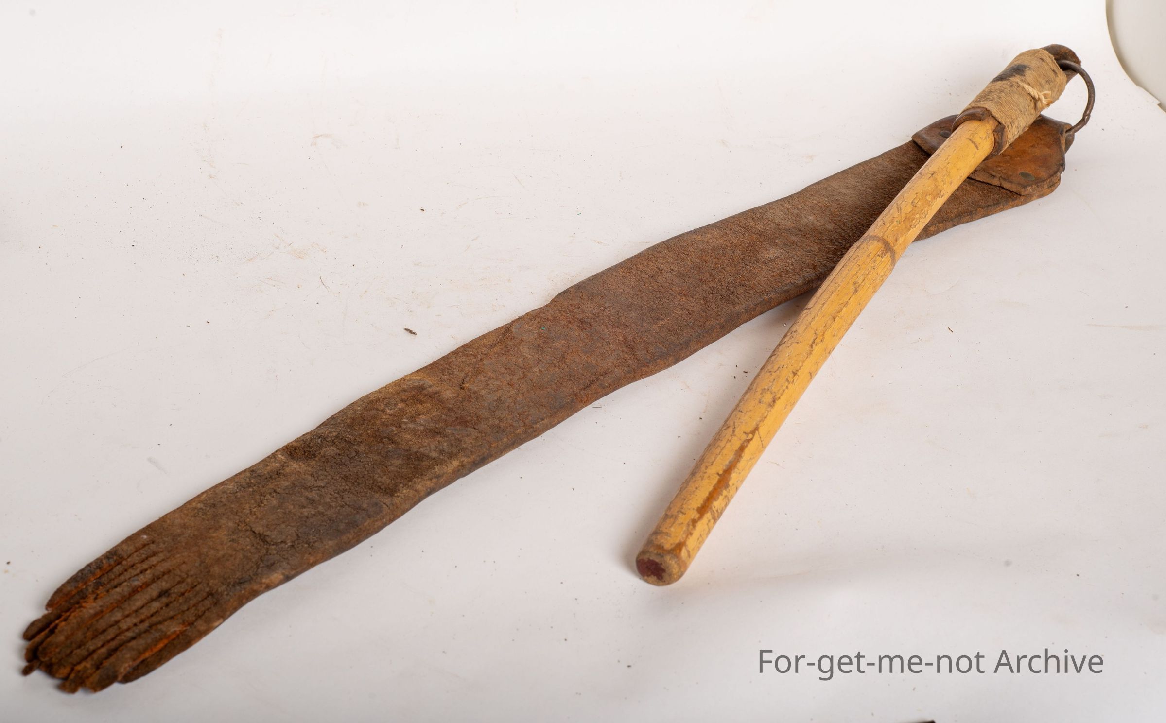 This is a leather flapper used by bullockies when harnessing the bullocks to get them to move, into position to get all their equipment on. This one is embossed with W Boxer. Perhaps the owner of the Bullock team in lovely condition. Quite a hard piece to find.Collection