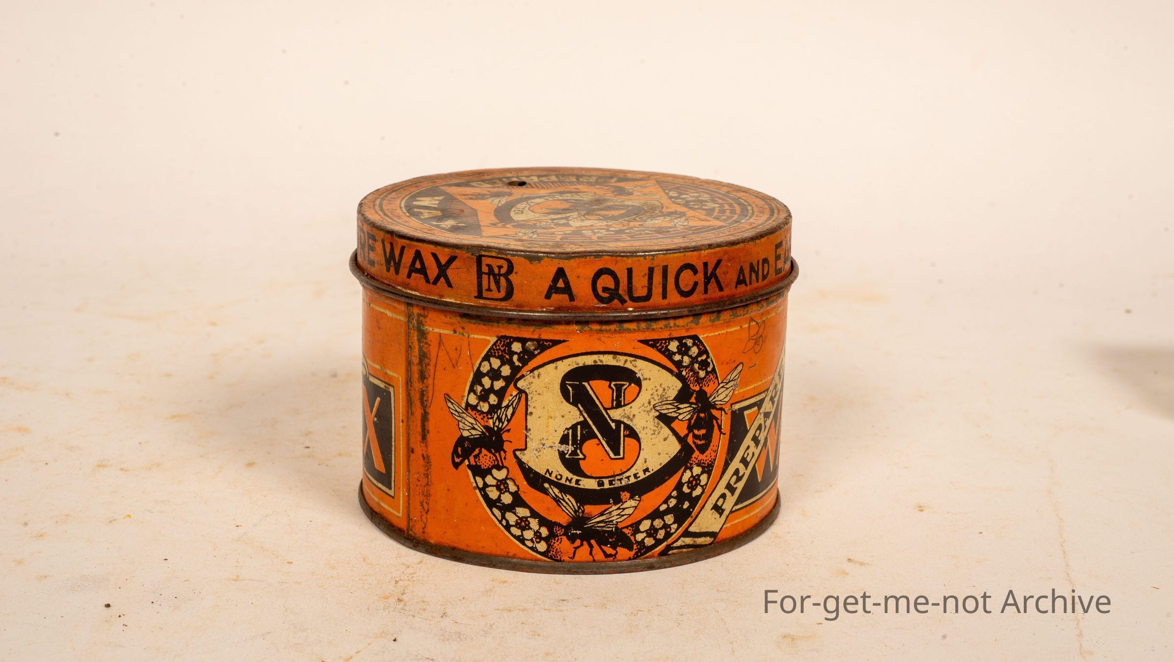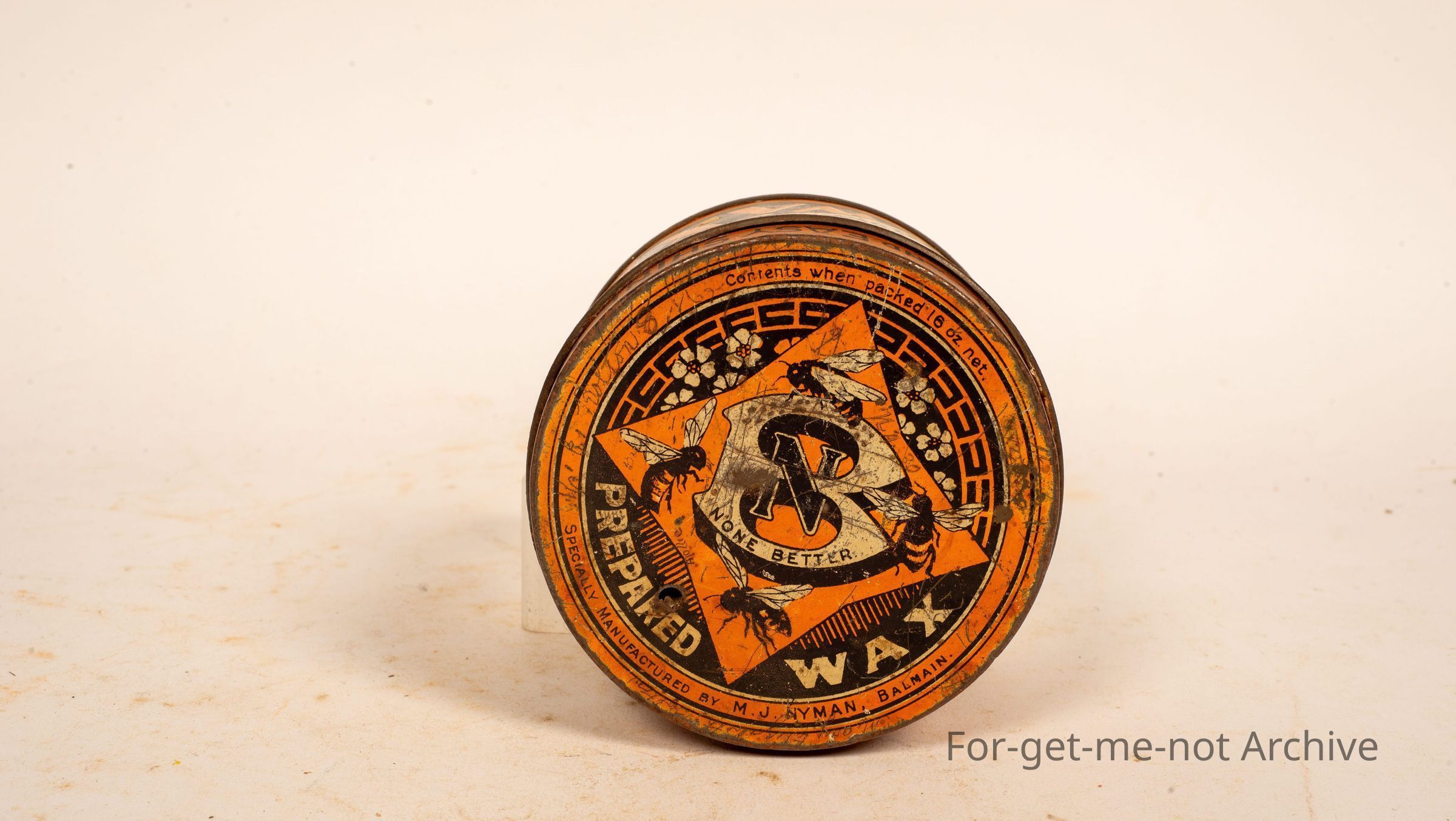 Another tin of floor wax. This one is called NB None Better. Plenty of interesting graphics, quick and easy shine, Manufactured by Hyman Almain, New South Wales, 16 ounces when packed.