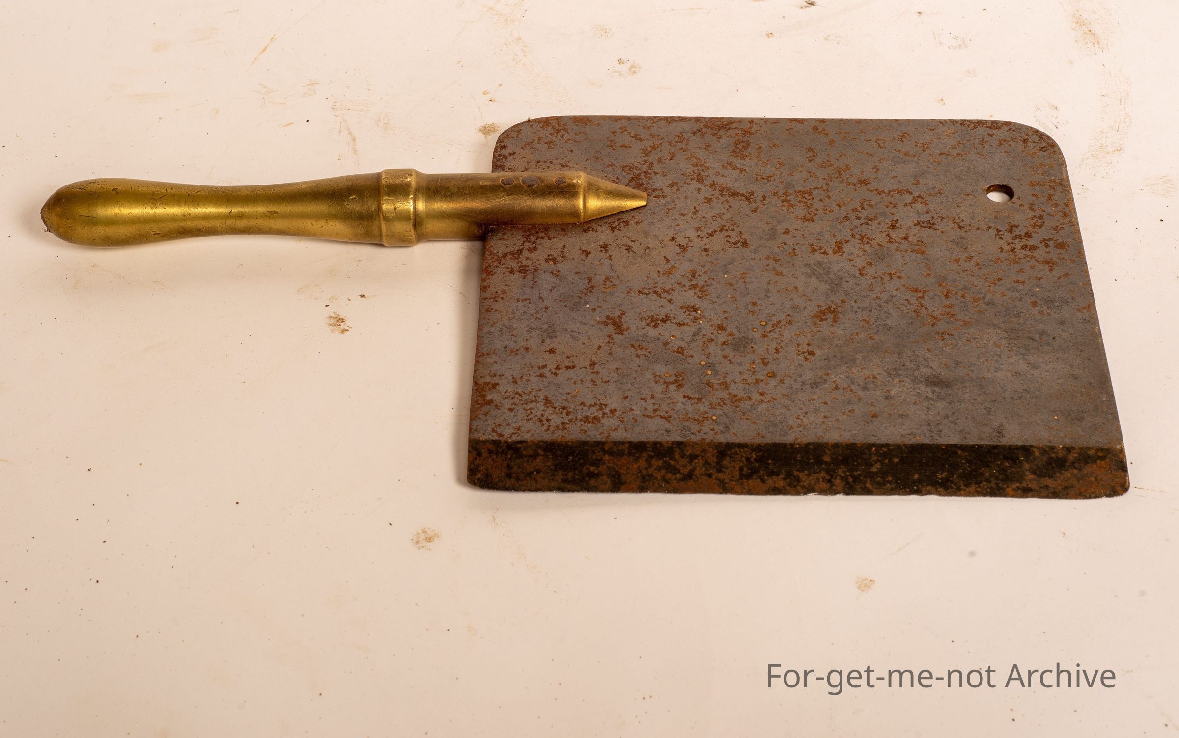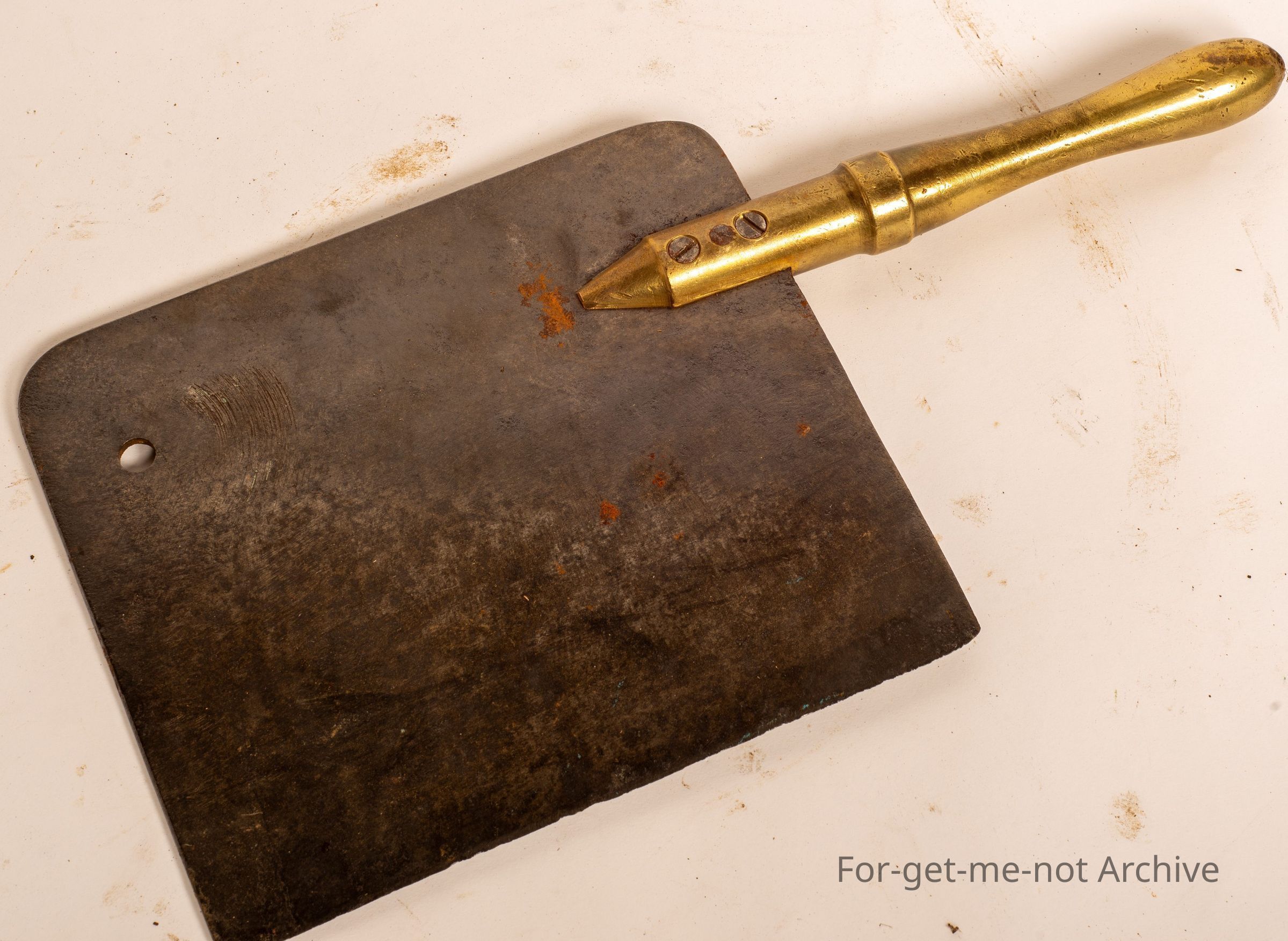 A very heavy unusual food chopper, brass handle, no stamping. So not much information to be given.